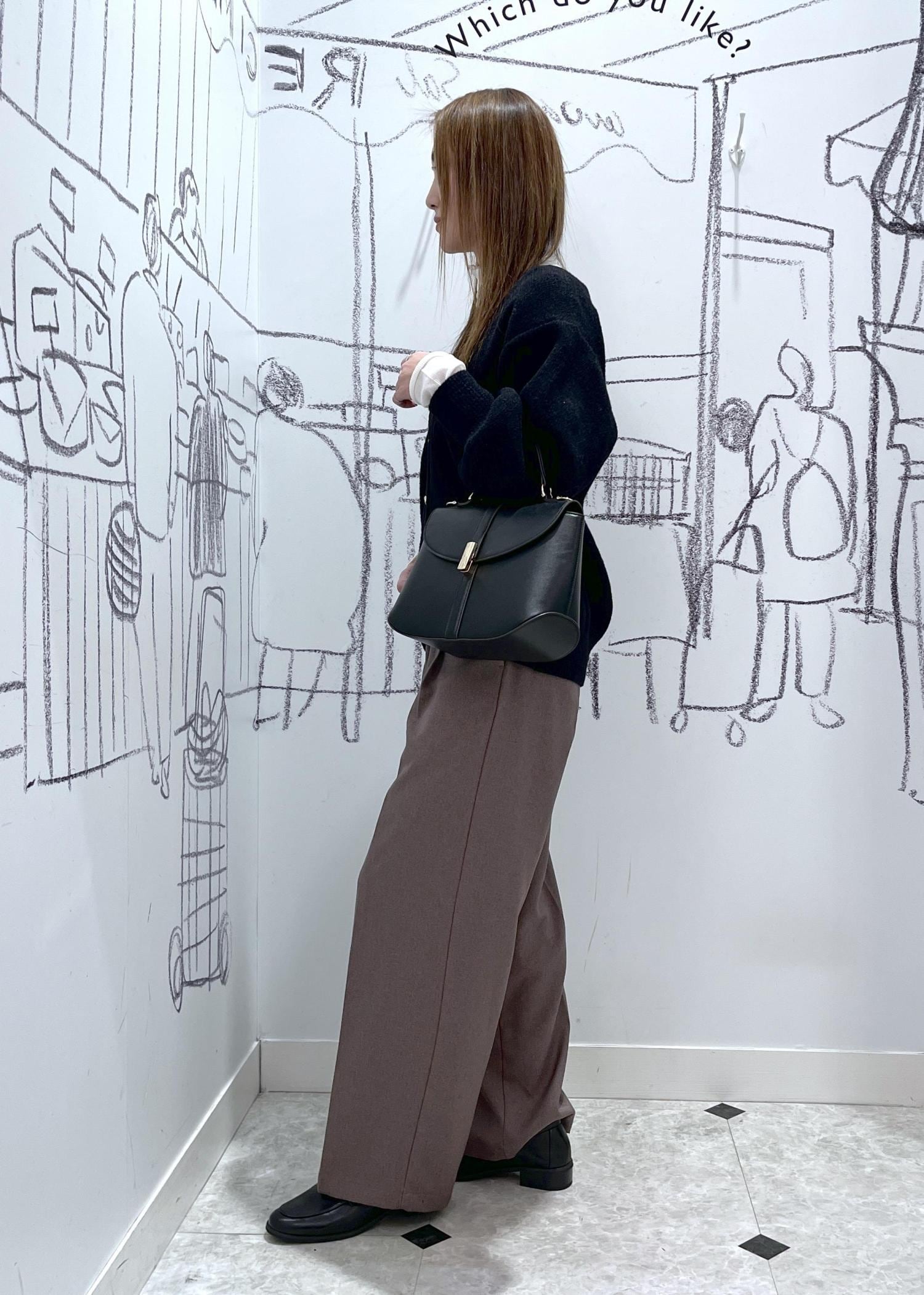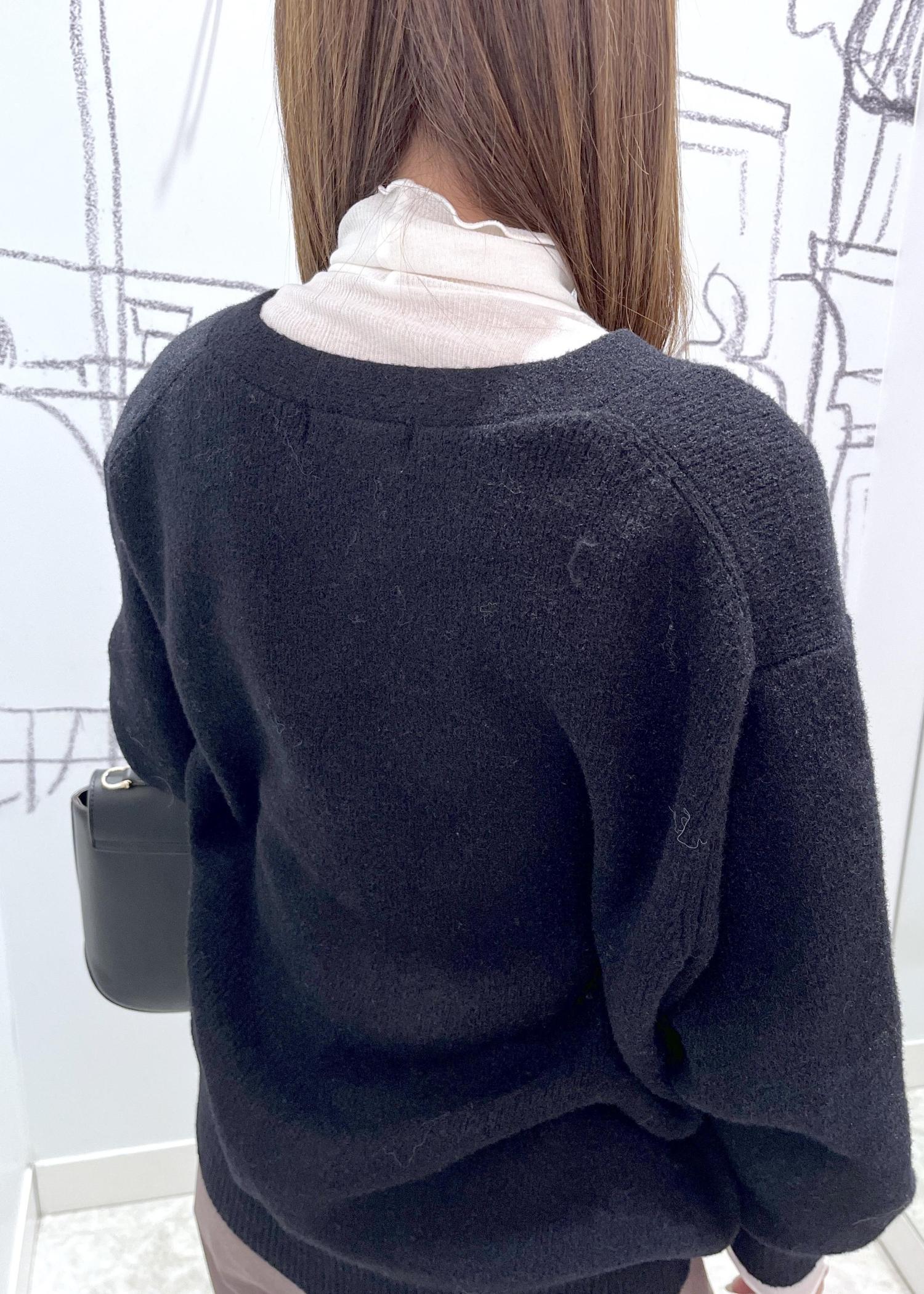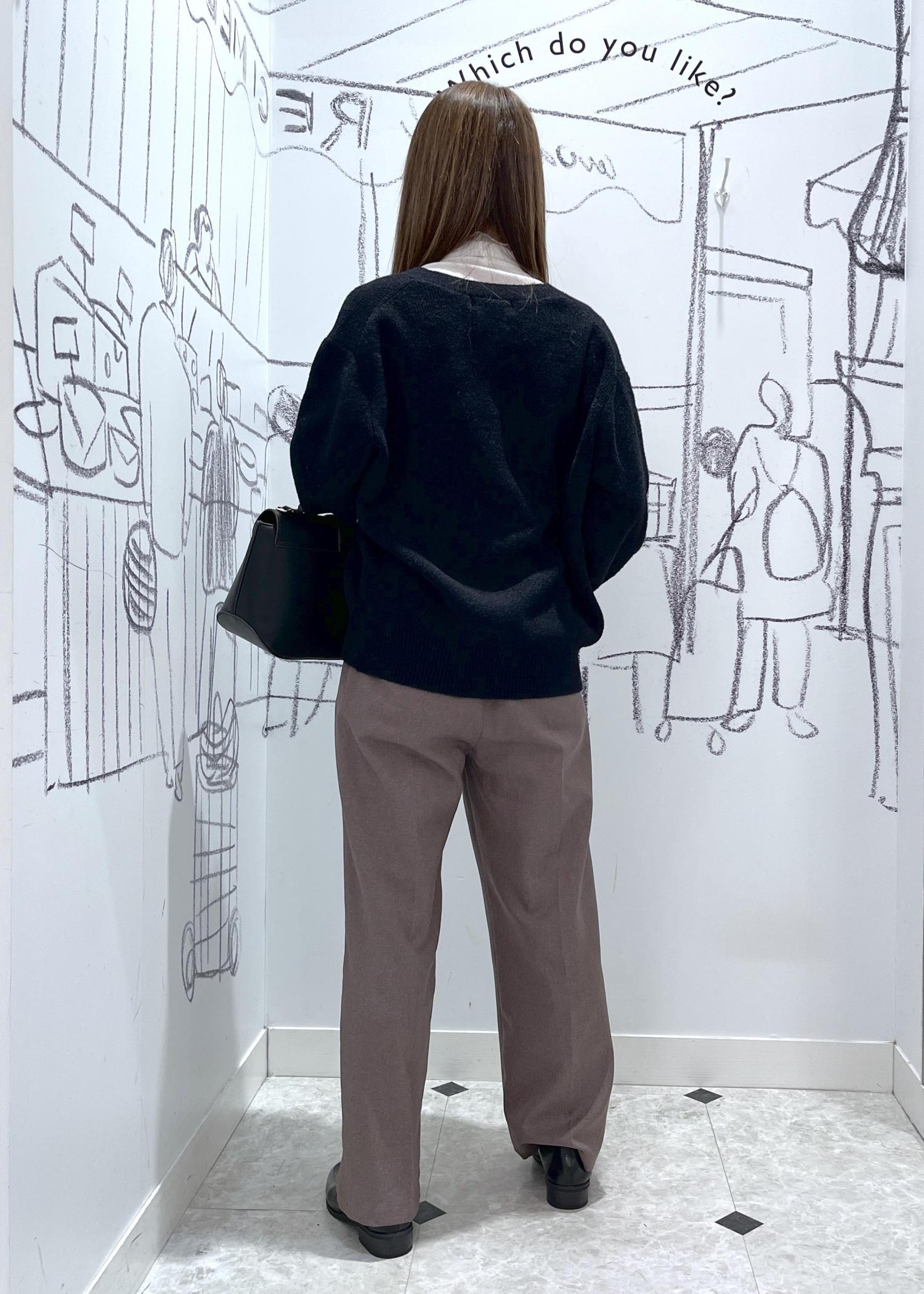 冬のお仕事にも使えるオフィスカジュアルなスタイリング。柔らかくて着心地良いカーディガンは長めの丈でお腹も隠れるのでアウトスタイルでお腹周りもカバー出来ます。ブラウンのパンツと合わせて大人っぽく。そのままお仕事帰りにお出かけの時もレイヤードでおしゃれ見え出来るので安心。