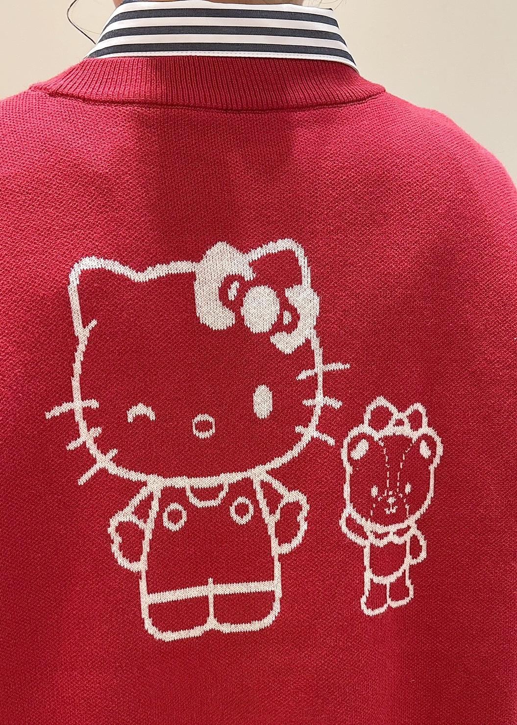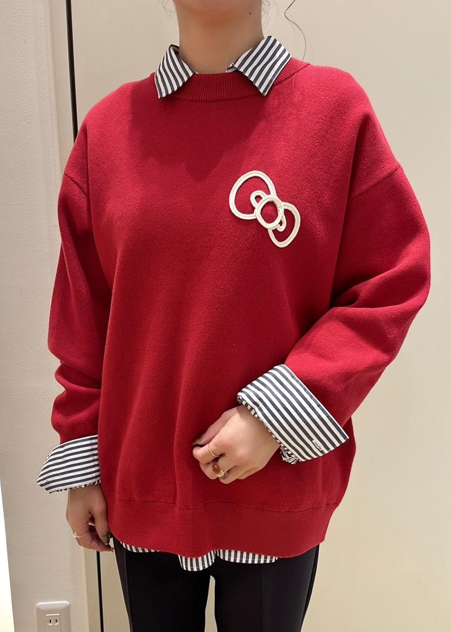 ハローキティらしさ全開の赤(レンガ)色ニットです。