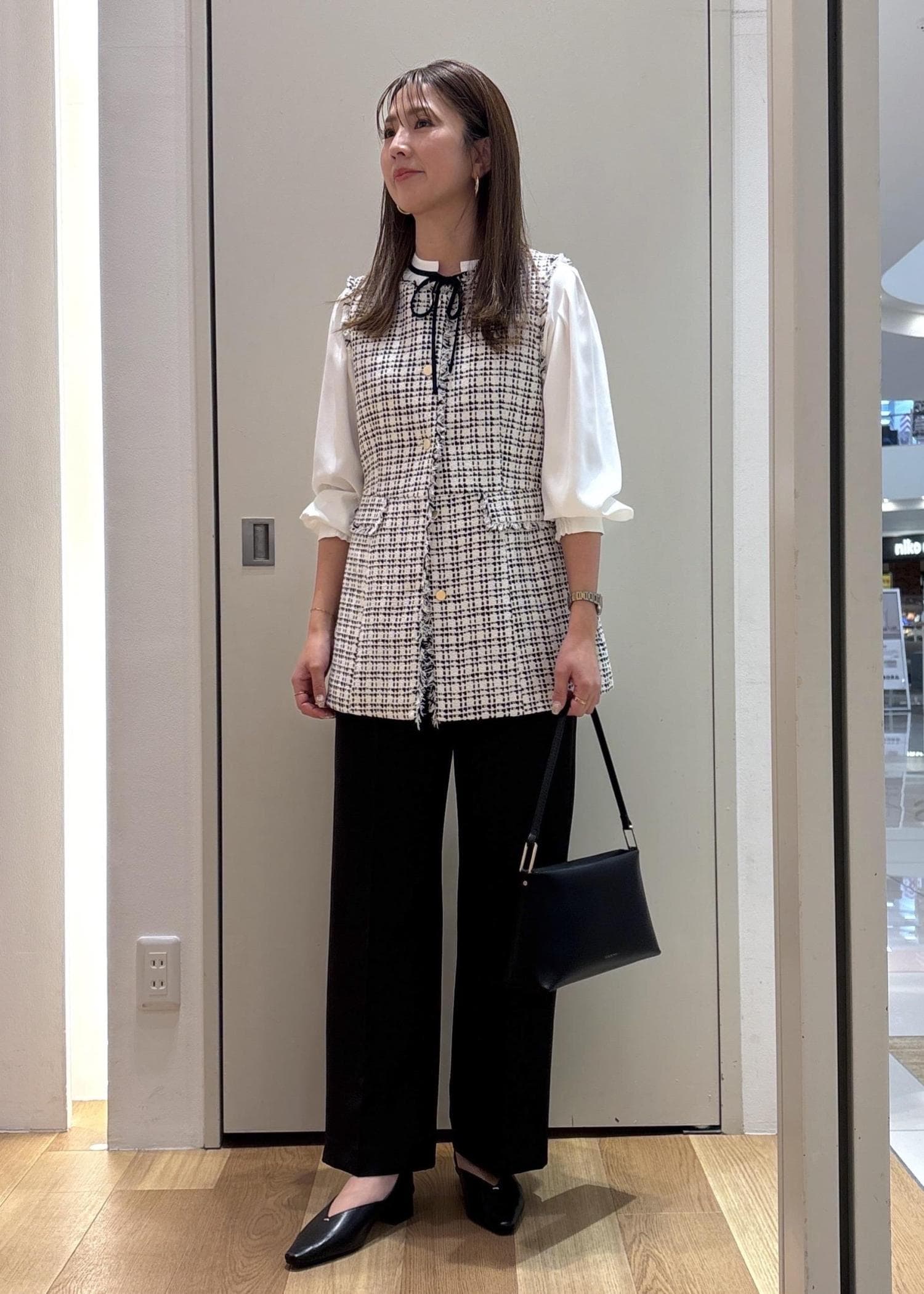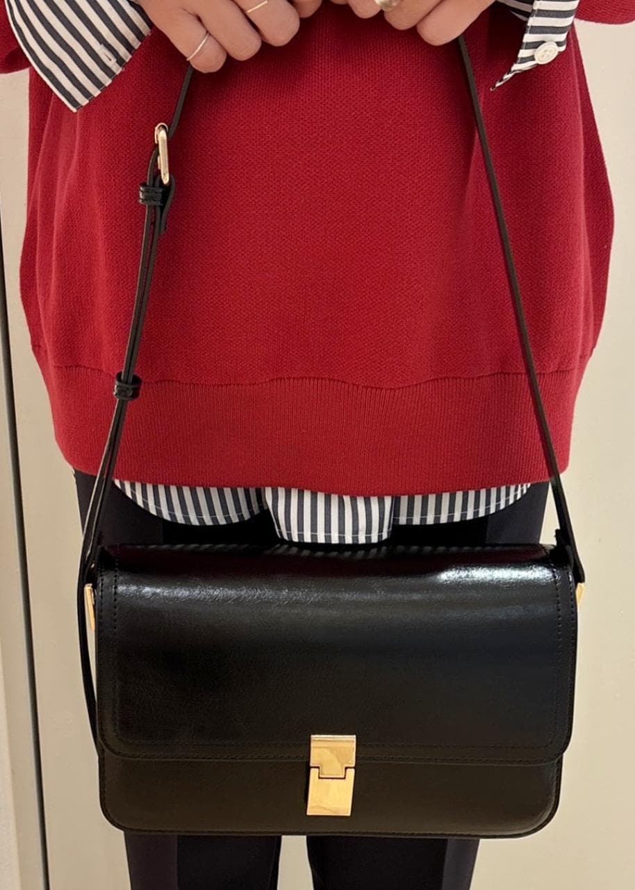 ミドルサイズの黒いバッグは様々シーンで活躍するので1つ持っていると重宝すると思います。