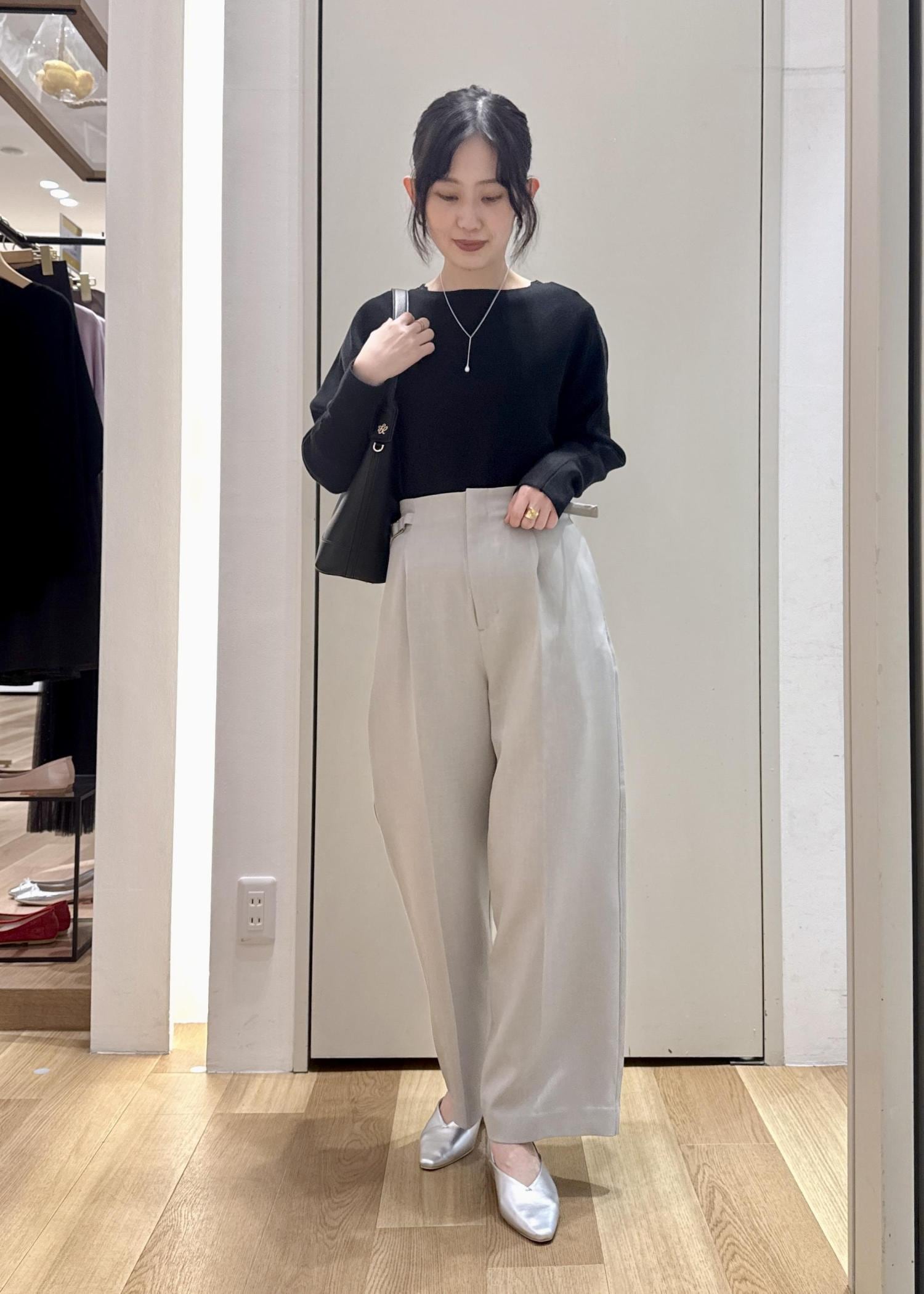 アイラインスカートやプリーツスカート、デニムなどに差し変えてもバランスよく、可愛く着こなせると思います。 -