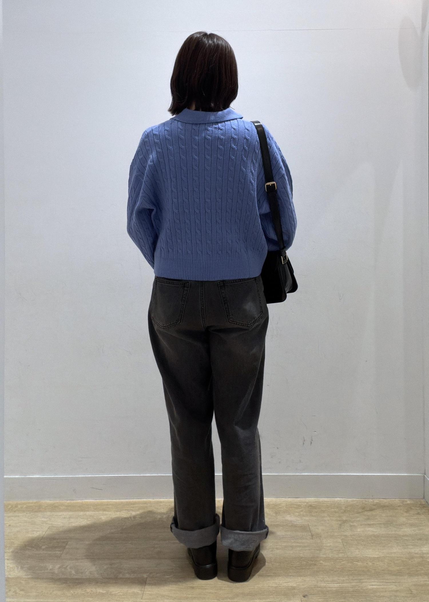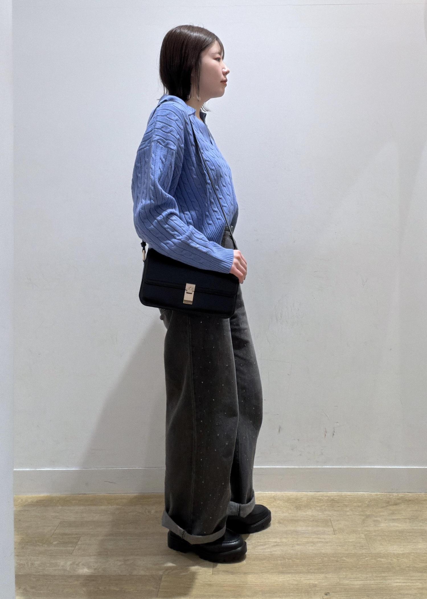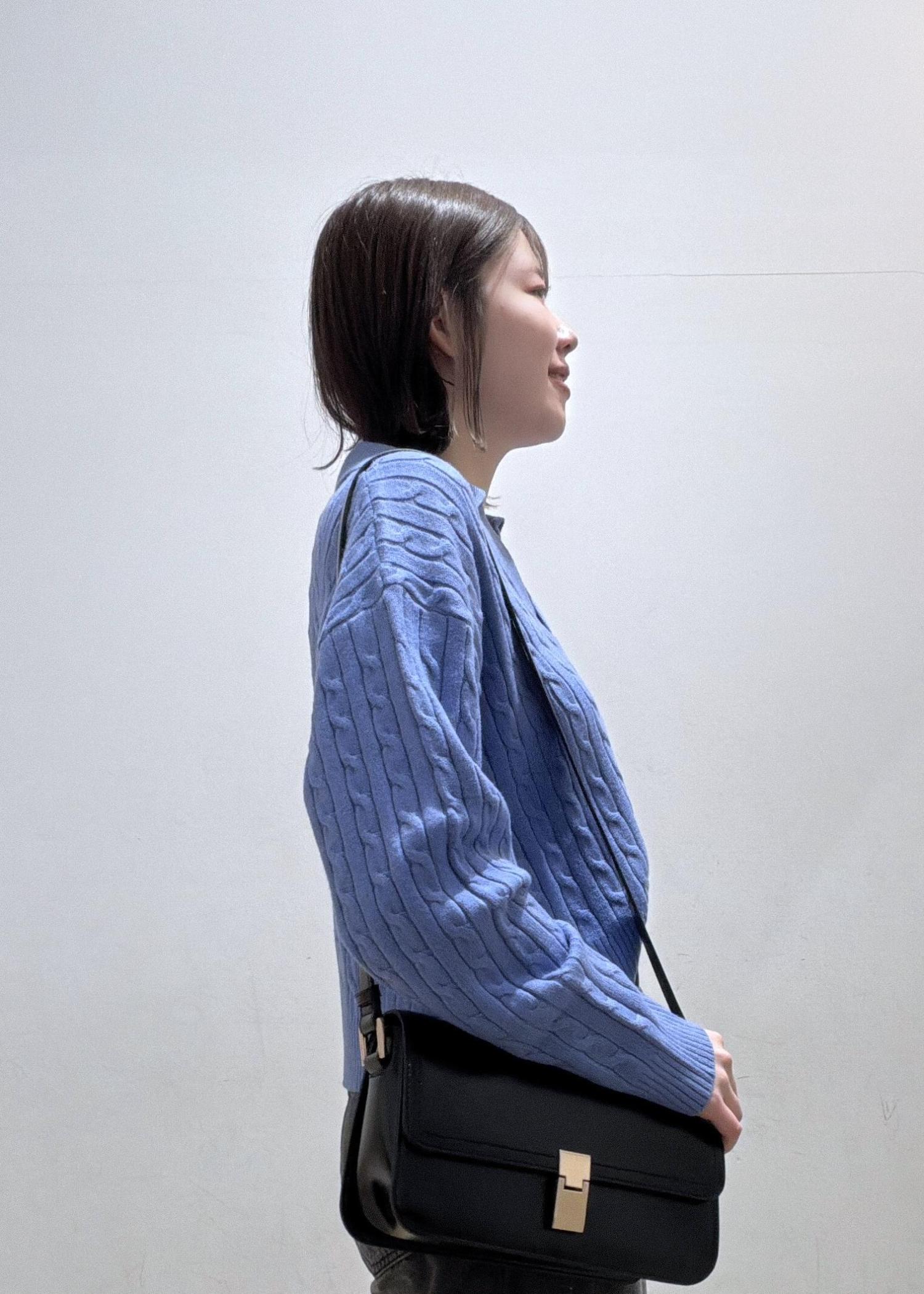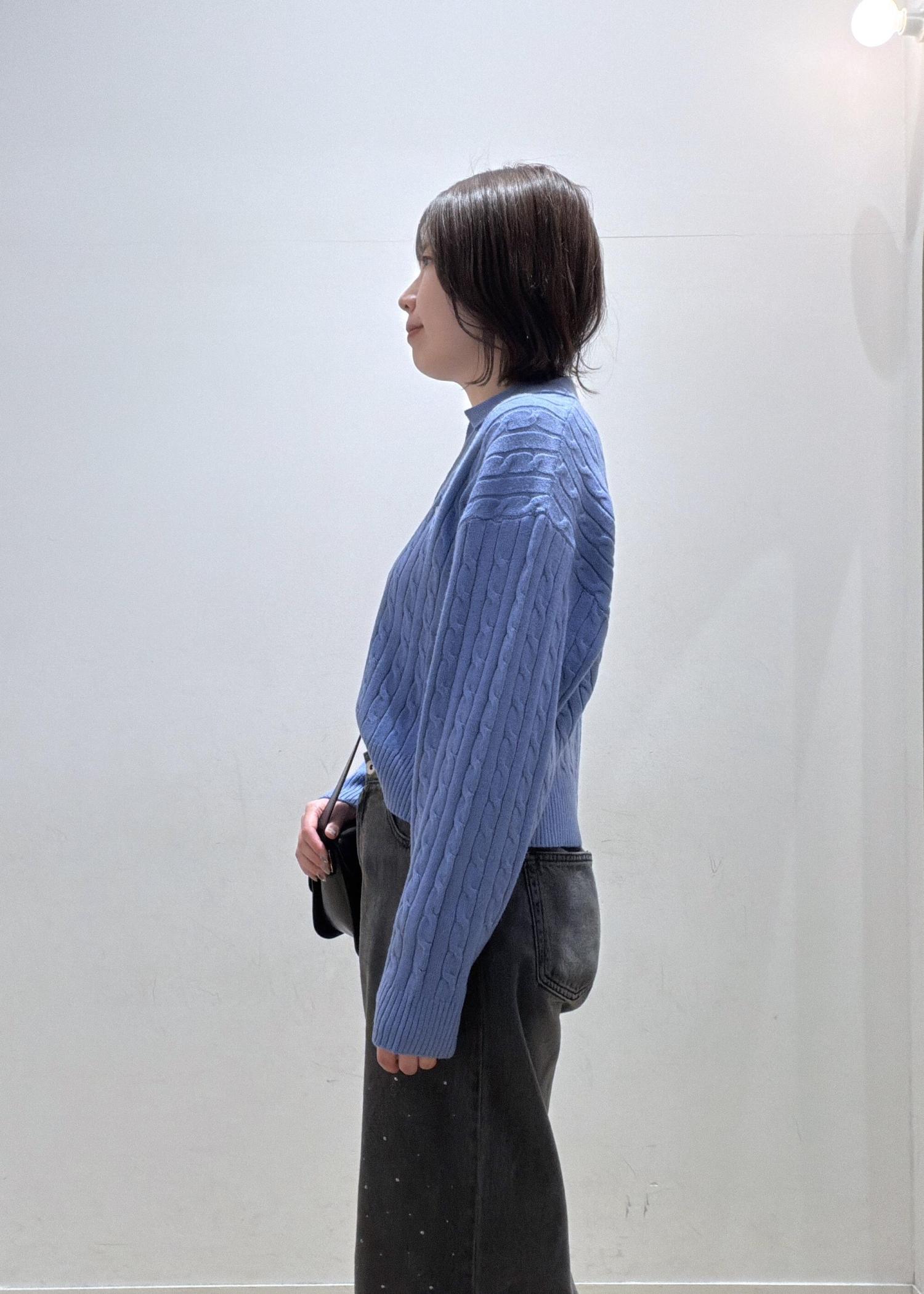 鮮やかな明るいブルーがとっても印象的で、これから春に向けて活躍間違いないです!ホワイト系のボトムと合わせるのもオススメです◎