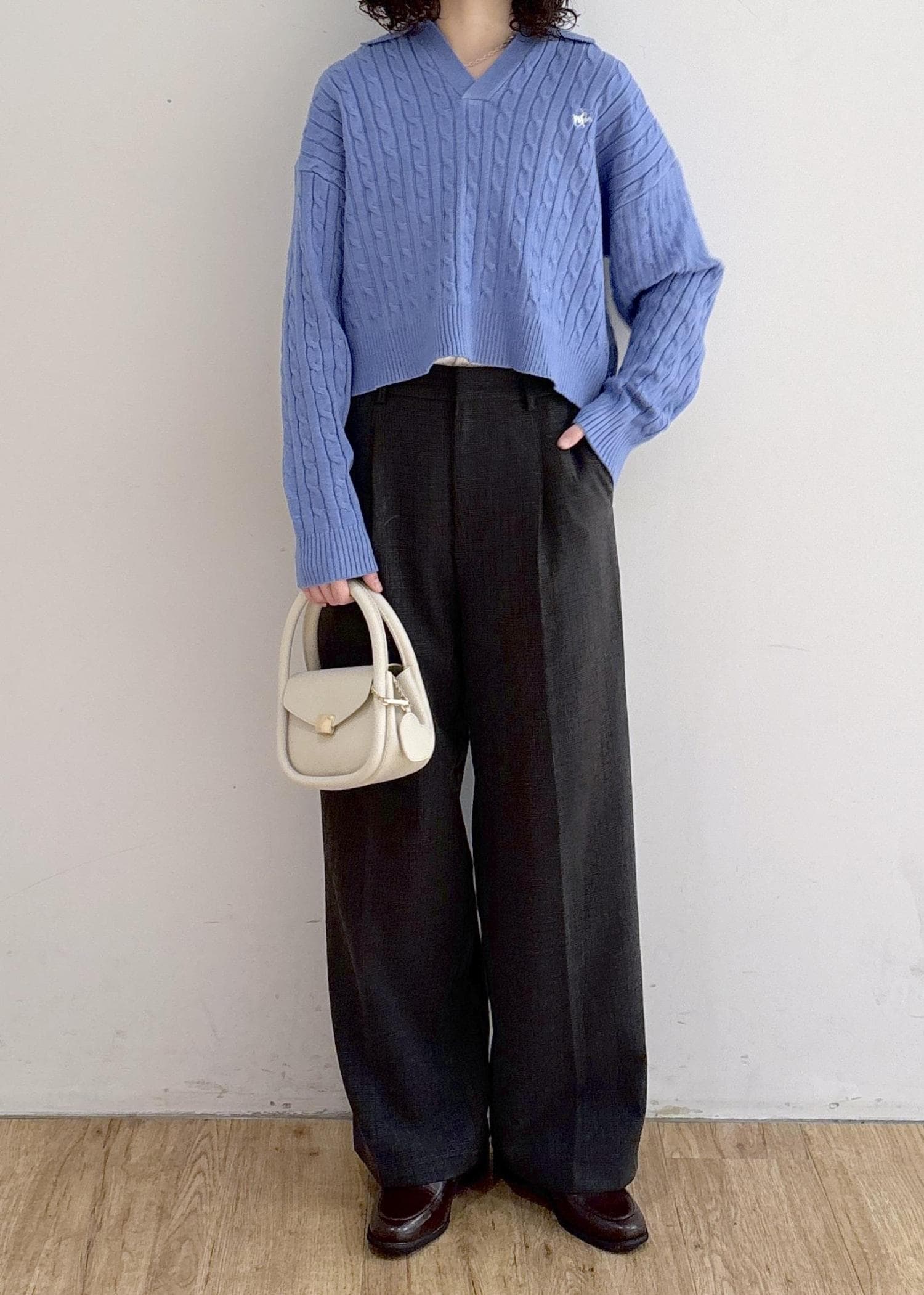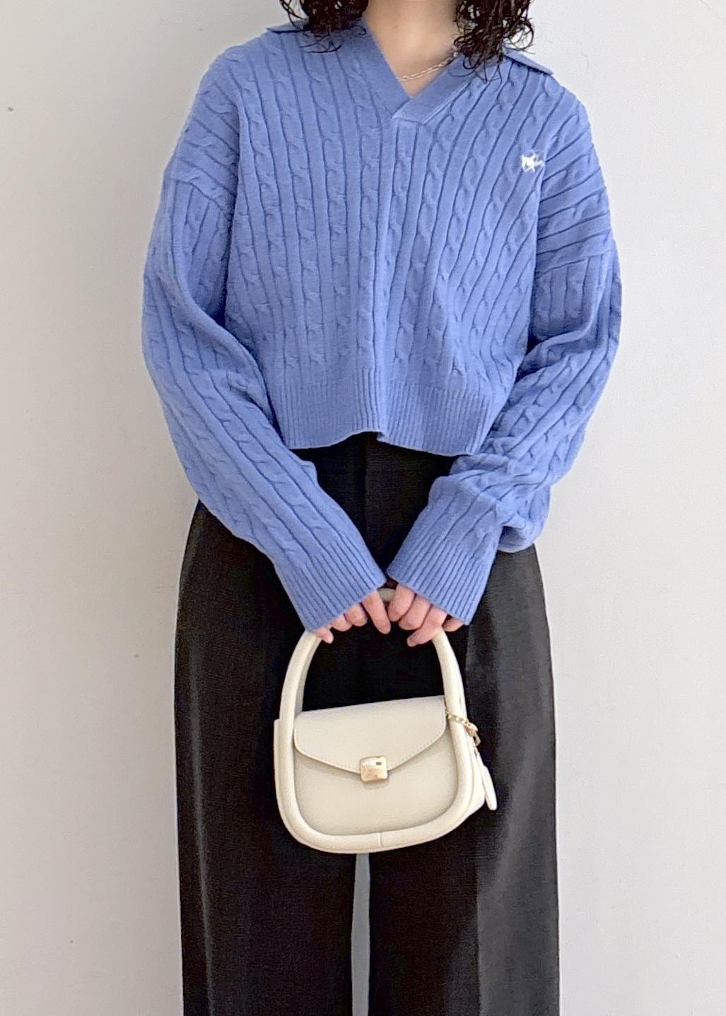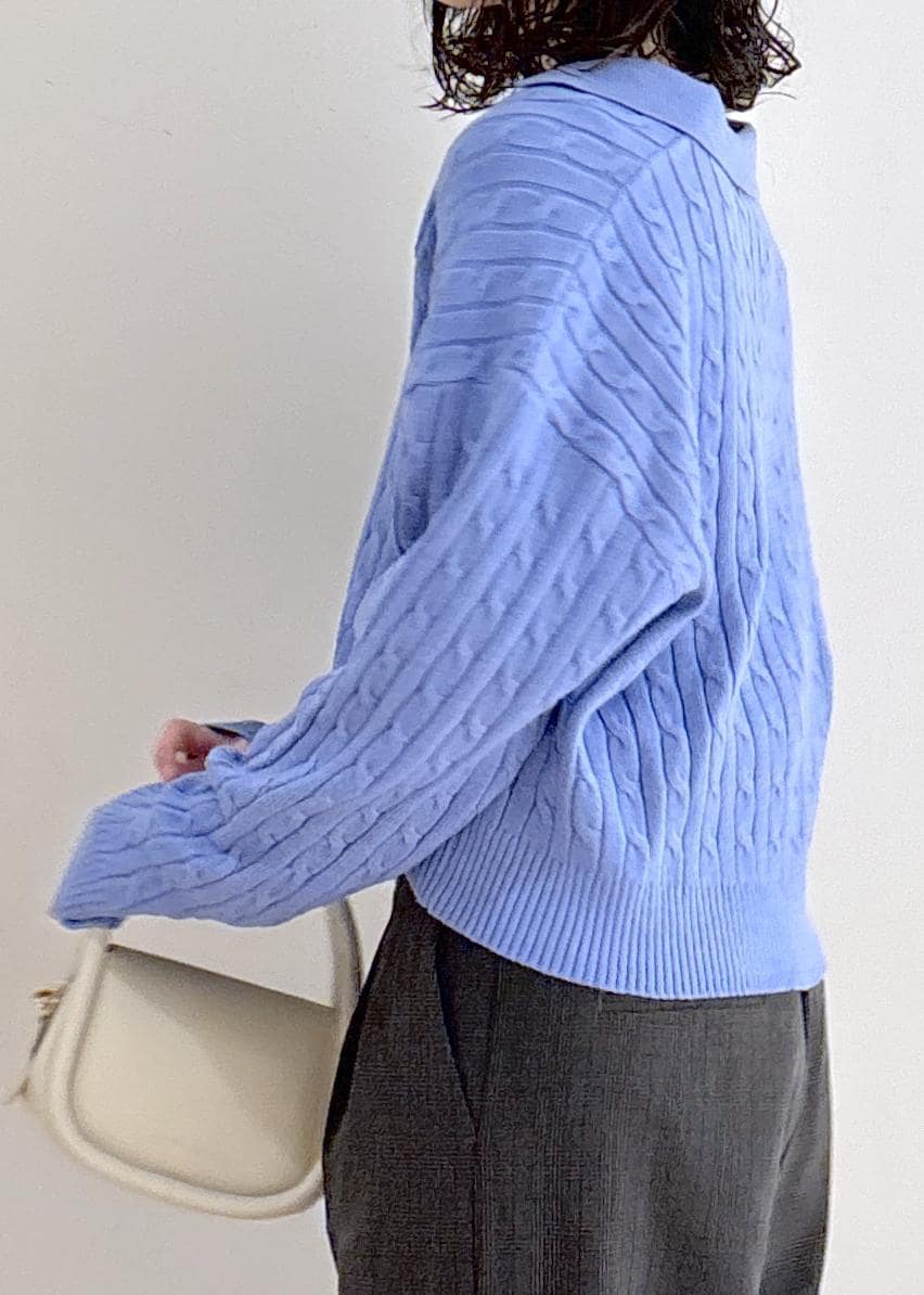 ROPÉ PICNIC【BEVERLYHILLS POLO CLUB・新色追加】ケーブル編みクロップドスキッパーニットサックス / F¥5,995レビュー・スキッパーデザインでスッキリとした印象