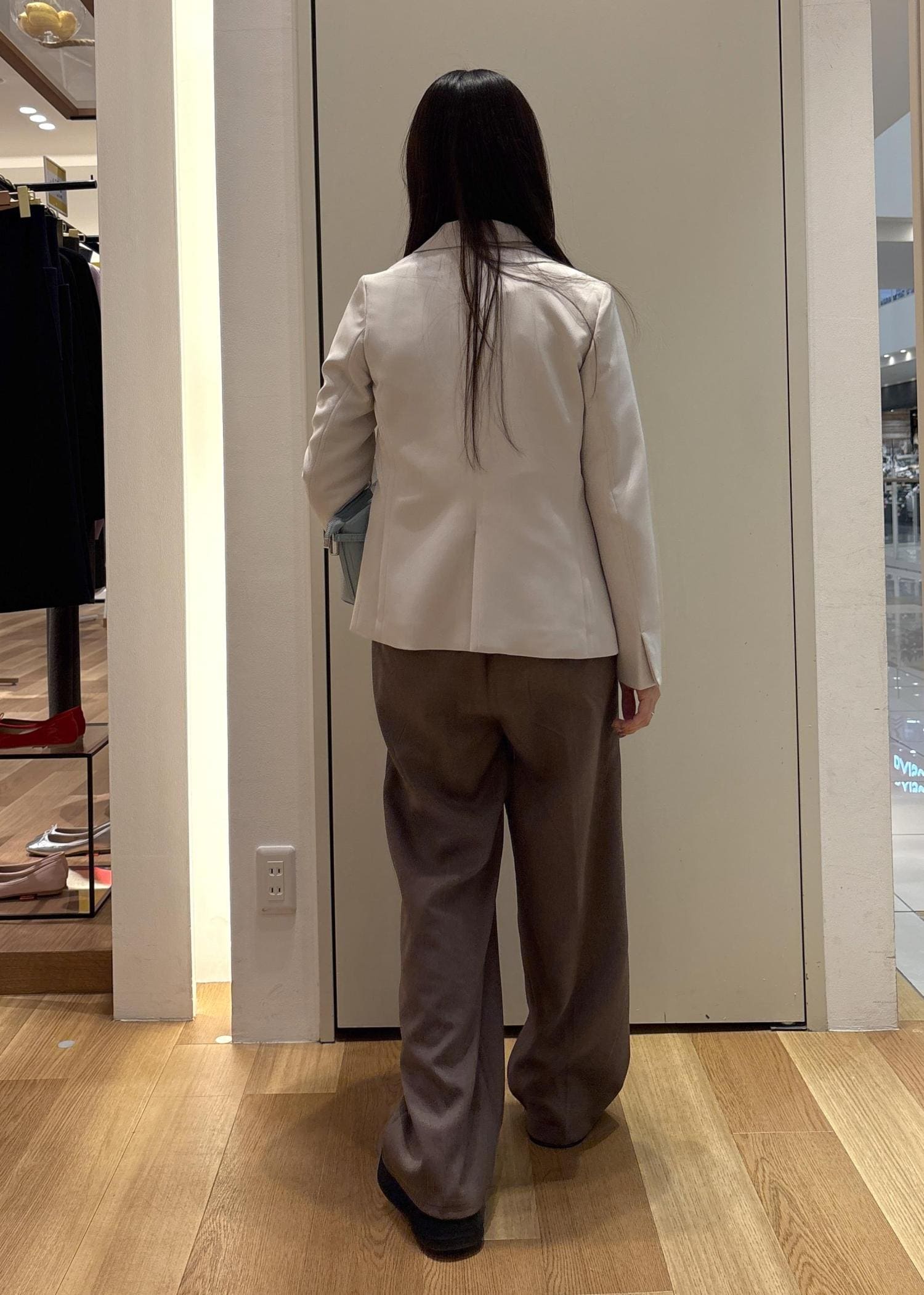 パンツは程よい落ち感で体のラインを拾いすぎず、全体を縦にすっきり見せてくれるから自然とスタイルアップ見えして良かったです。