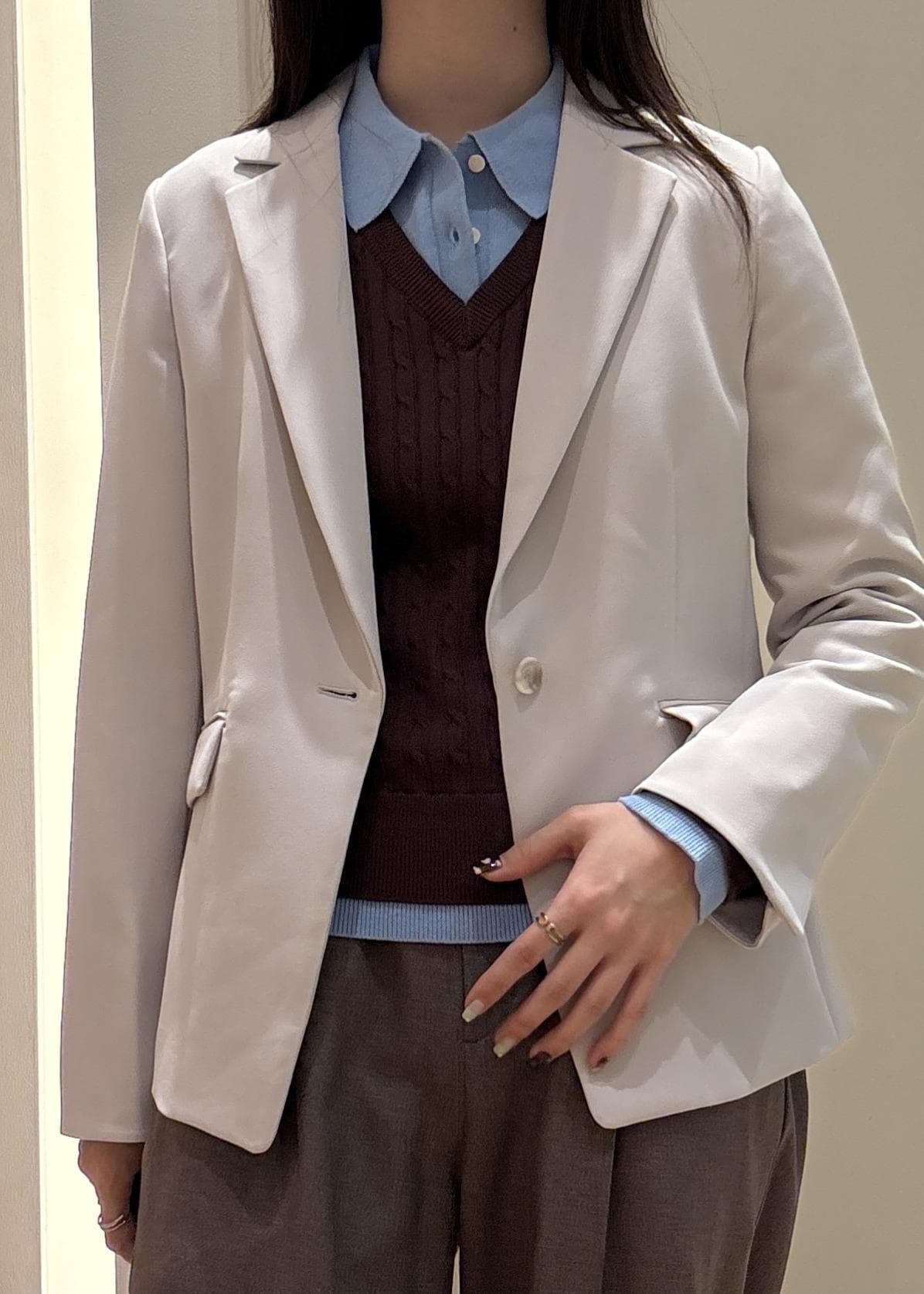 硬すぎない素材感で、きちんと見えするのに着心地は軽めです。 -