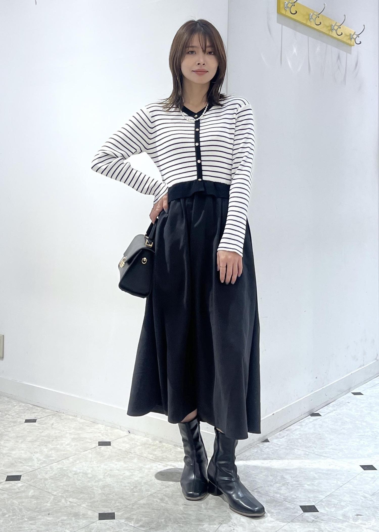 コートインはドッキングワンピースで、楽ちんシンプルな大人コーデにしました。