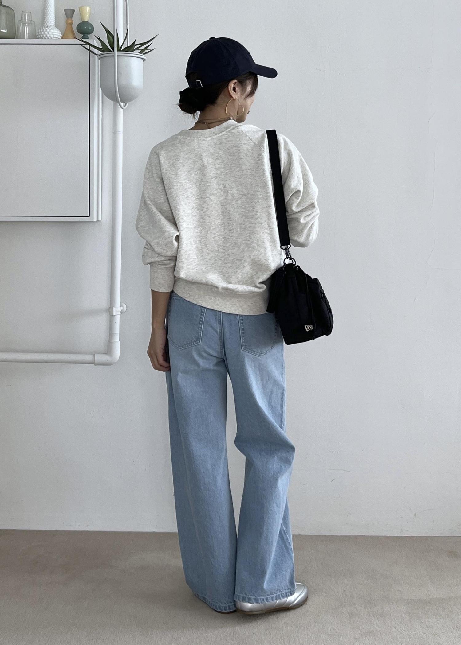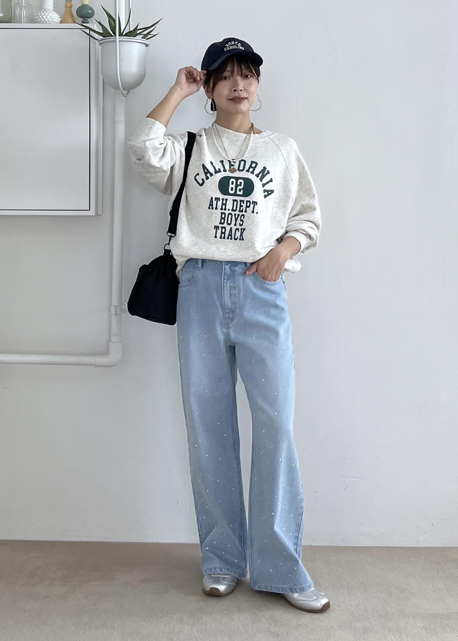スウェット×デニムのカジュアルコーデ