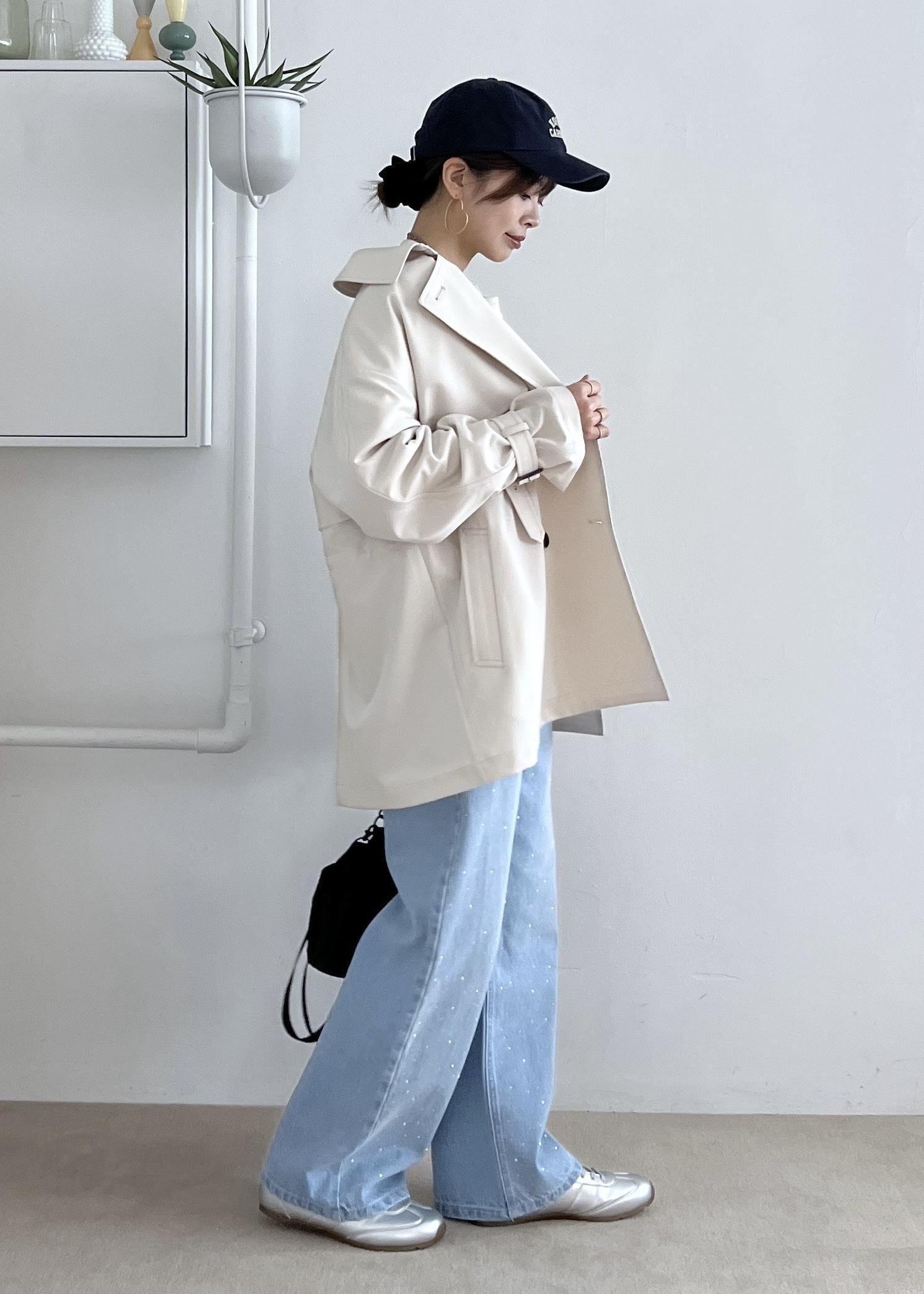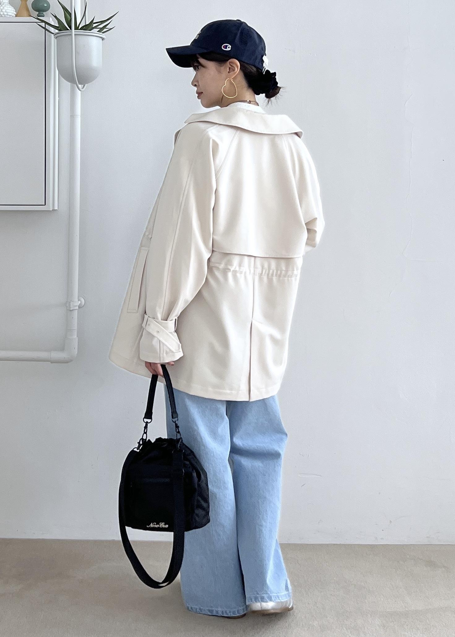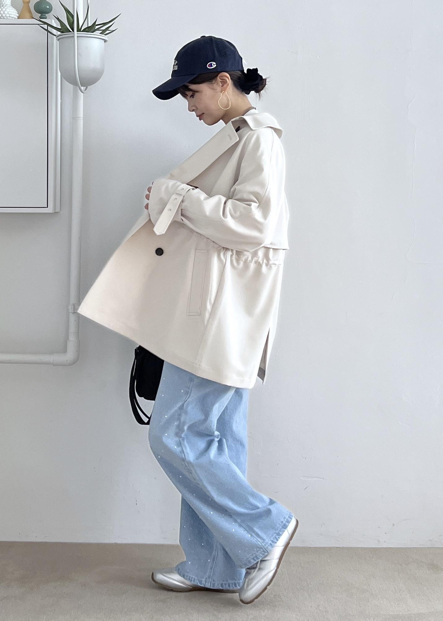 柔らかくサラッと羽織りやすいトレンチコートは、春のカジュアルコーデにぴったりです。