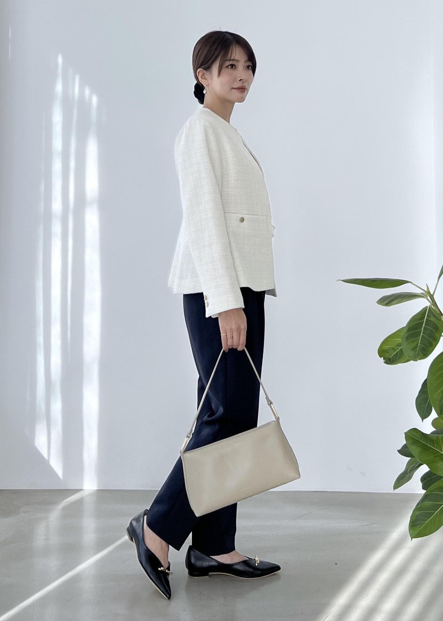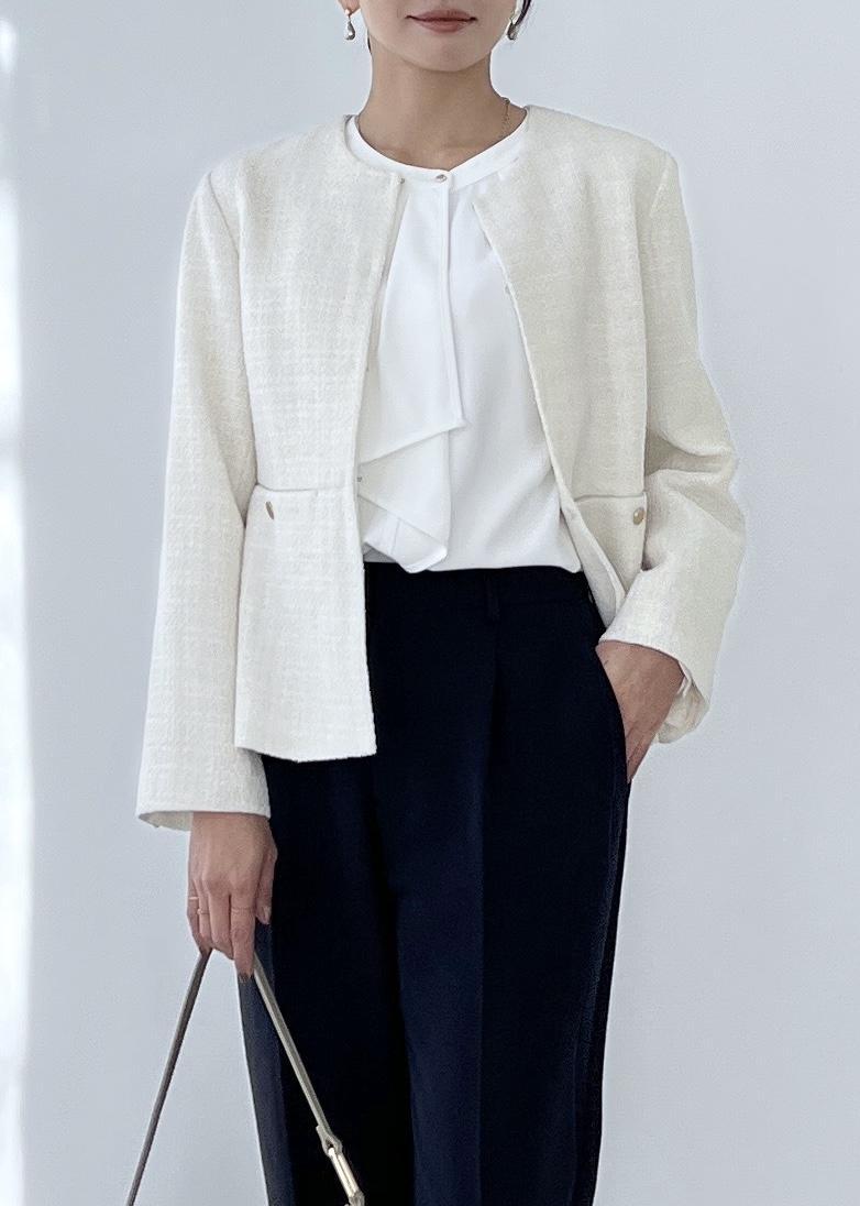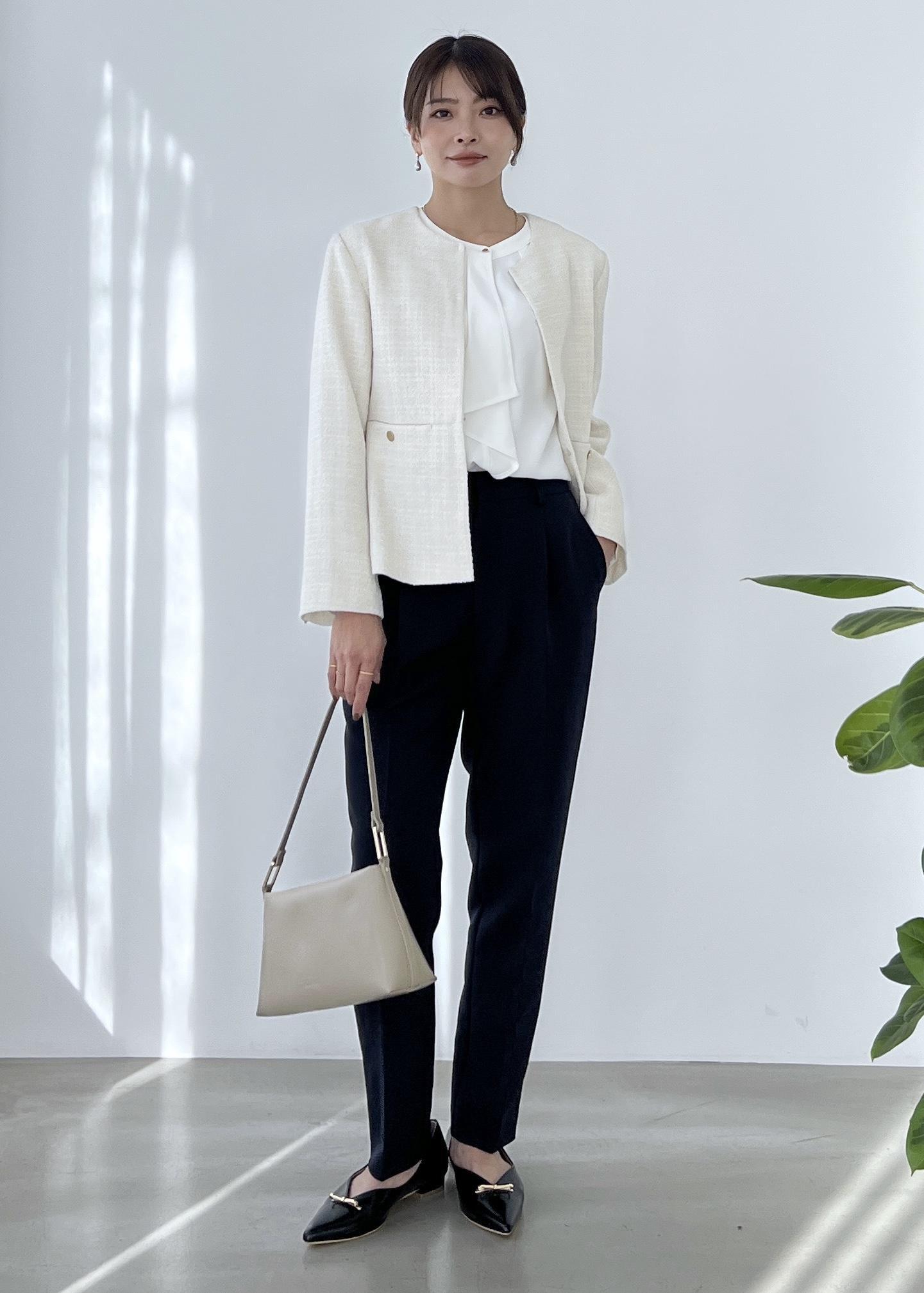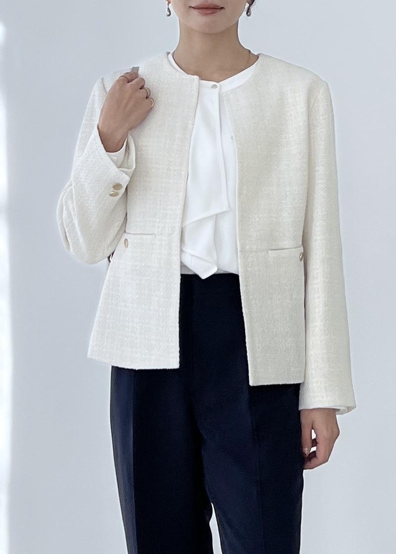 ホワイト系のツイードは、卒入学式のセレモニースタイルにおすすめ。