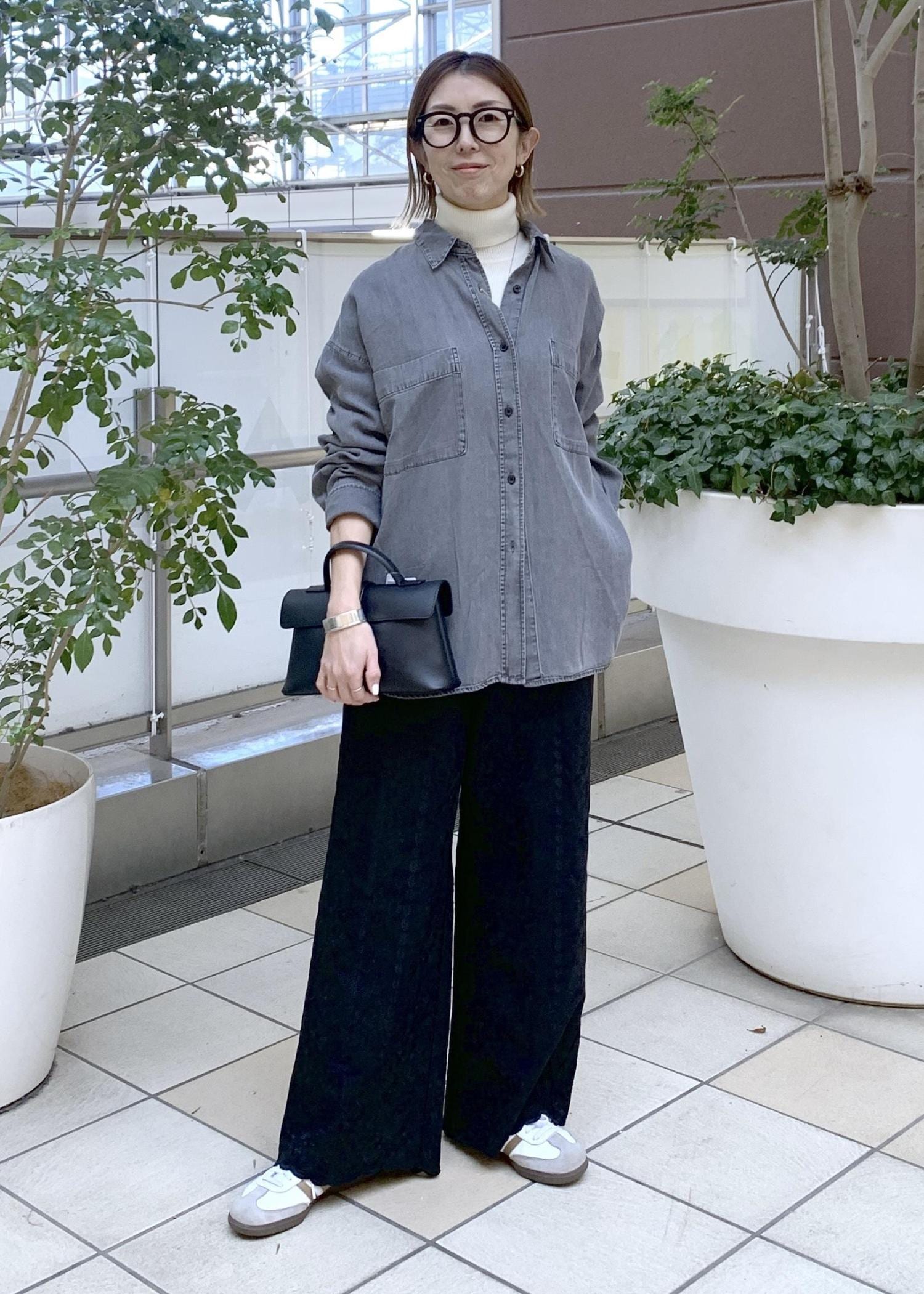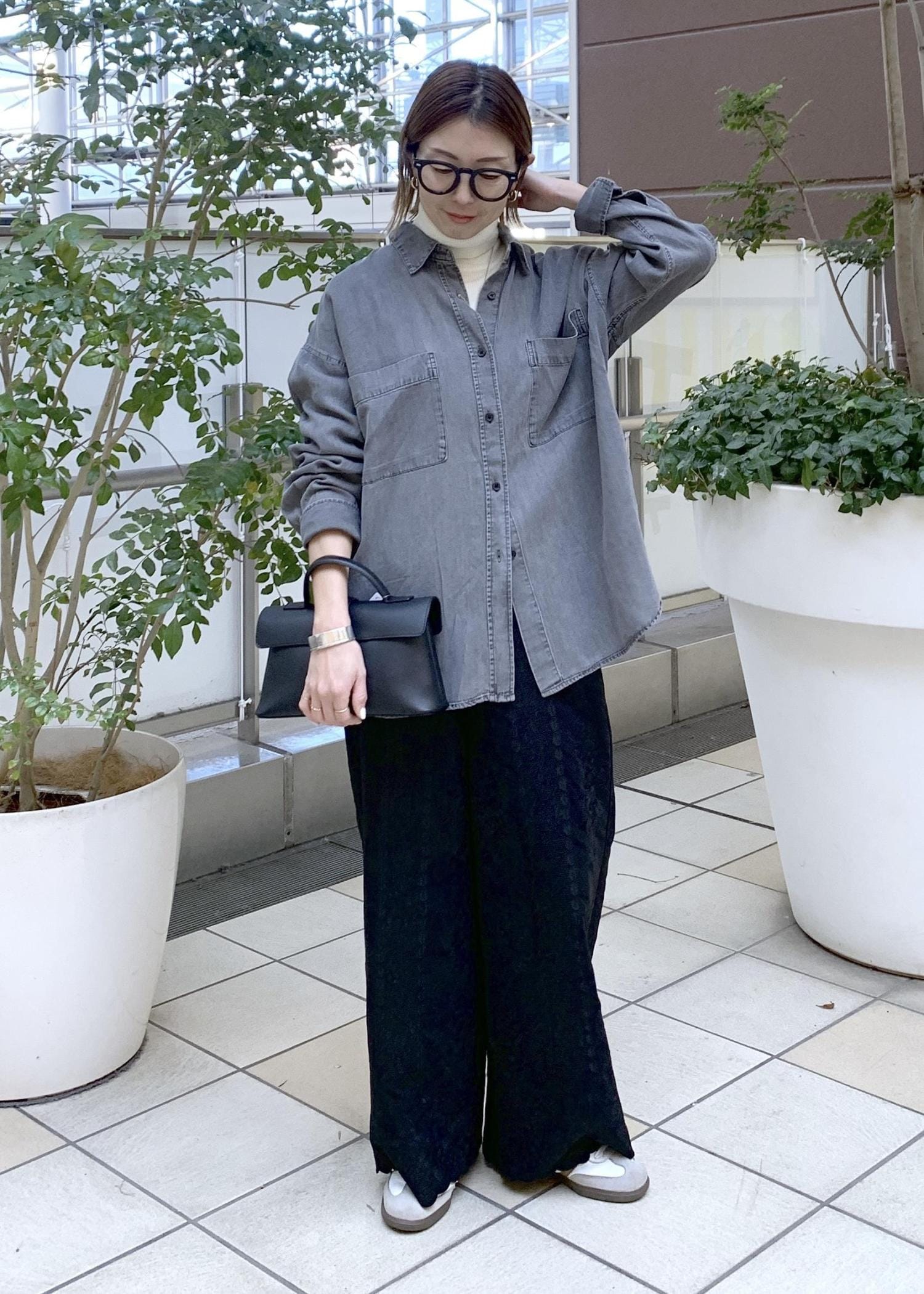 春まで着られるデニムシャツスタイリング