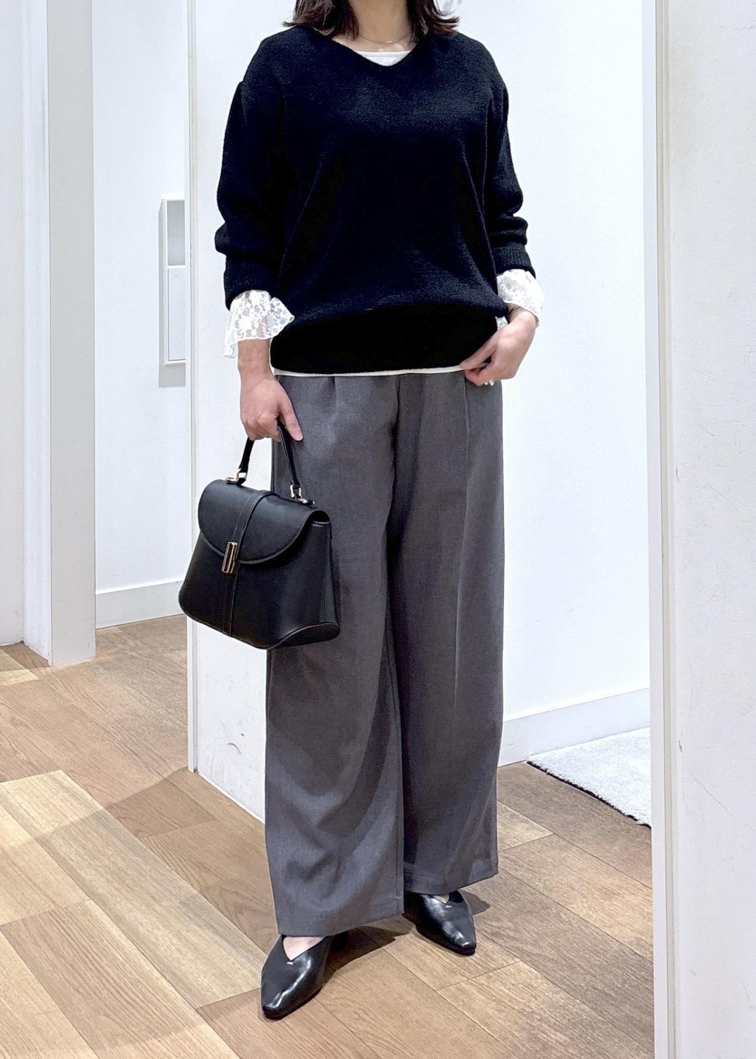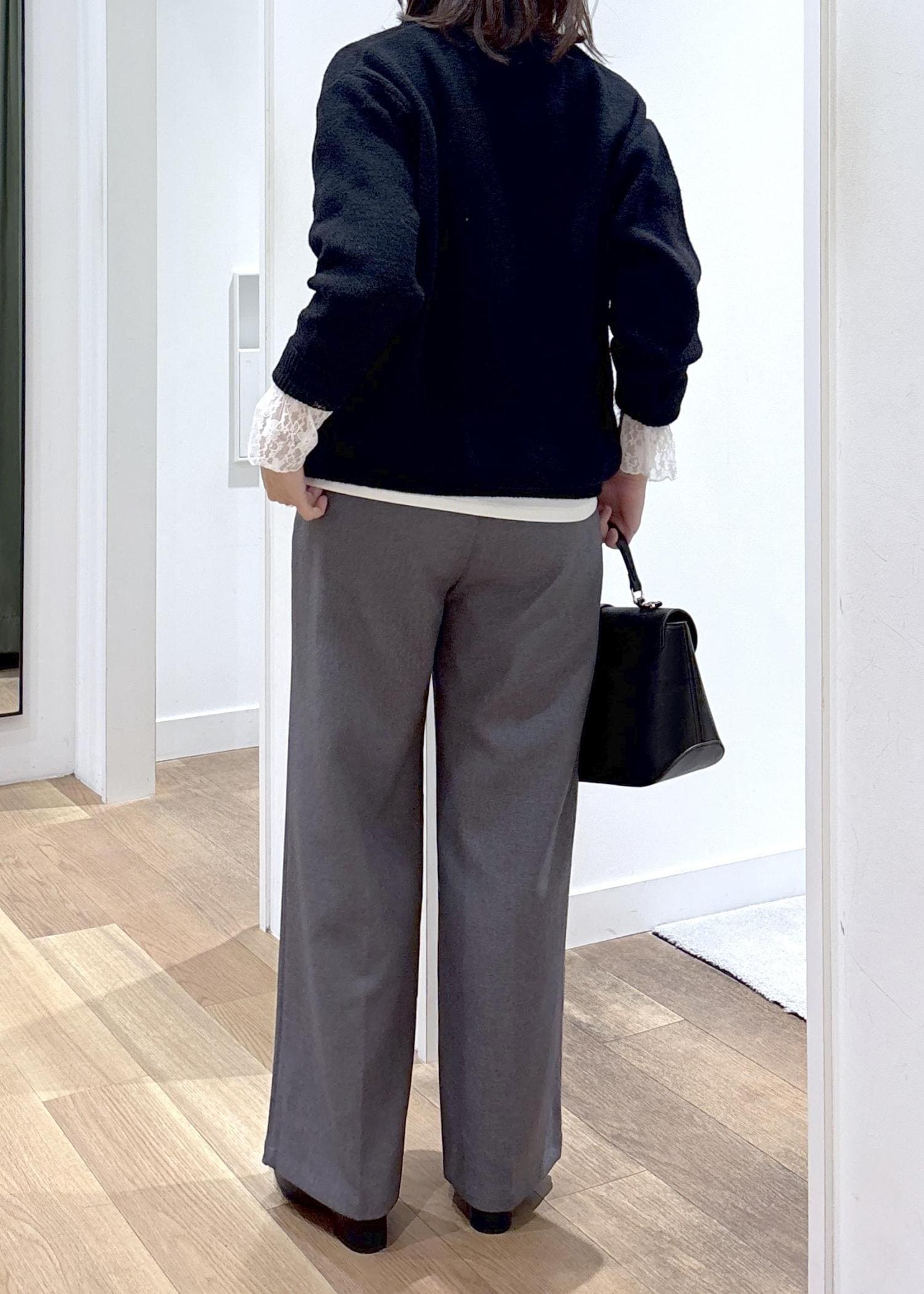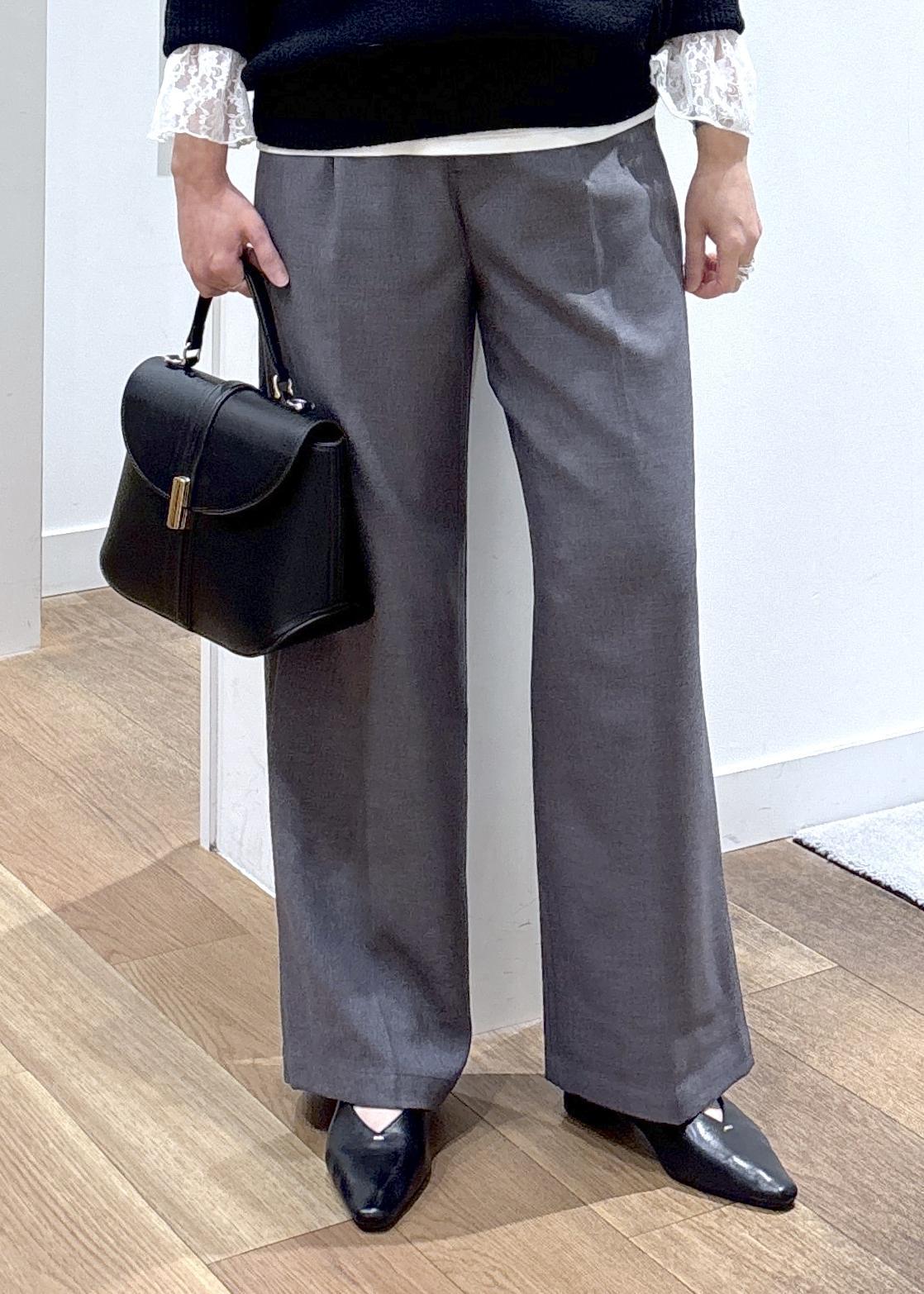 2BUY10%OFFROPÉ PICNIC【WEB限定・丈長め】レディハンサムシリーズ ウールライクウエストタックセミワイドパンツグレー / MT¥5,489レビュー162㎝ですが、普通丈のMサイズだとくるぶしくらいの長さでやや短く感じました。こちらは通常丈よりも4㎝長くなる為、ちょうど良い長さでした。