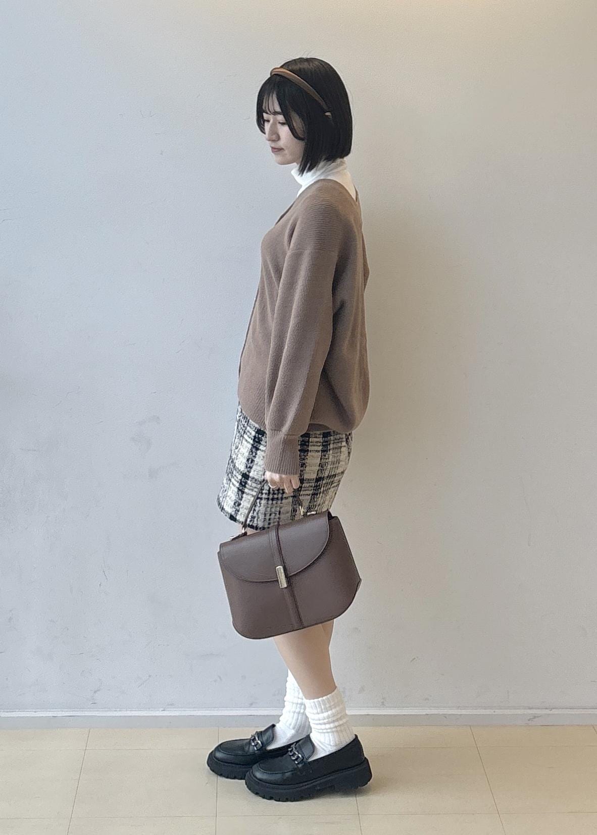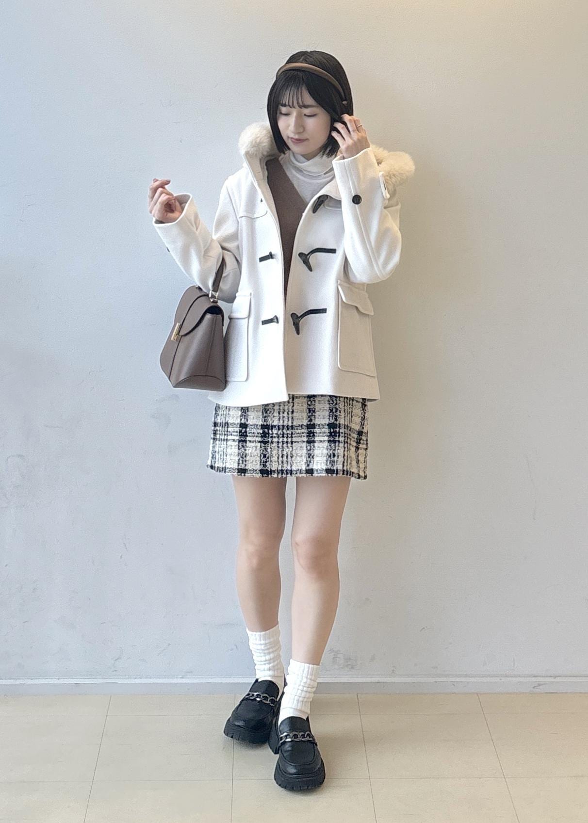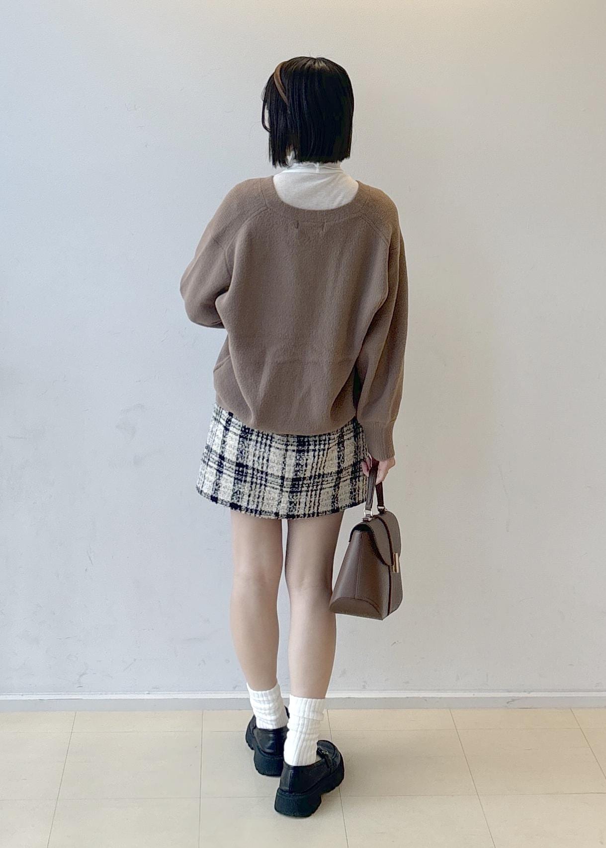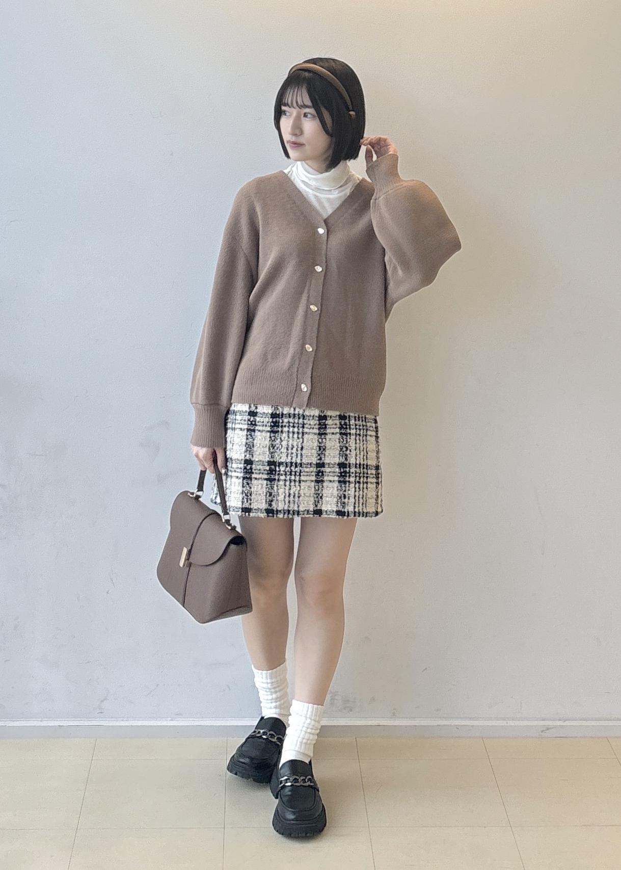 ツィードのミニスカートを合わせて女の子っぽく!