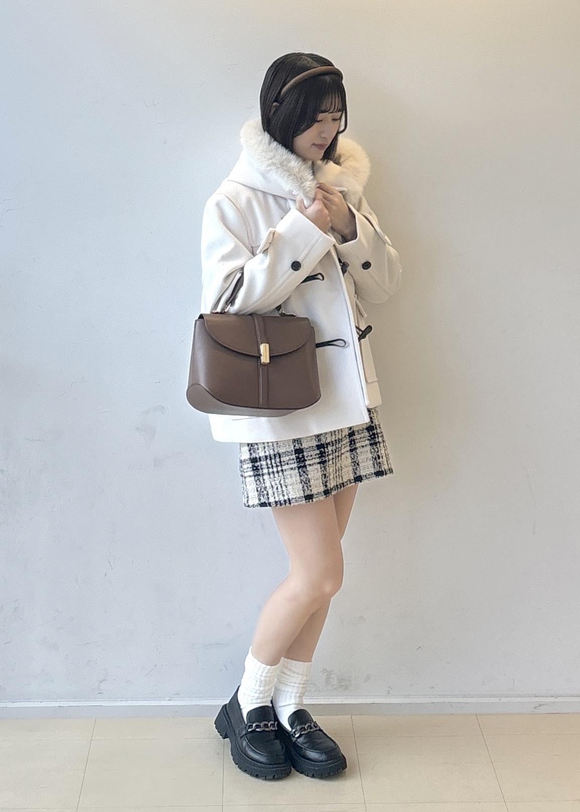 黒のツイード柄が可愛すぎなく大人っぽく着ることが出来ます。ロングブーツにも短いブーツにもどちらも相性抜群でとっても可愛いです!