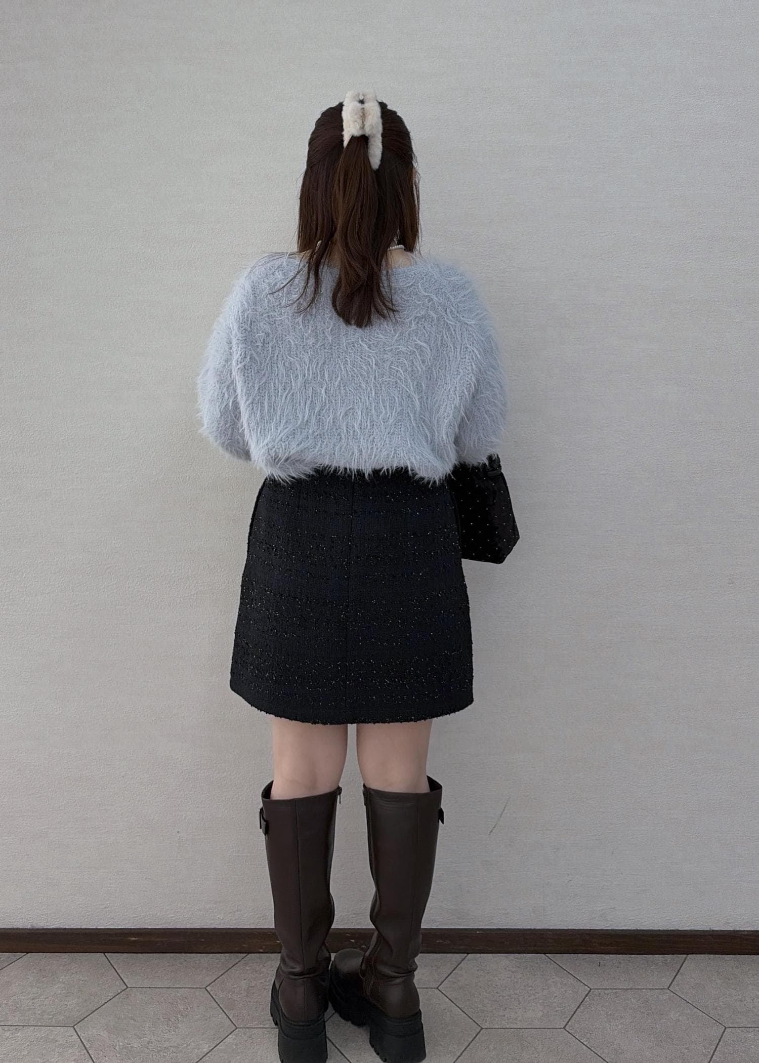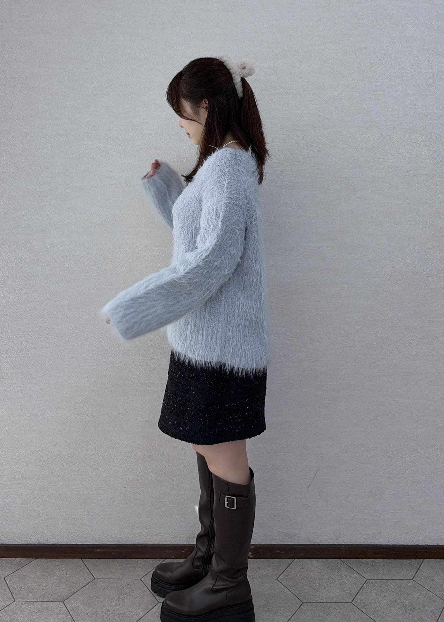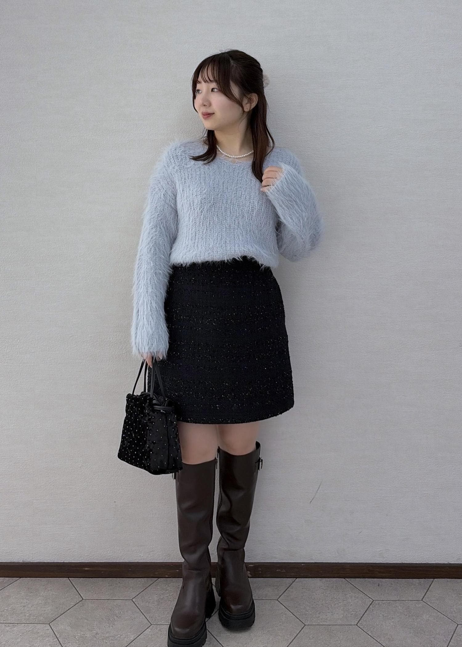 ふわふわのアイスブルーのニットが冬っぽくて、とても可愛いです!