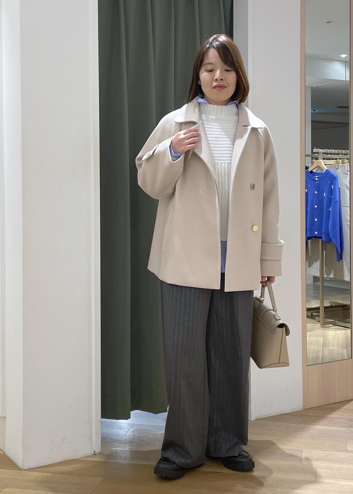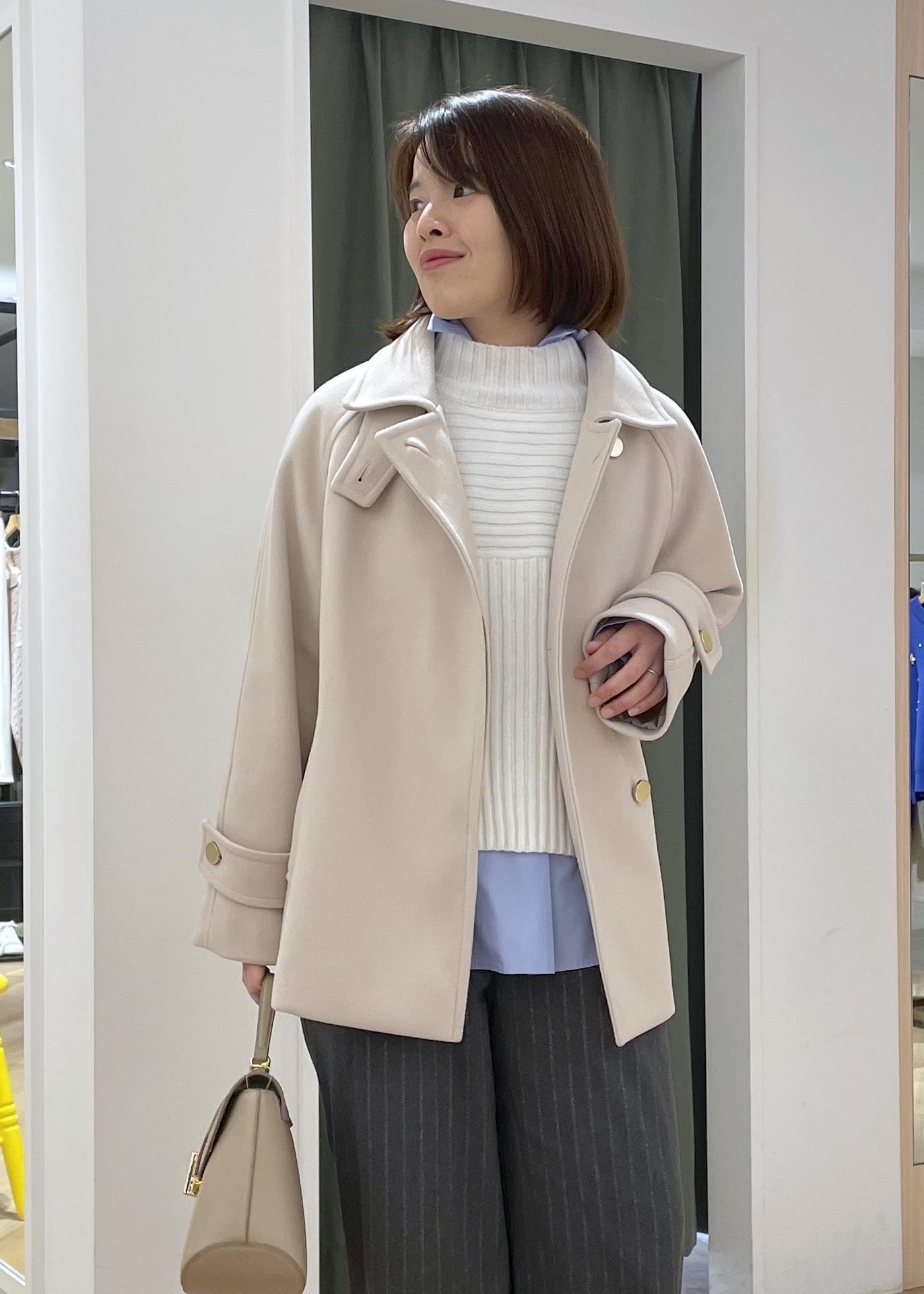 柔らかく軽い羽織り心地で、とても着やすいアウターです。ゆったりしたサイズ感なので、厚手のニットの上からでも羽織れます。また寒さが厳しい時期はインナーダウンを仕込んで着用するのもおすすめです。着丈はヒップが隠れるくらいの長さで、パンツにもスカートにも合わせやすいです。