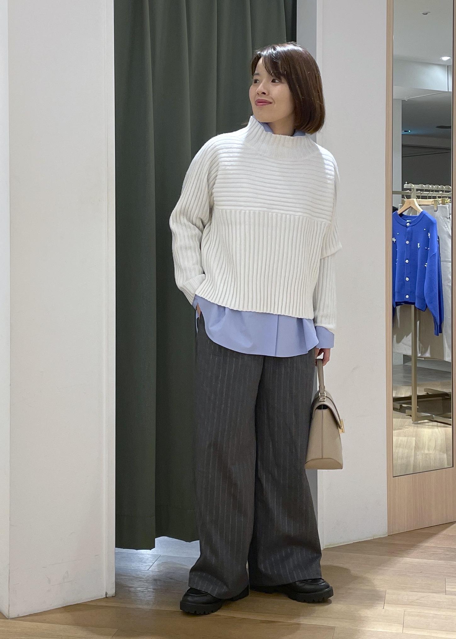 もちもちリブ切り替えニットプルオーバー/イージーケア・リンクコーデ