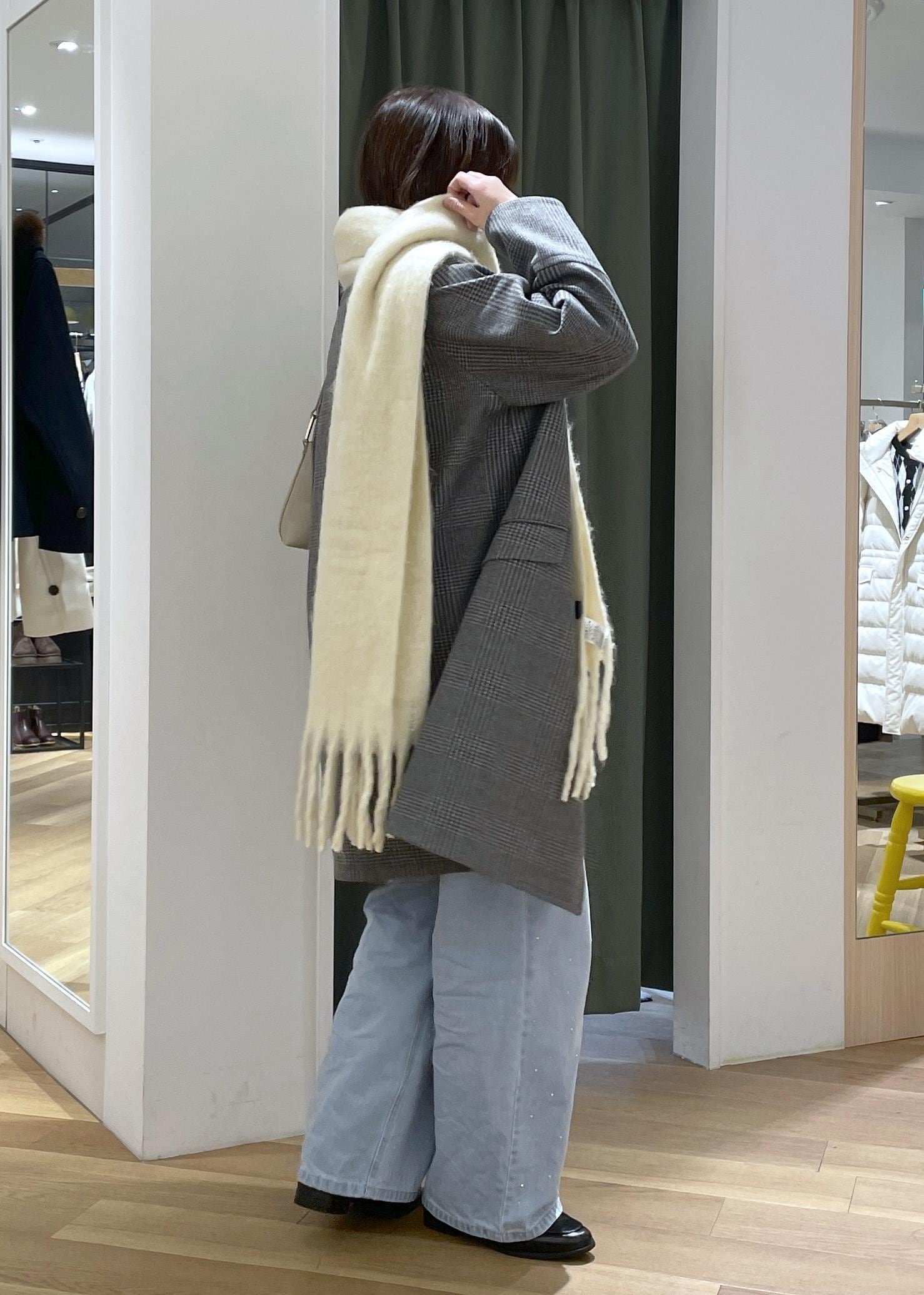 ボリューム感のあるマフラーを合わせて温かさもプラスしました!