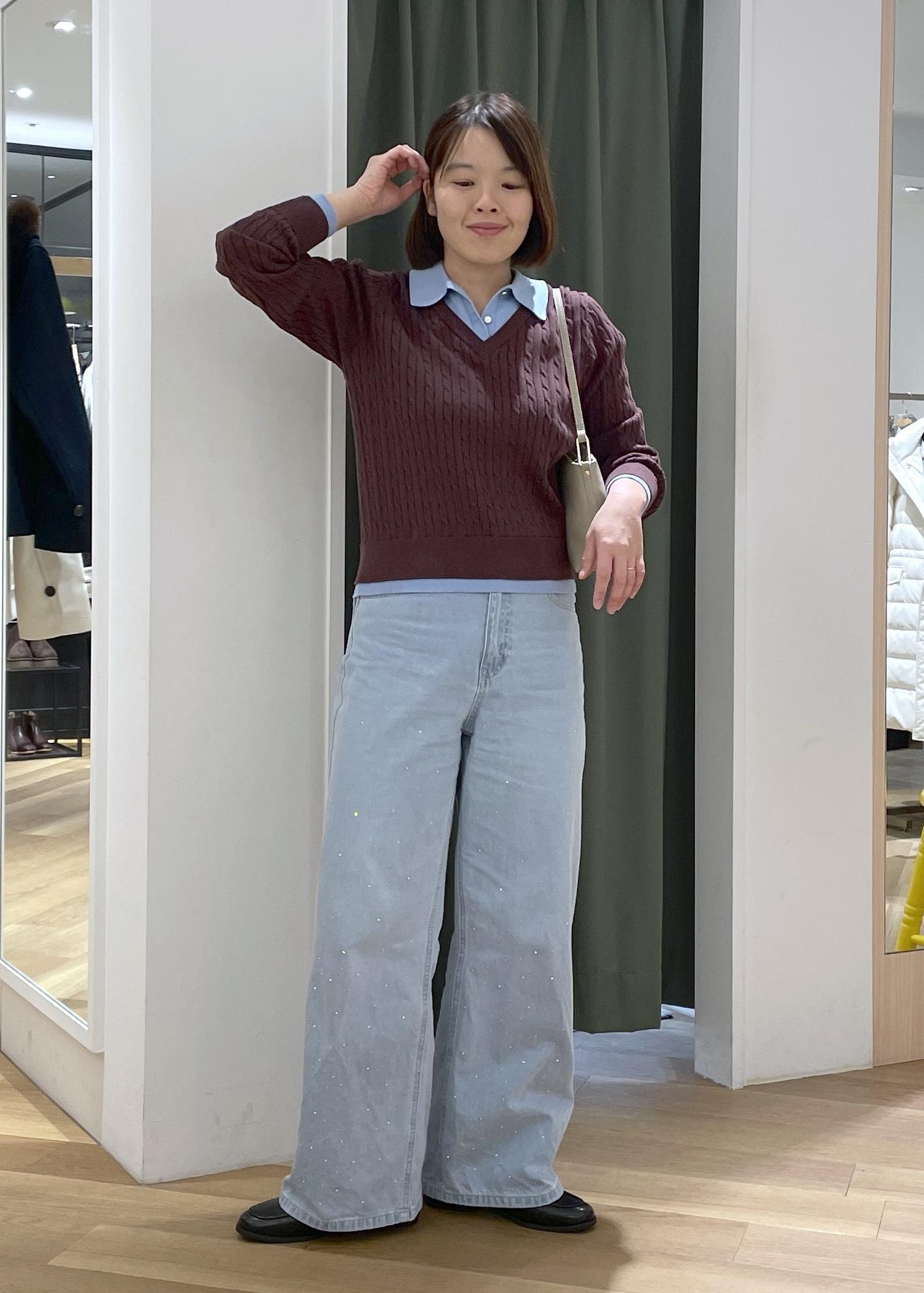 ボトムはビジューデニムを合わせて、少しカジュアルダウンしたコーデに◎