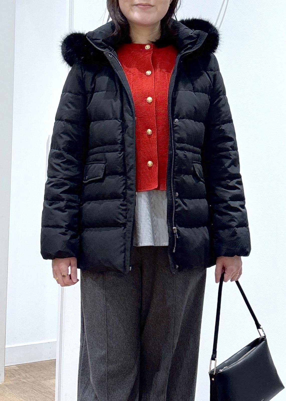 2BUY10%OFFROPÉ PICNIC【GREEN DOWN/グリーンダウン】ファー付きダウンミドル丈コート/リンクコーデブラック / M¥14,960レビュー162㎝Mサイズの着用で、お尻が半分ちょっと隠れる着丈でした。