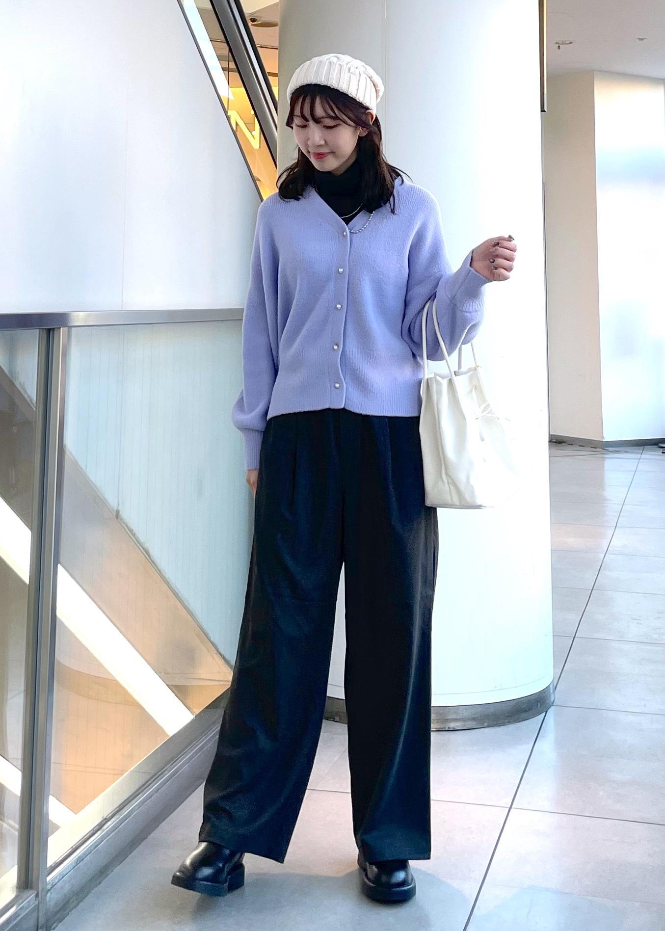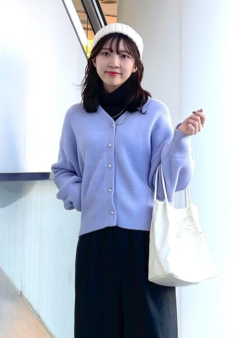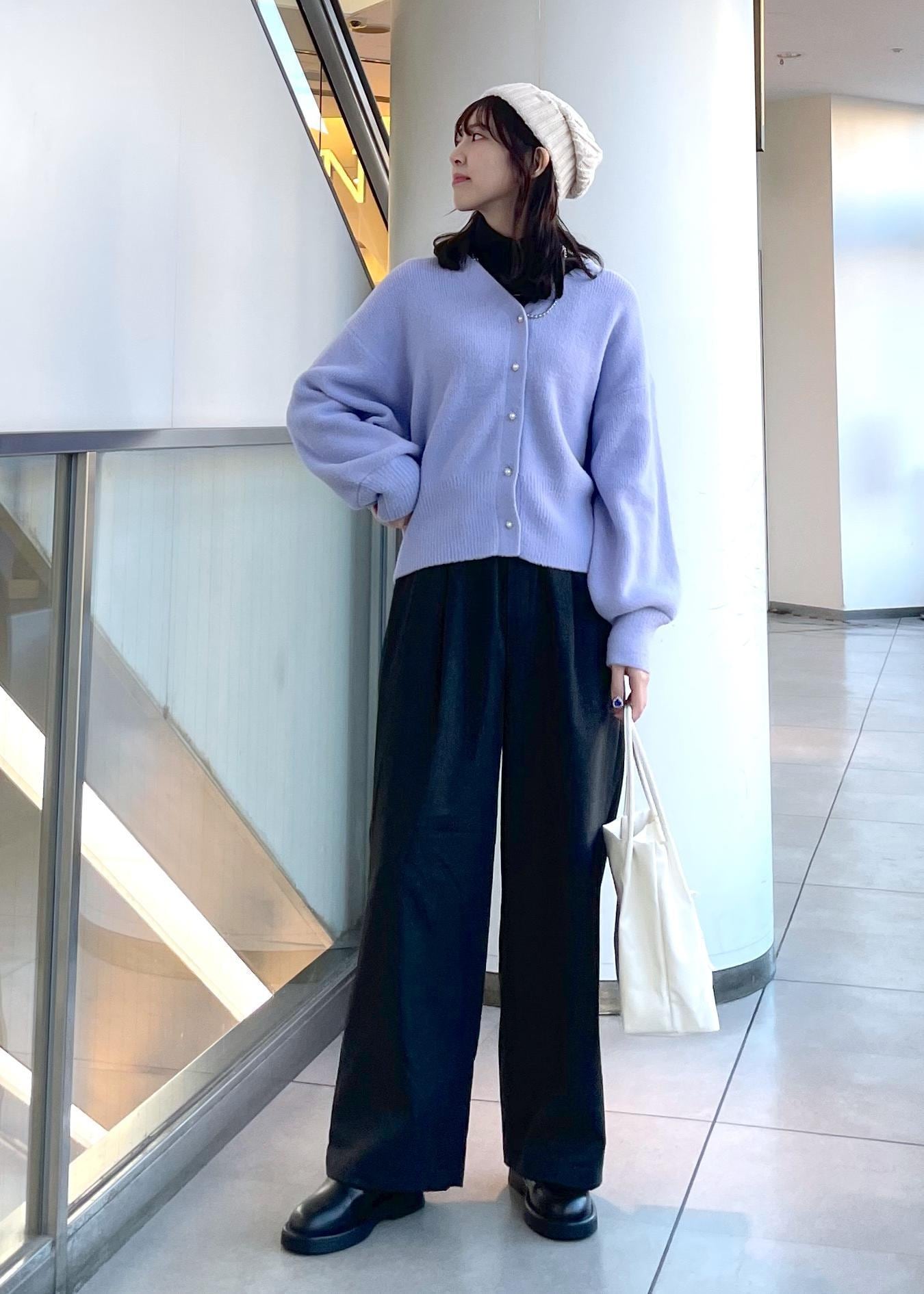 大人気のカーディガン、新しくラベンダーカラーが入荷しました♡冬のレジャーにもピッタリなカジュアルスタイルで合わせました。