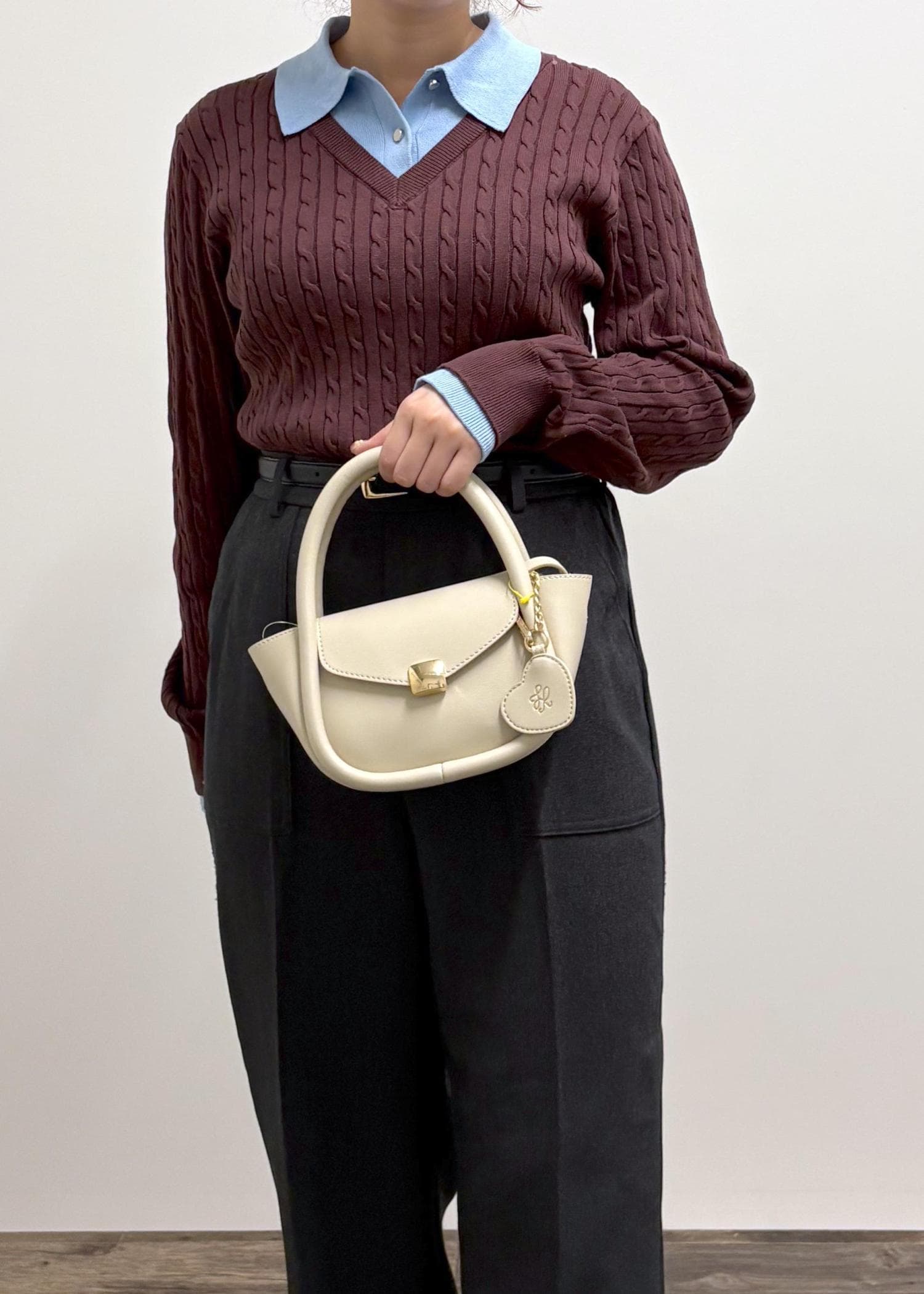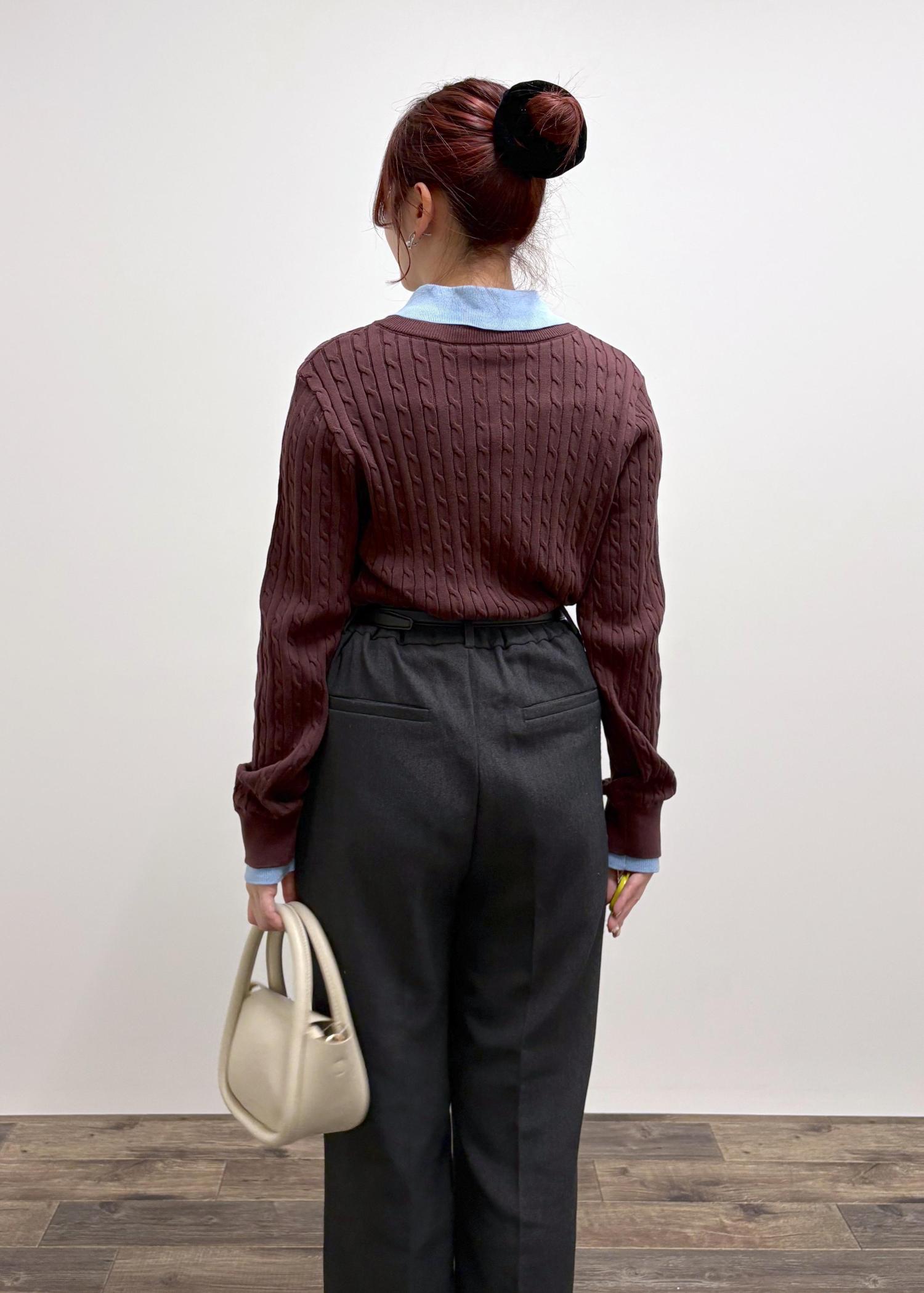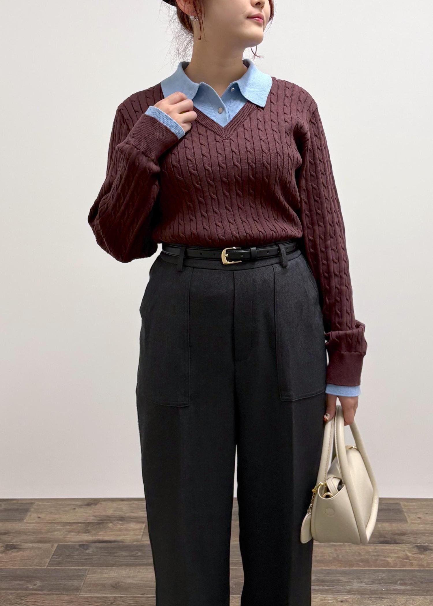 2BUY10%OFFROPÉ PICNIC【新色追加】フェイクレイヤードニットプルオーバーダークブラウン / F¥5,489レビュー衿がドッキングされたトップスです。