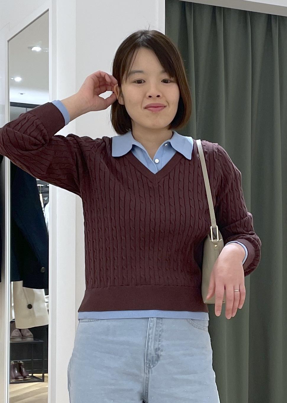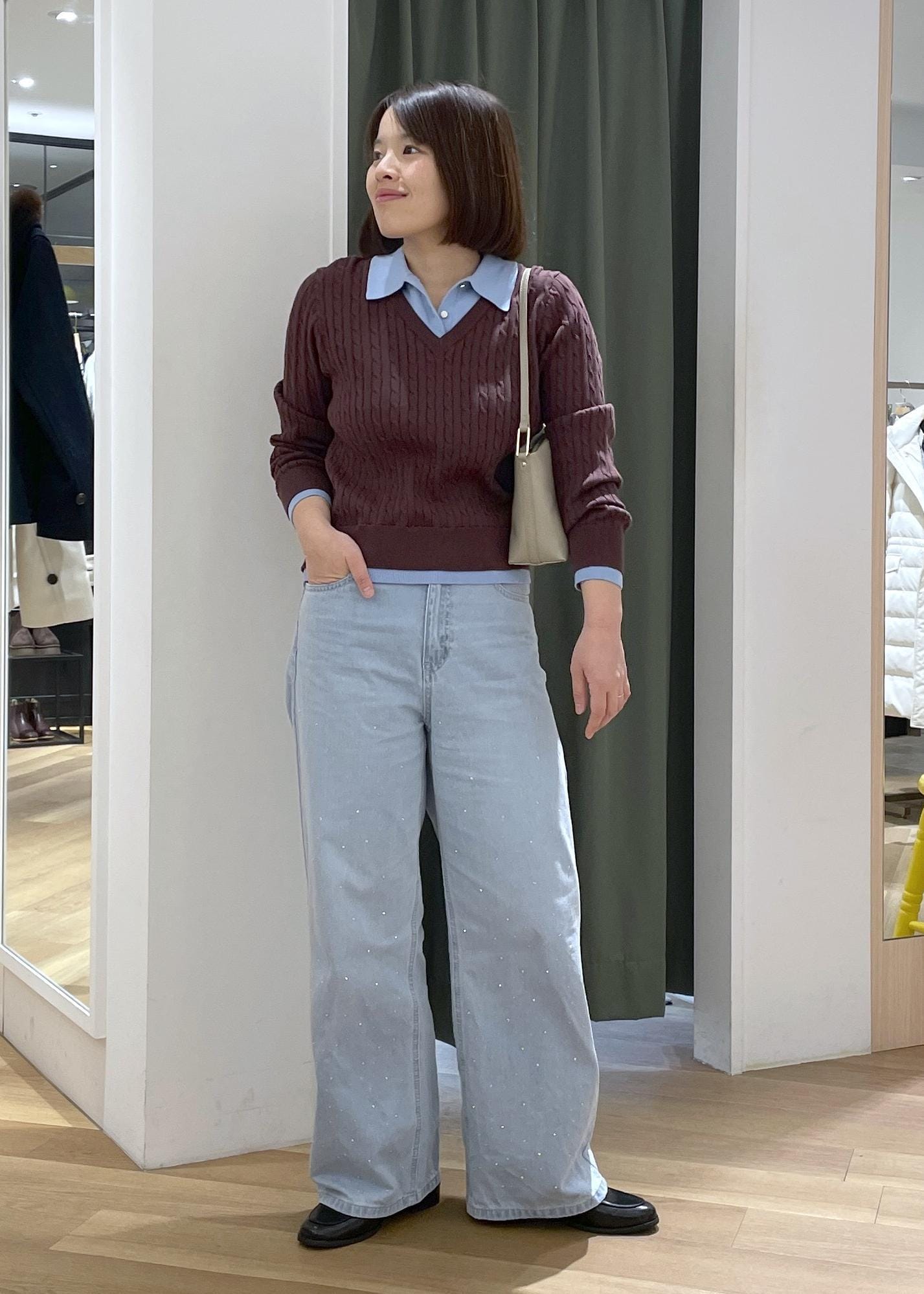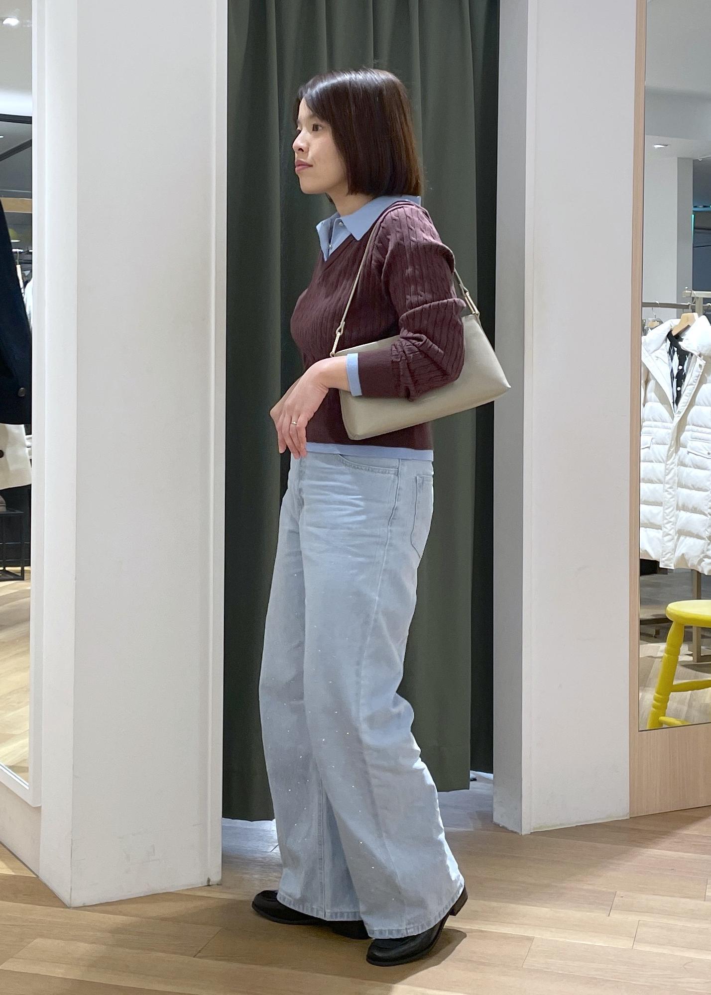 トップスは襟付きデザインなので、デニム合わせでも少し知的に大人っぽく合わせることができます◎