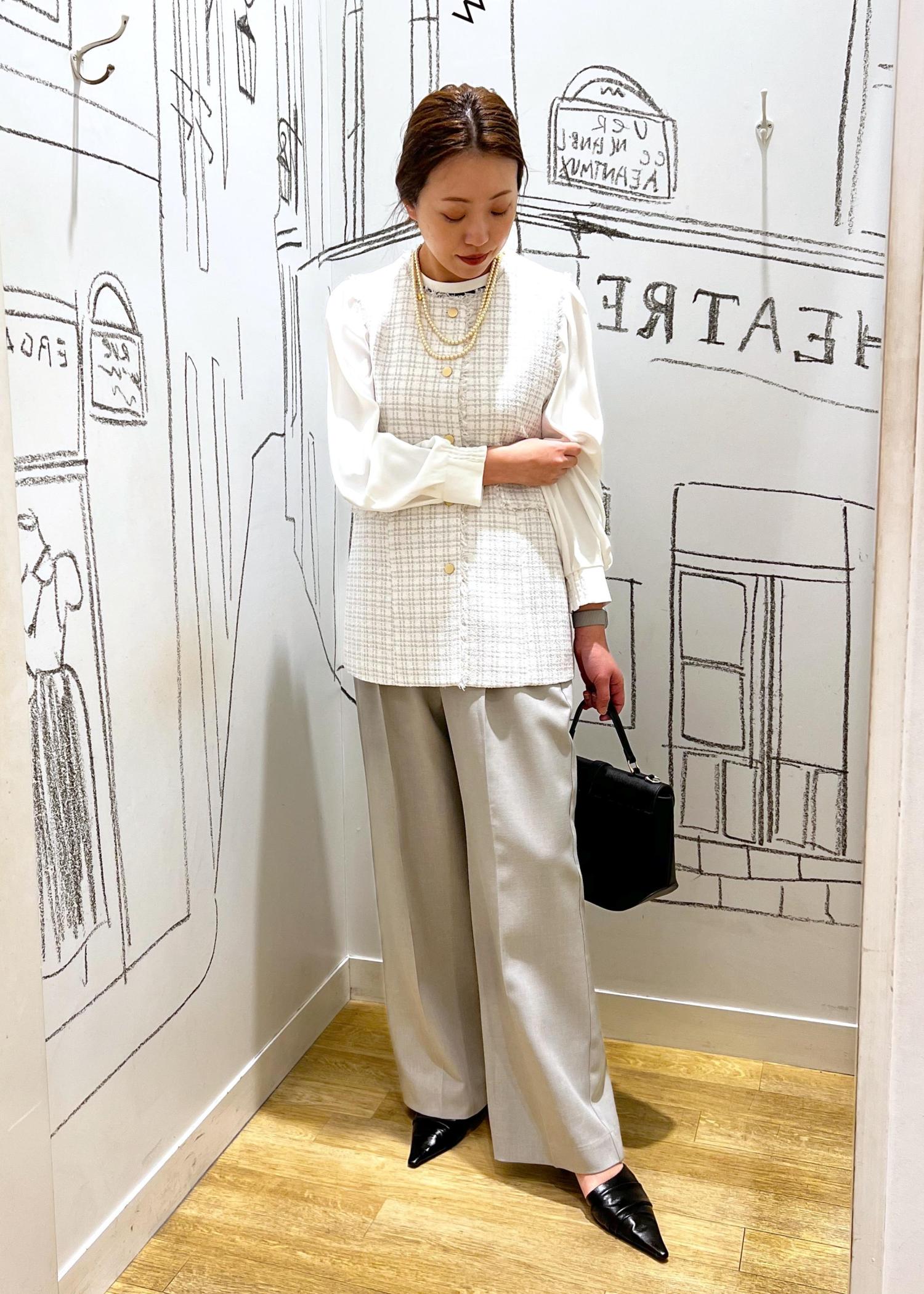 ROPÉ PICNICフロントピンタックブラウス/一部WEB限定カラーベージュ / L¥3,599レビューさらっとした肌触りです。フロント部分のピンタックデザインがジャケットのインナーでも映えます。