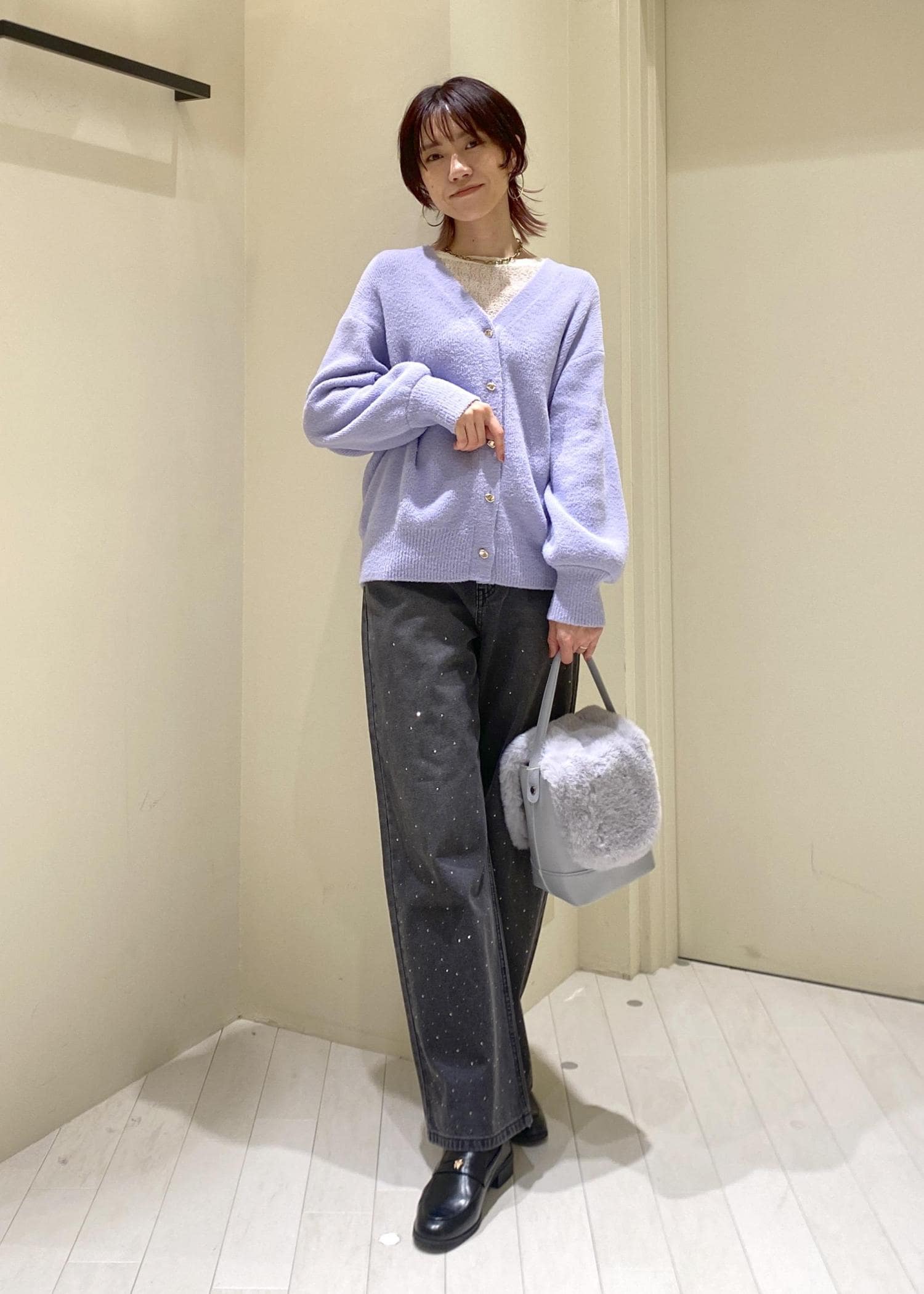動くたびキラキラ光るビジューが華やかで、スタイリングの主役になります。 -