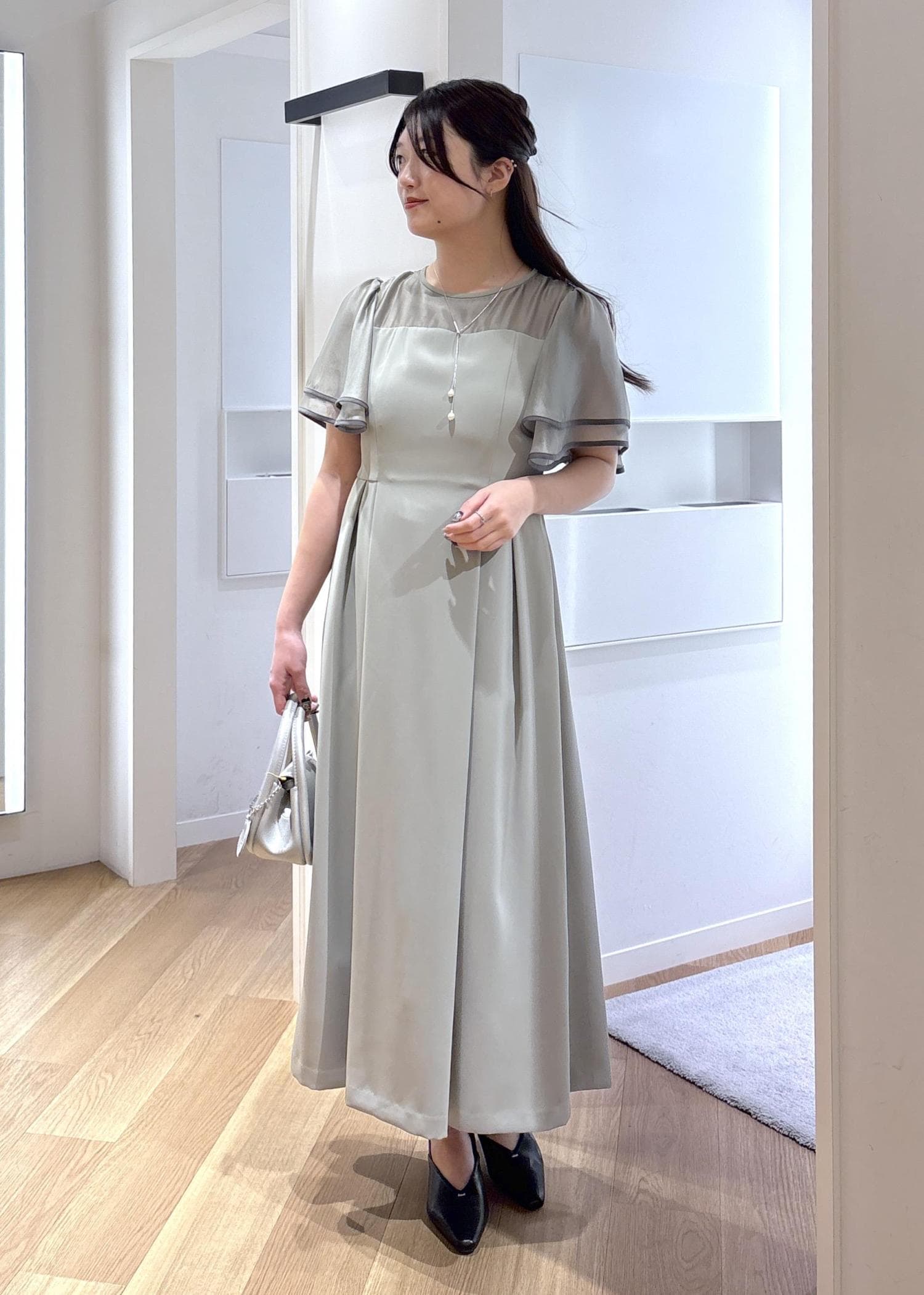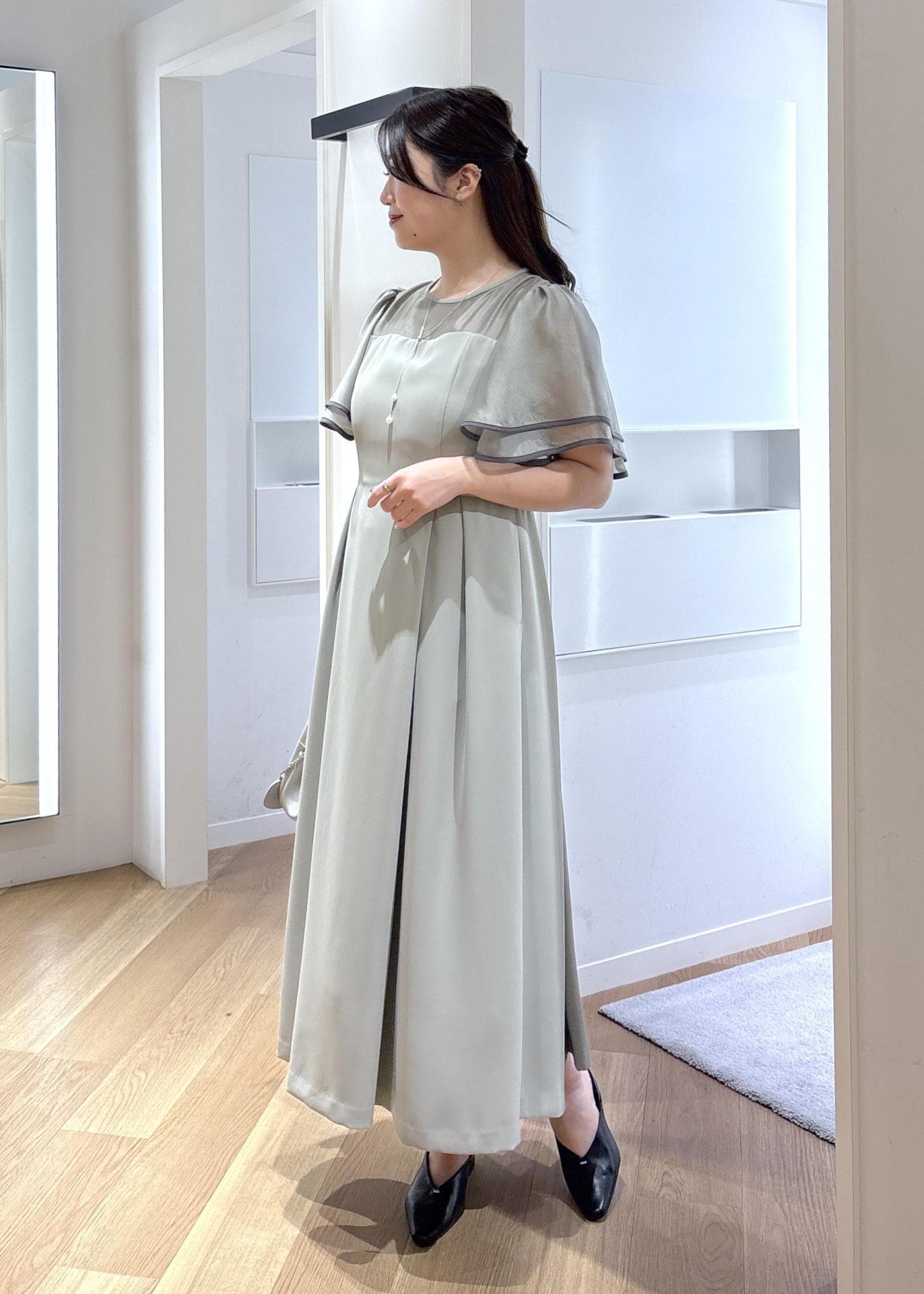 袖は肘より少し上で、二の腕をふんわりとカバーしてくれます。