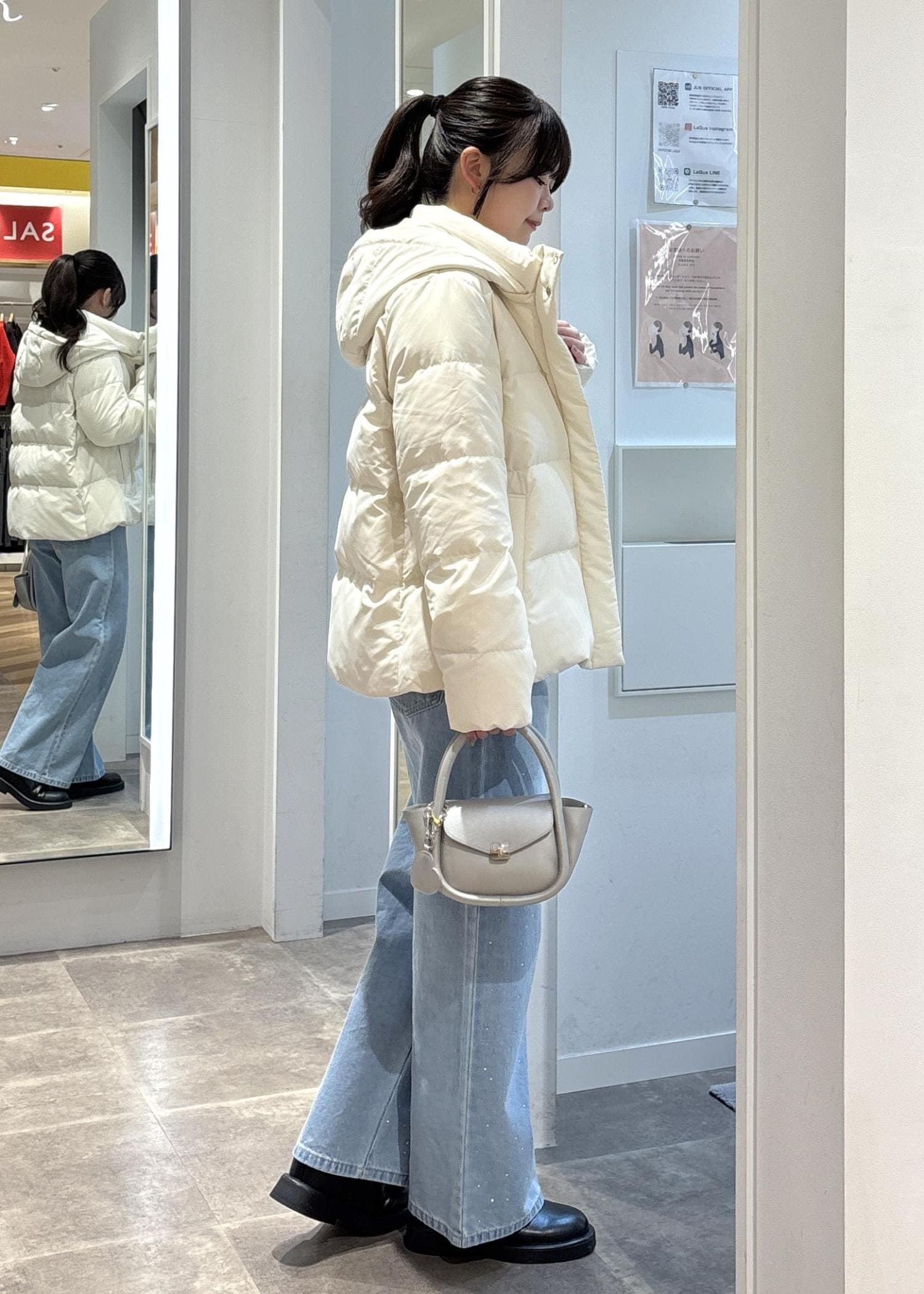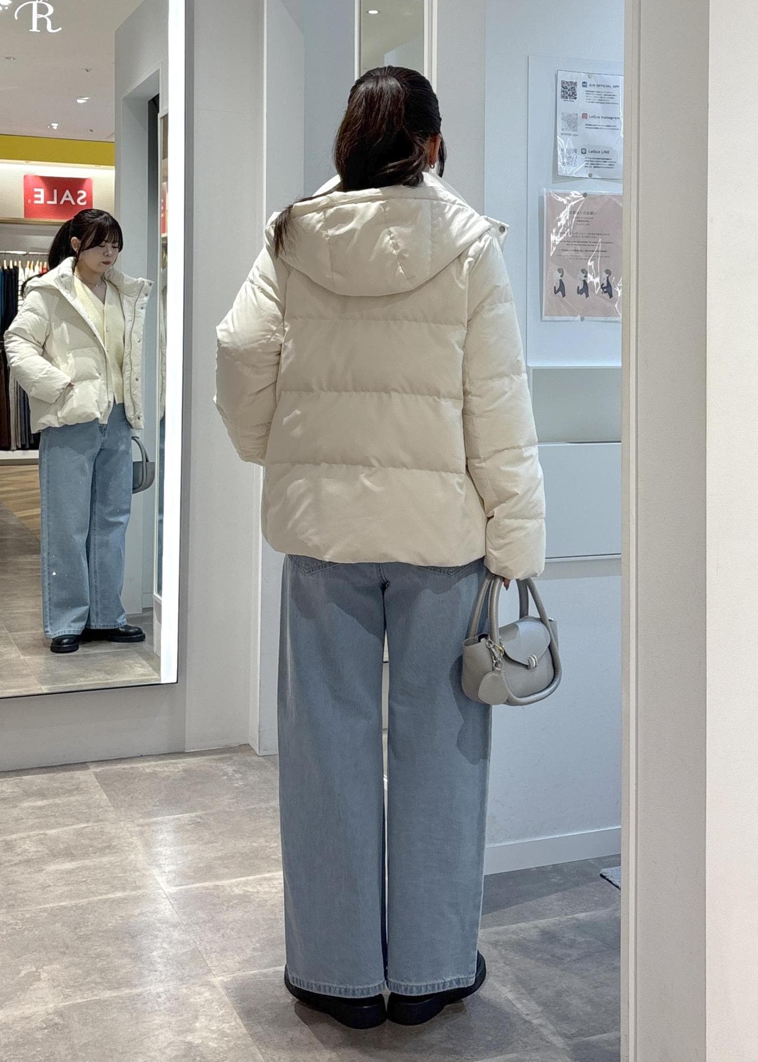 2BUY10%OFFROPÉ PICNIC【GREEN DOWN/グリーンダウン】ショートダウン/リンクコーデオフホワイト / M¥13,200レビュー161cm/Mサイズで程よくゆとりのある着用感。ヒップが半分くらい隠れる着丈です。想像よりも更に軽く、厚みのあるニットなどの上から羽織ってもストレスフリーな着心地でした。