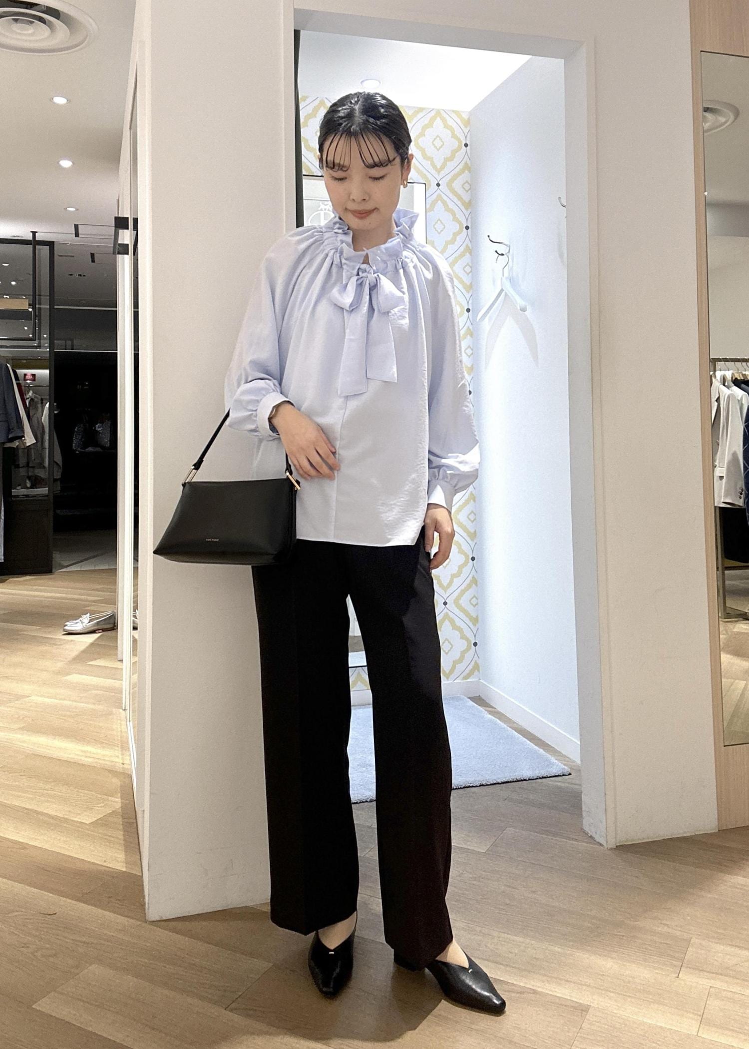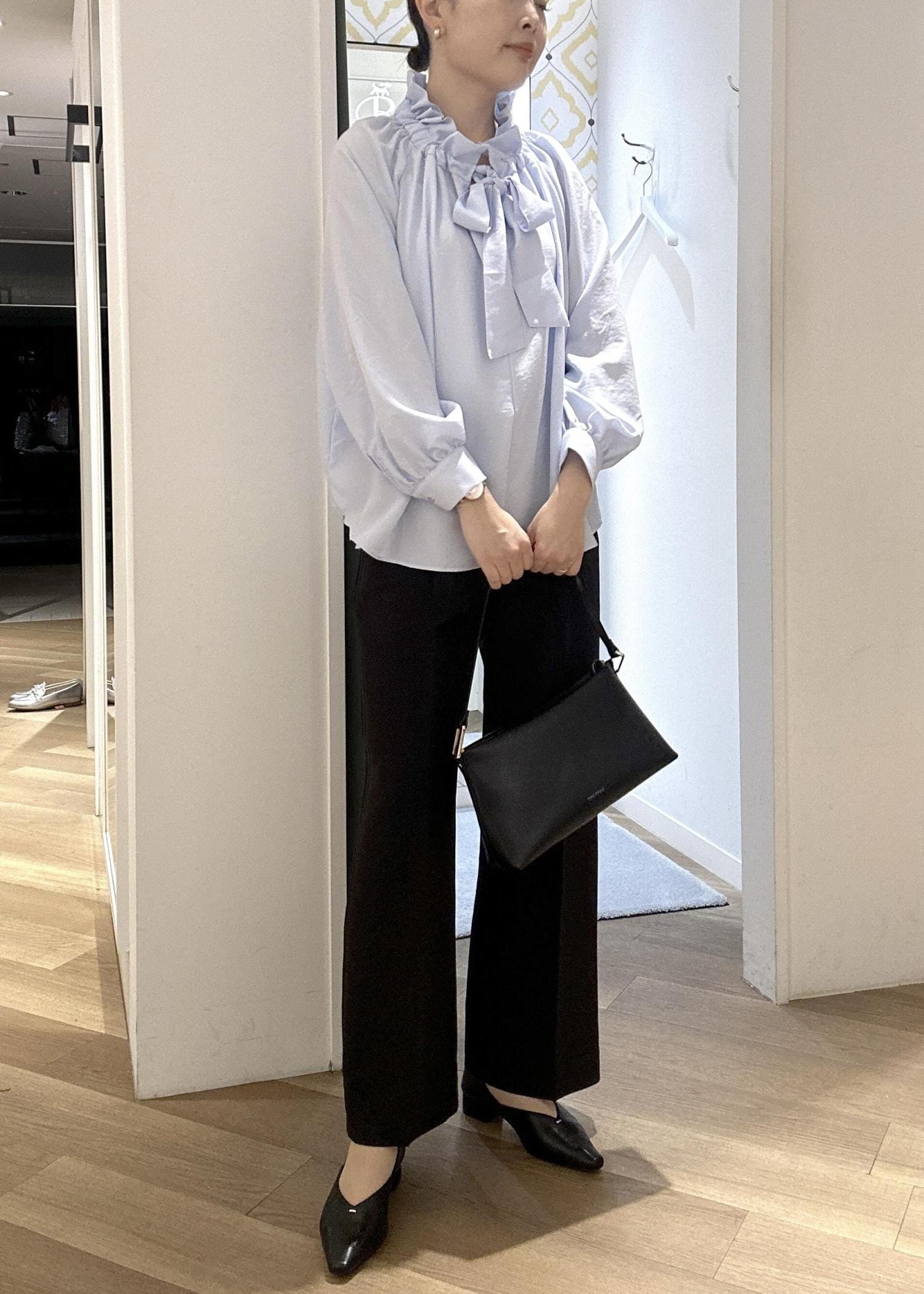ROPÉ PICNICネックコンシャスデザインシャツ/イージーケアサックス / F¥5,995レビューデザイン性のある着映えブラウスです♪ フリルで顔周りが華やかになります。