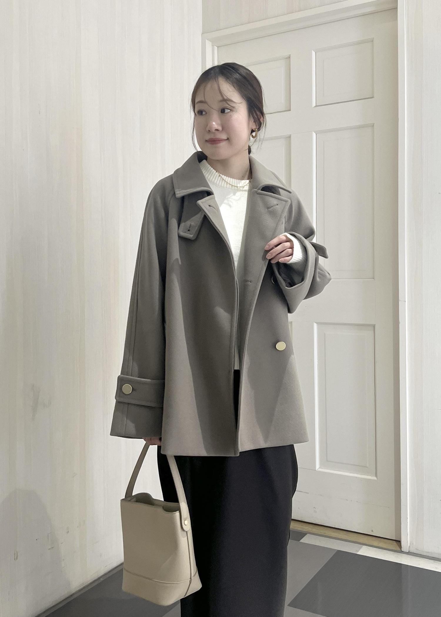 アウターはミディ丈でスカートを活かせるものをチョイス◎