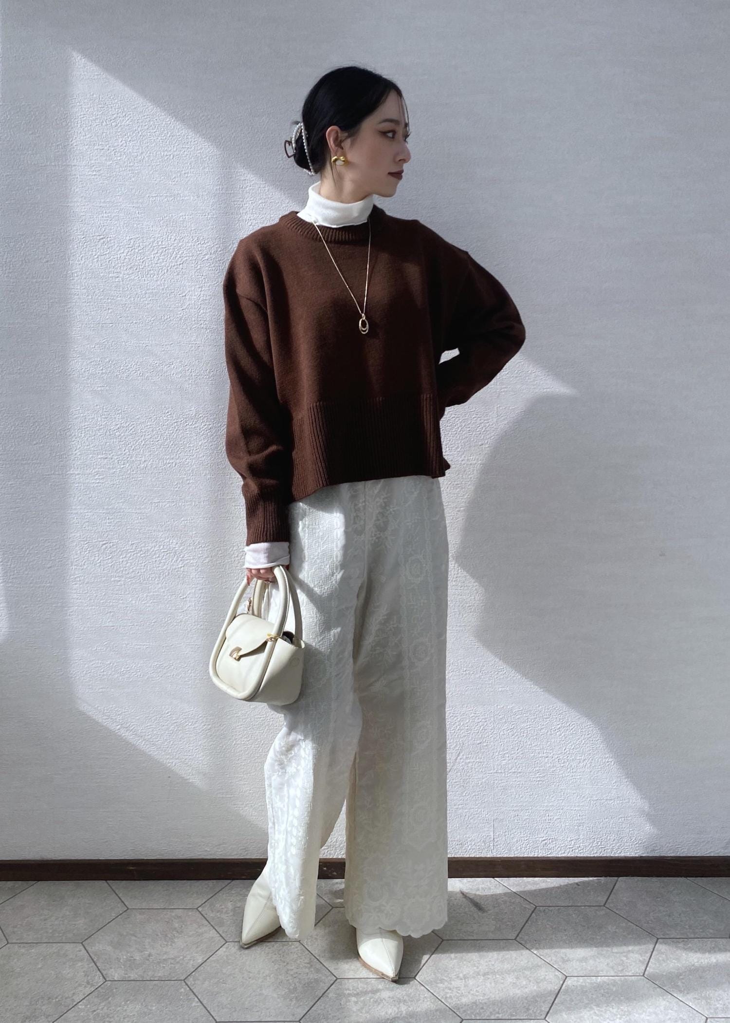 ROPÉ PICNIC【新色追加】着丈が選べるクルーネックサイドスリットニットプルオーバー/イージーケアダークブラウン / M¥3,149レビューちくちく感なく柔らかい素材感です。