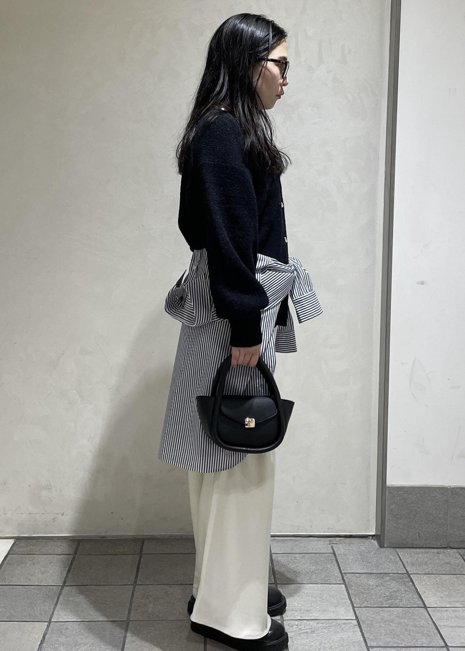 ヒップくらいの丈感でゆったりとしたサイズ感です。 -
