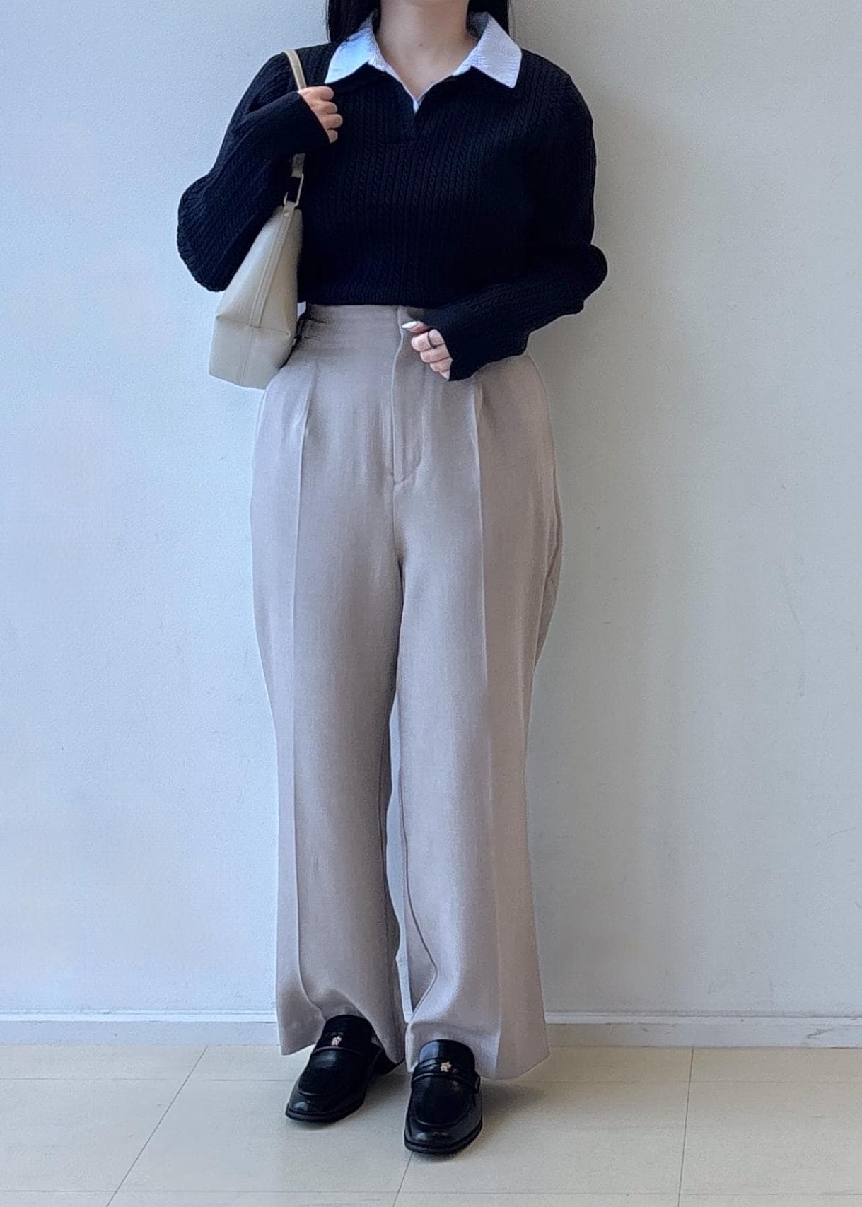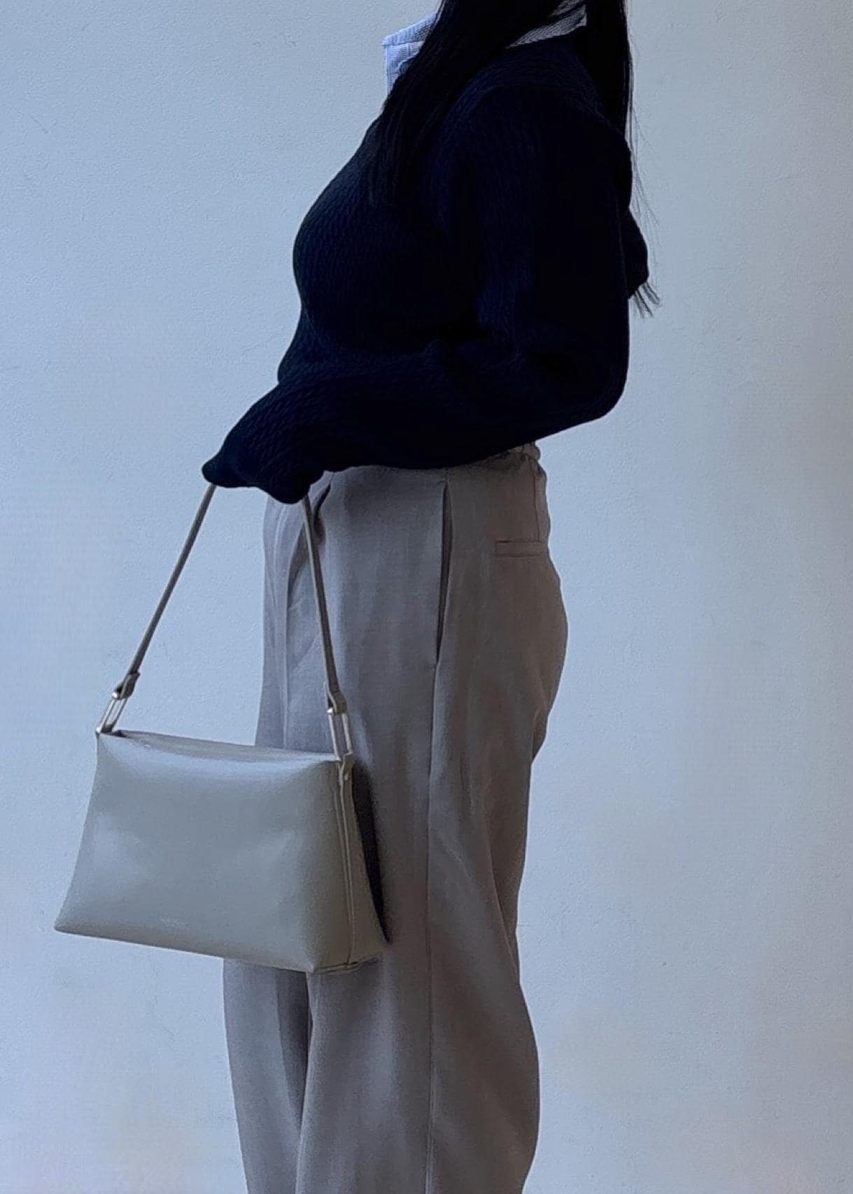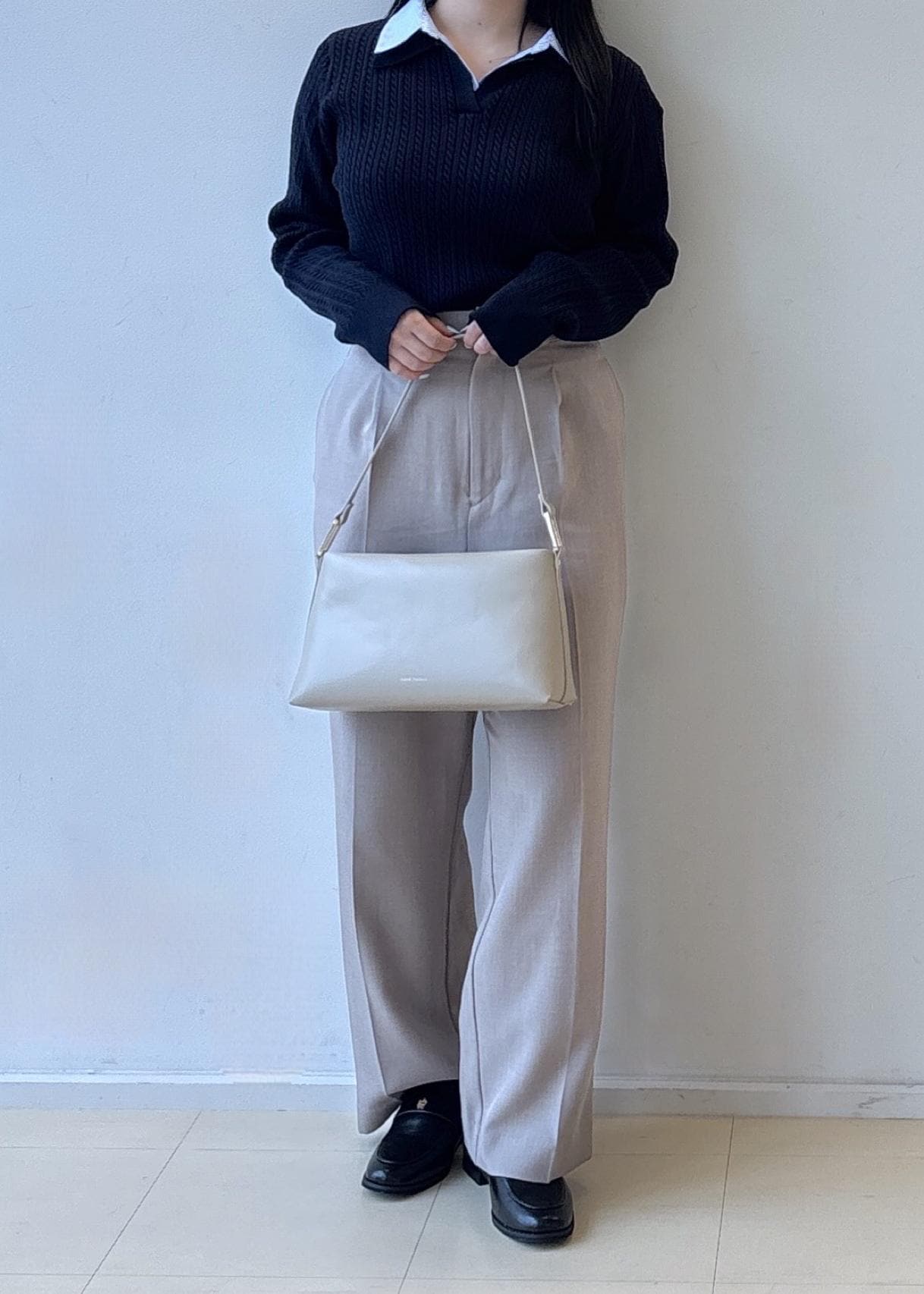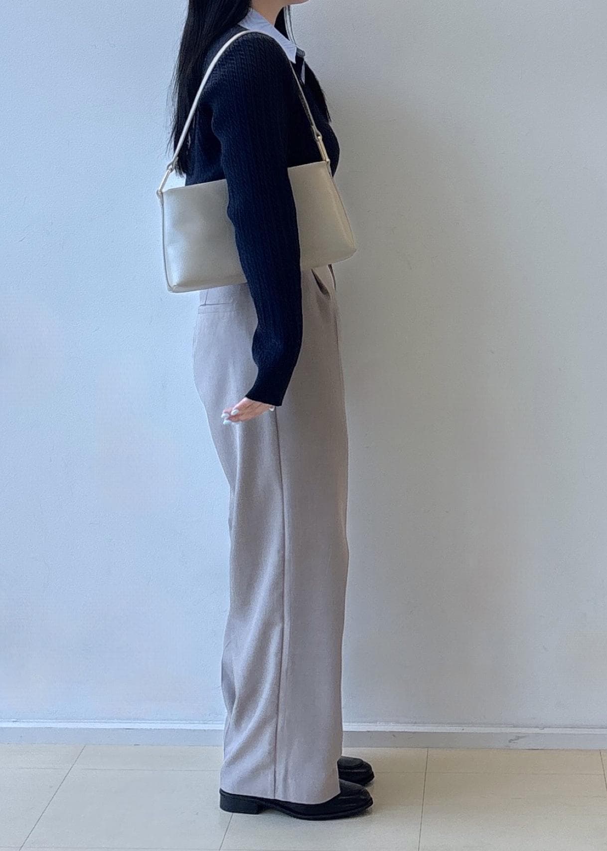 落ち着いた配色でまとめることで、お仕事にもデイリーにも使いやすい万能バランス。