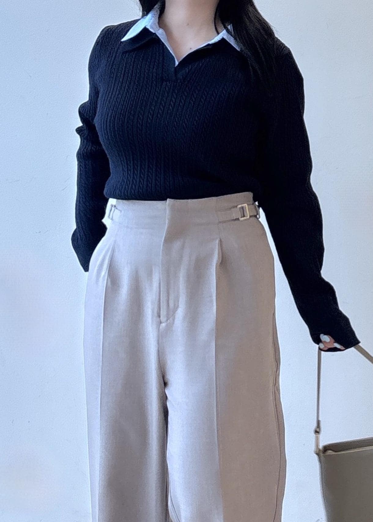 ハイウエストのワイドスラックスが縦ラインを強調し、すっきりとした印象に仕上げました★