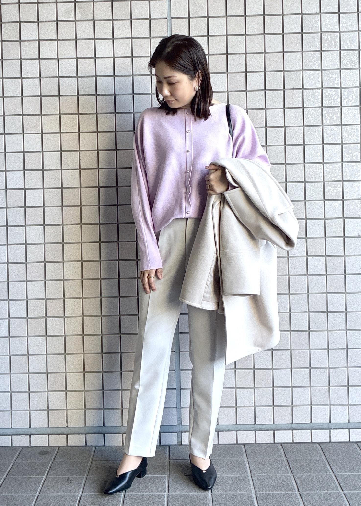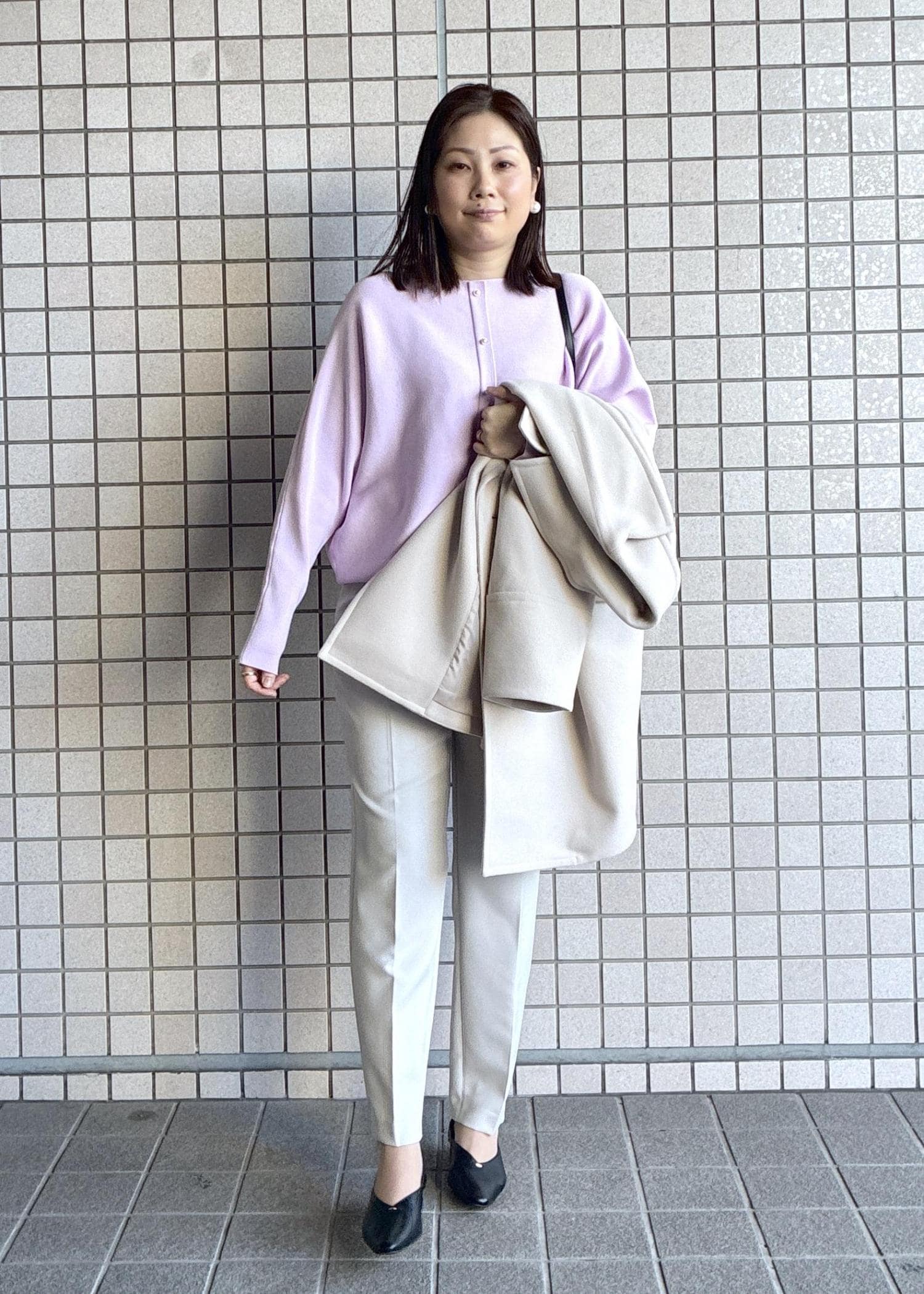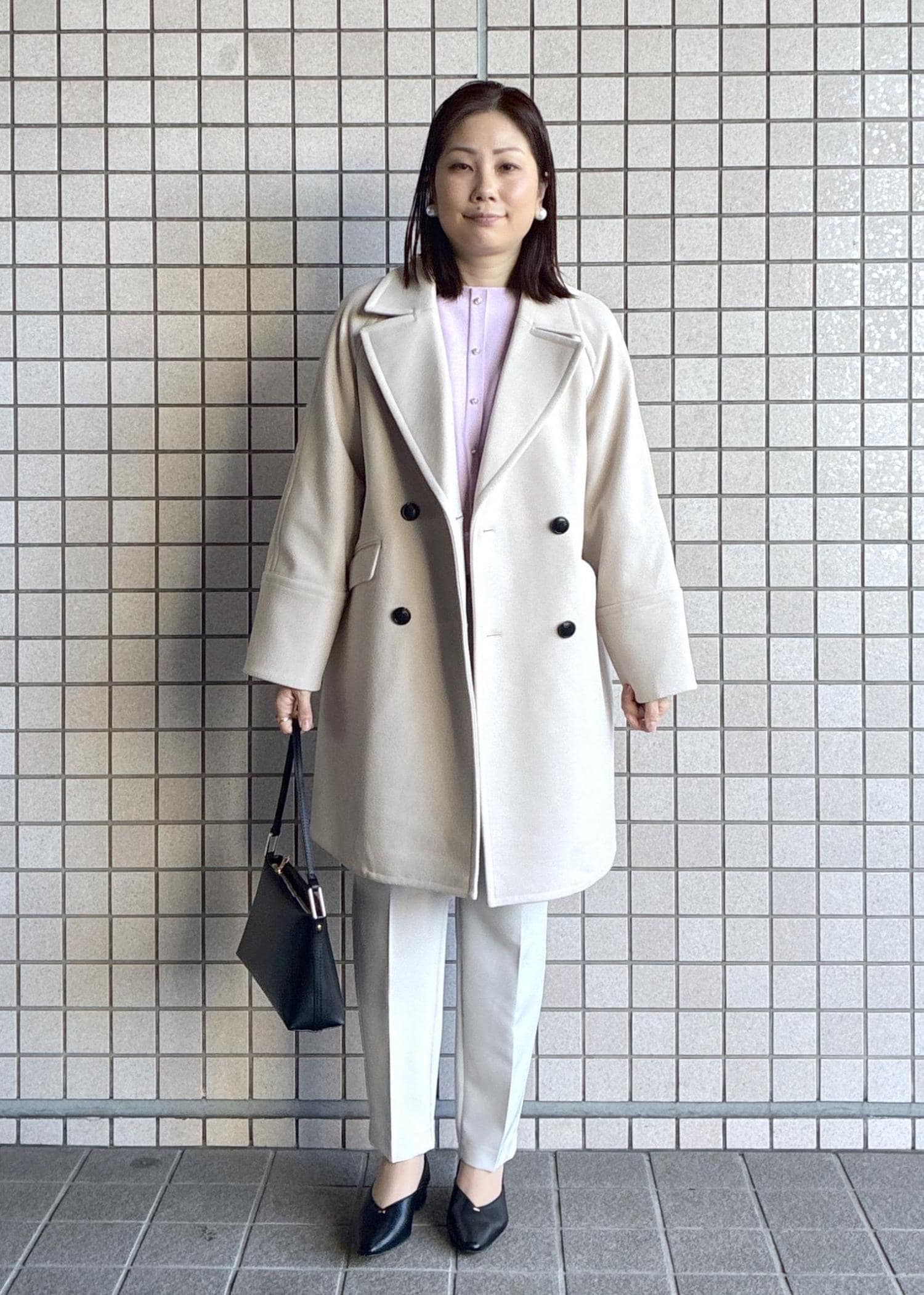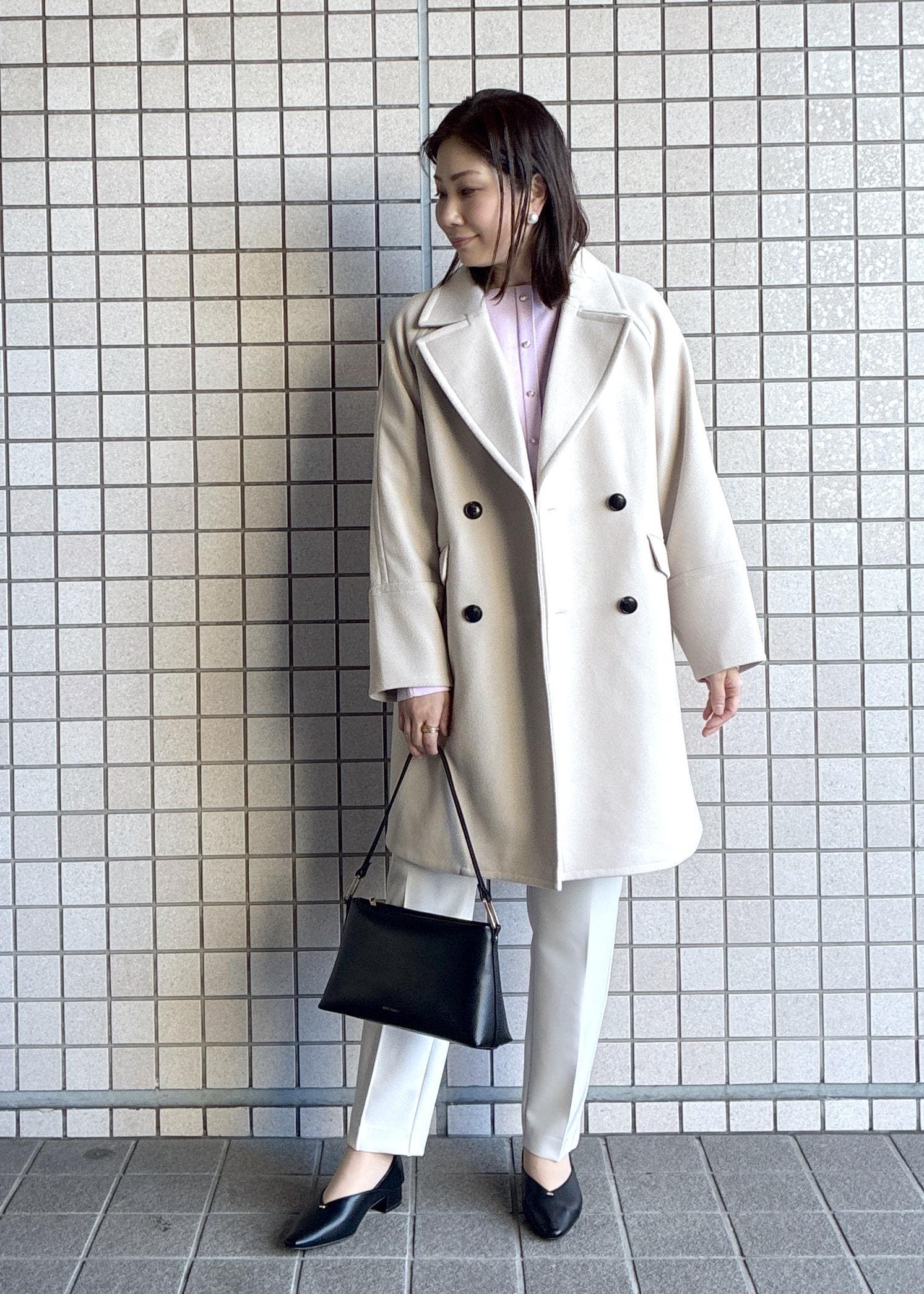 膝上の丈感で、長すぎず使いやすいアウターです。