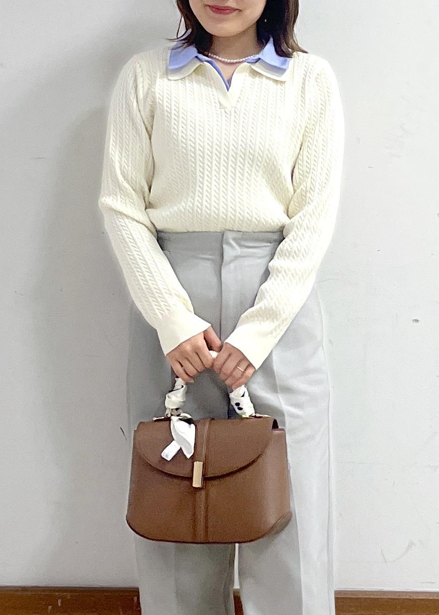 ROPÉ PICNICダブルカラーミニケーブルニットキナリ / F¥5,995レビュー柔らかい生地感で身幅にゆとりがあるので着心地抜群♪