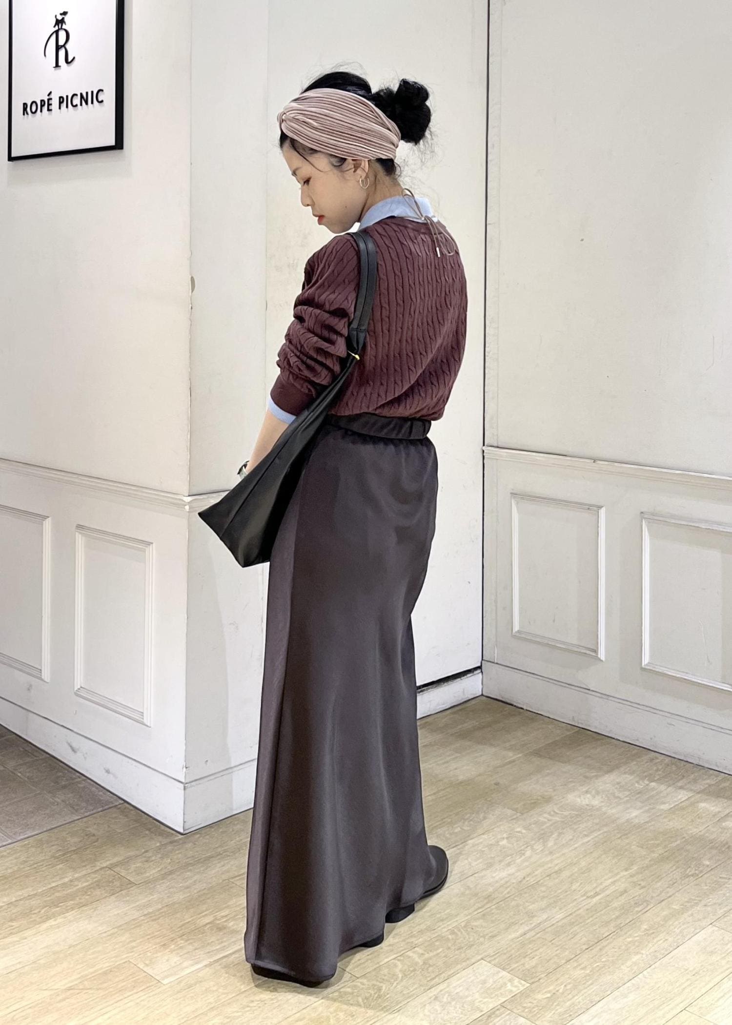 ROPÉ PICNIC細見えバイアスサテンスカート/イージーケアダークブラウン / F¥6,490レビュートロンとした光沢感が上品☺︎
