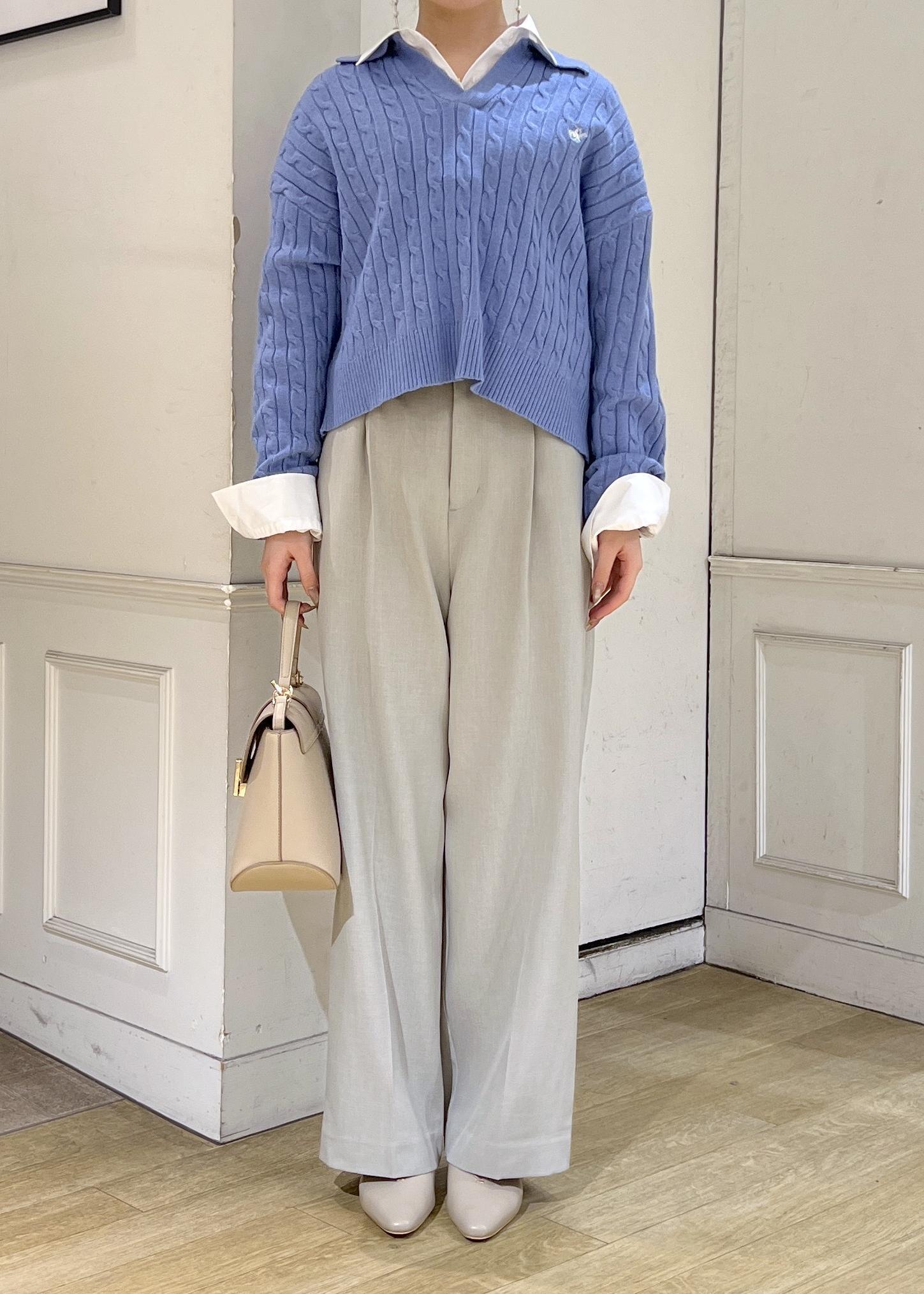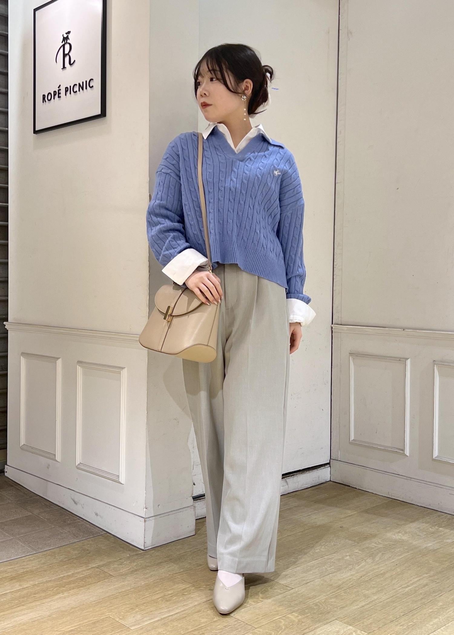 ROPÉ PICNIC【BEVERLYHILLS POLO CLUB・新色追加】ケーブル編みクロップドスキッパーニットサックス / F¥5,995レビューお袖は少し長めです。着丈は腰あたりでウエストINしなくてもお召いただけます。