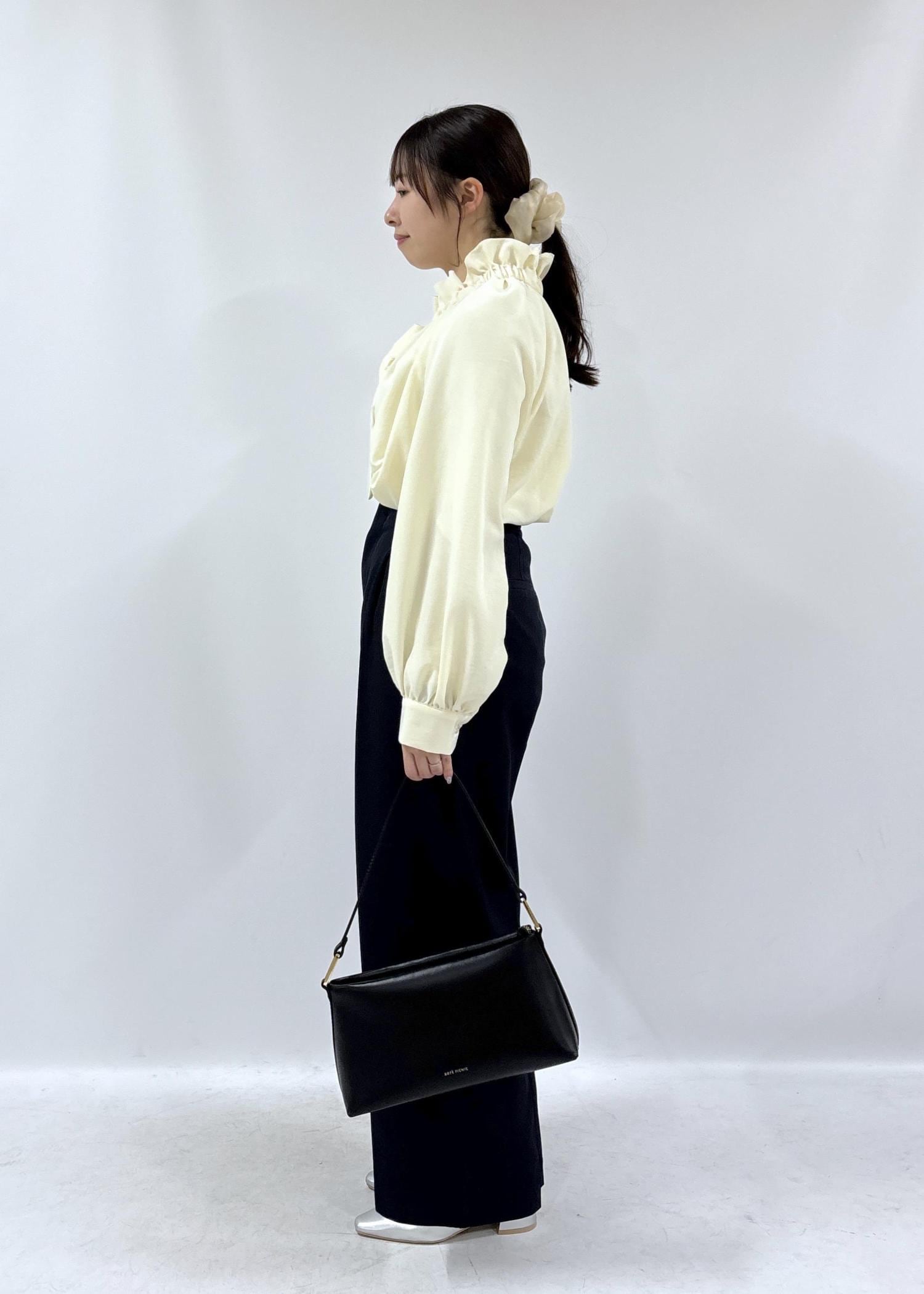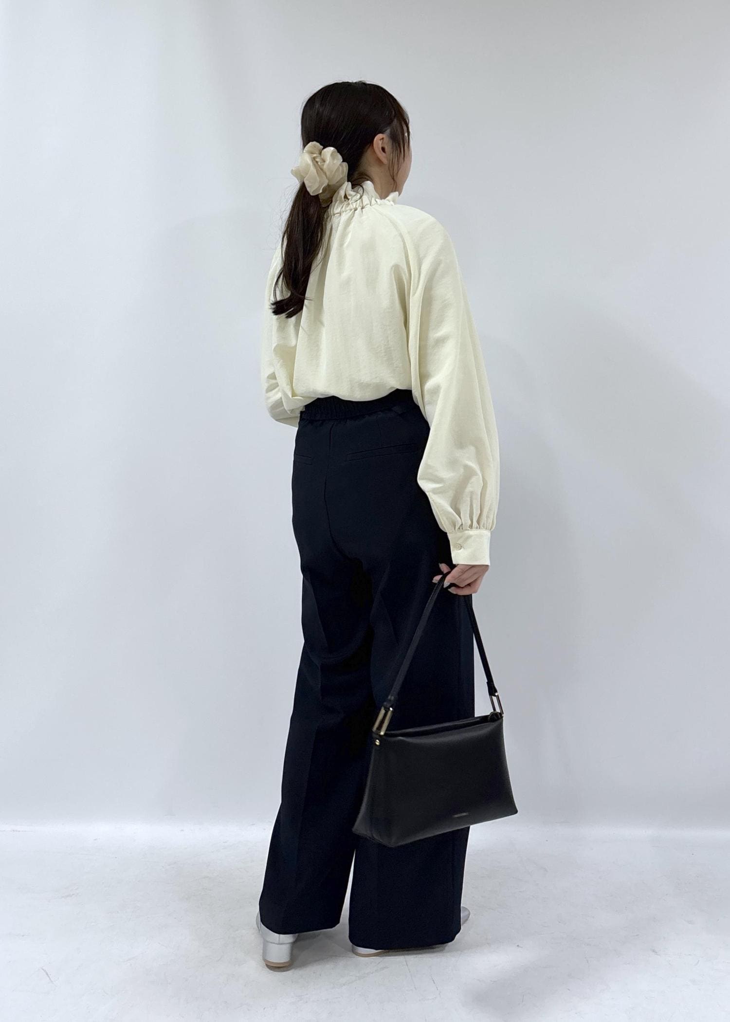 ふわっとしたシルエットで、身体のラインを拾い過ぎず着用頂けます。ゆったりめのサイズ感なので、ボトムスにはスッキリしたアイテムを合わせるのがオススメです◎