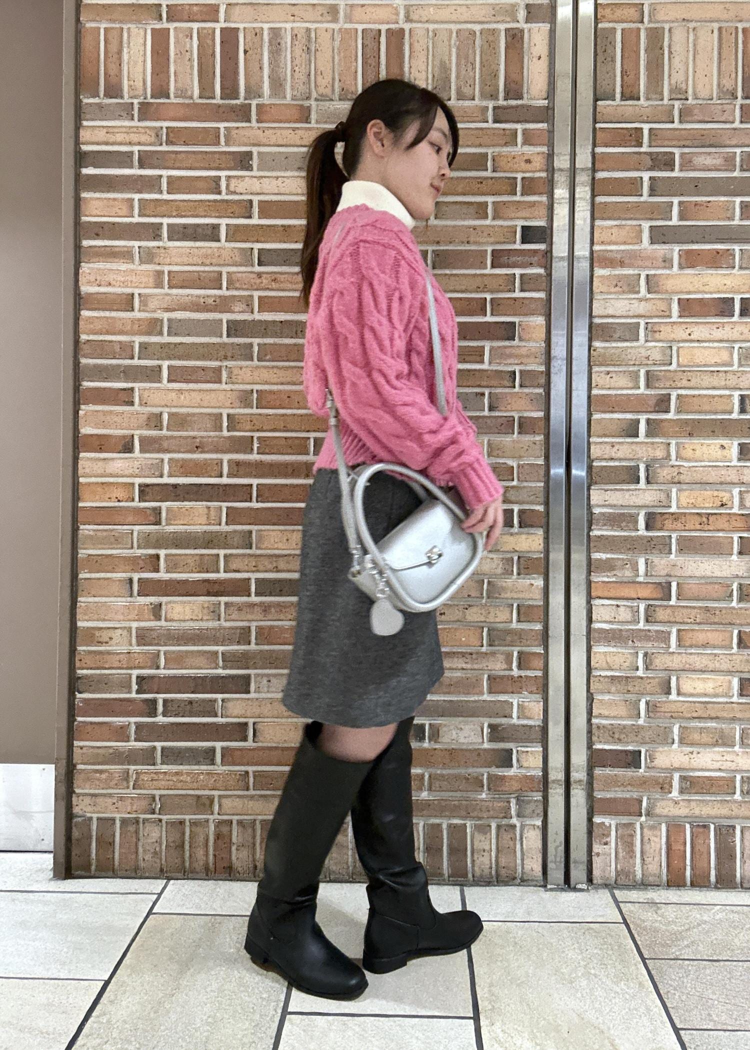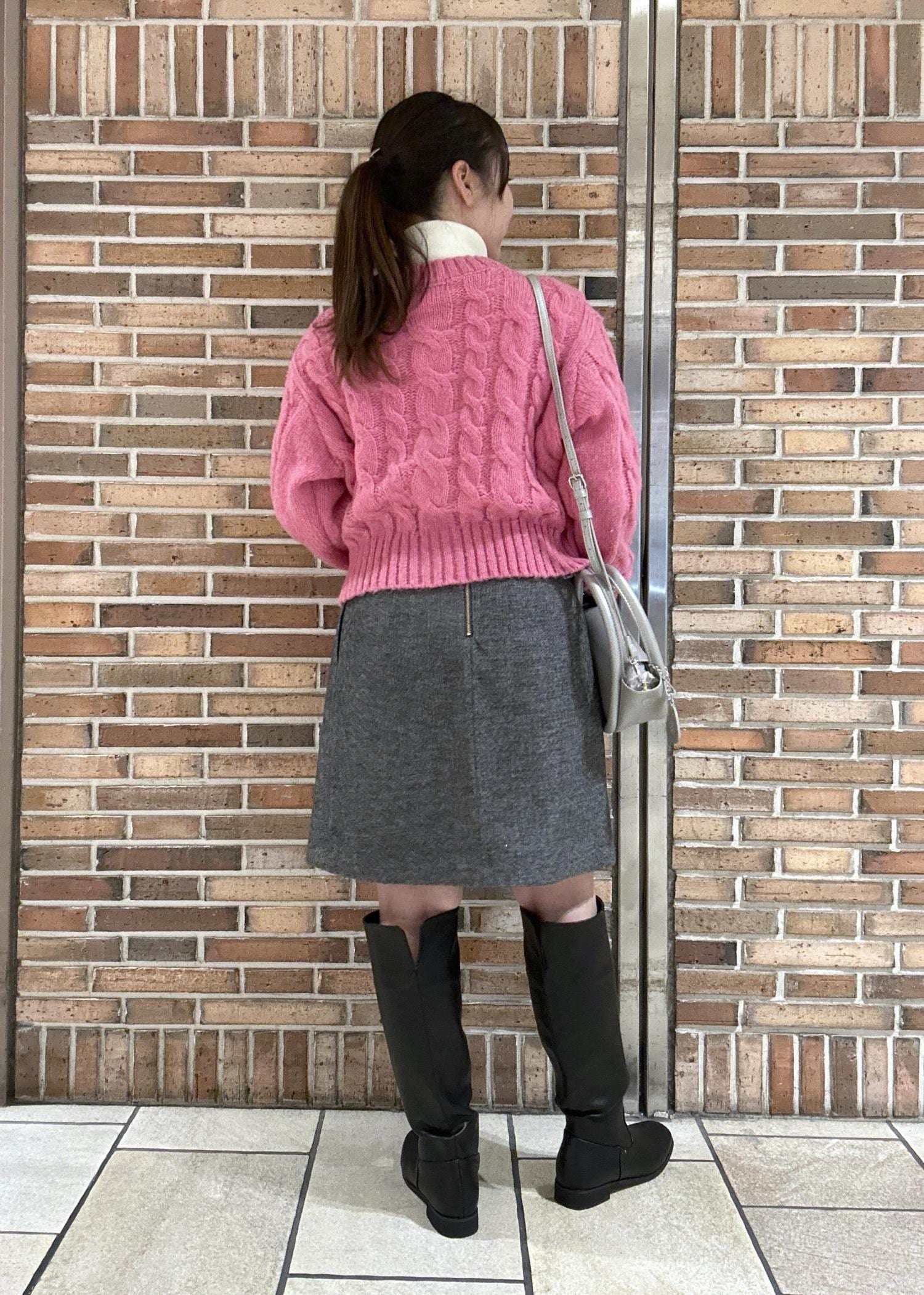 ウール見えする素材なので、ミニ丈も大人っぽく着られます。