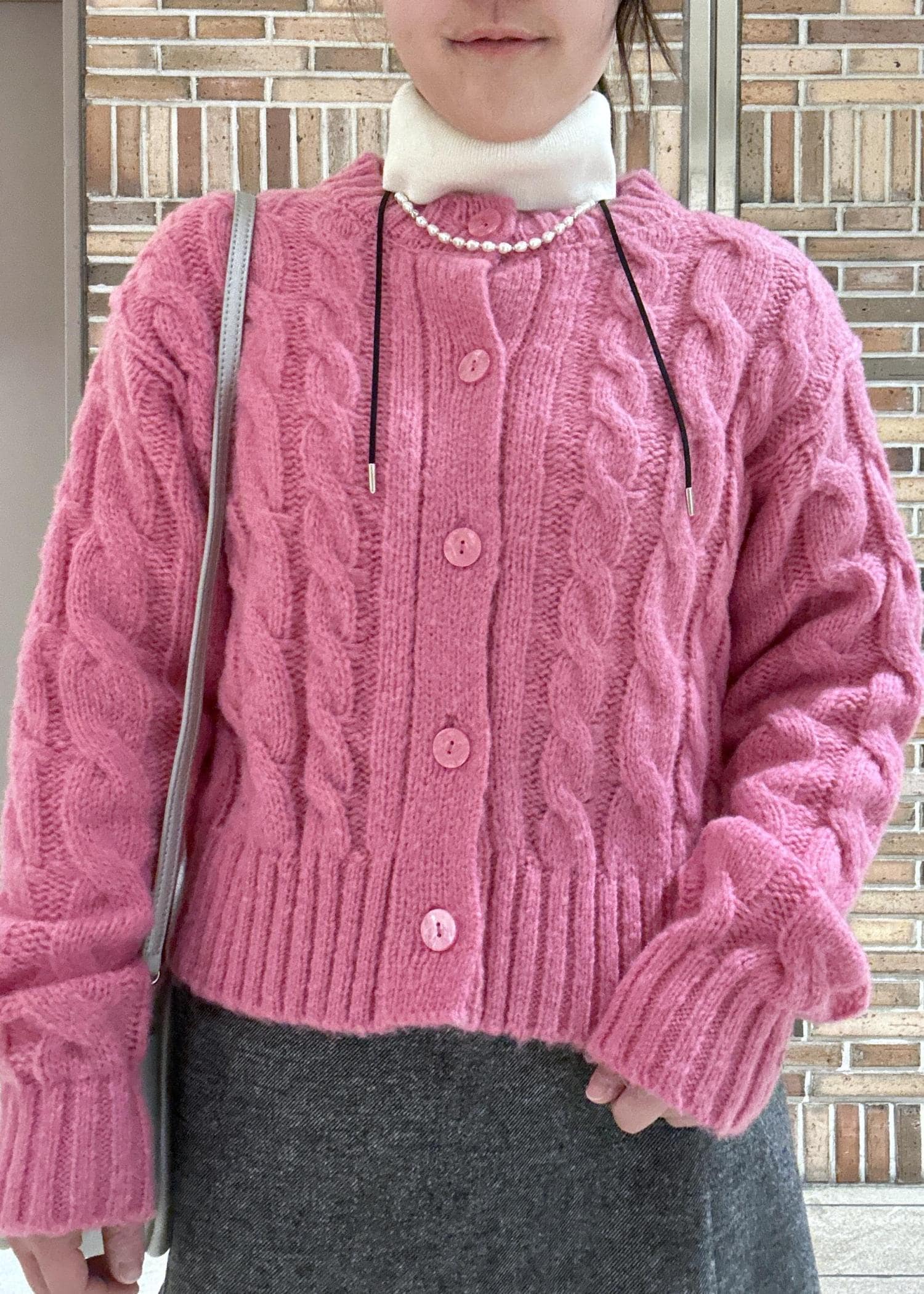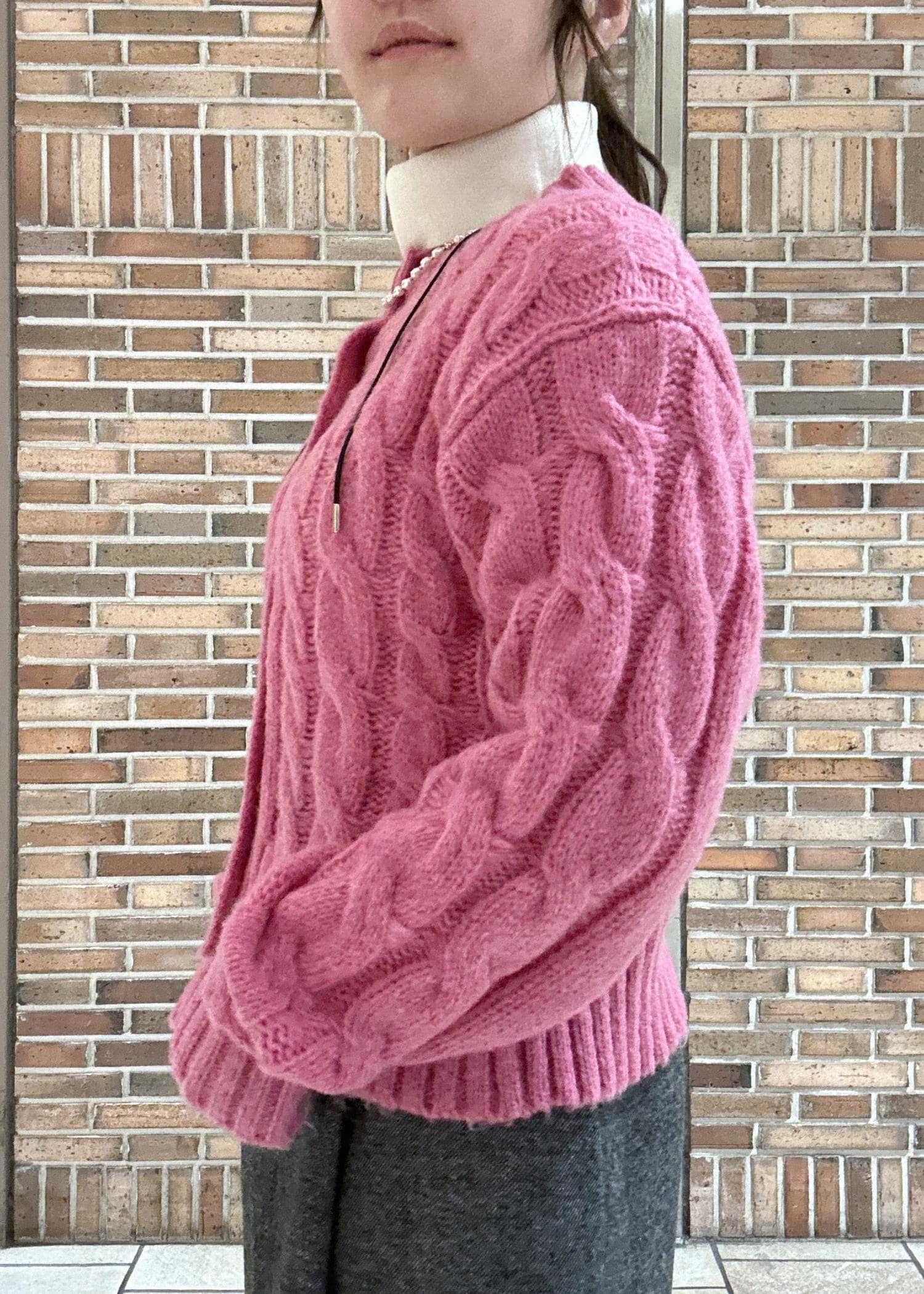 ROPÉ PICNICケーブルニットカーディガンローズピンク / F¥3,293レビューお顔周りを明るく見せてくれるピンク。