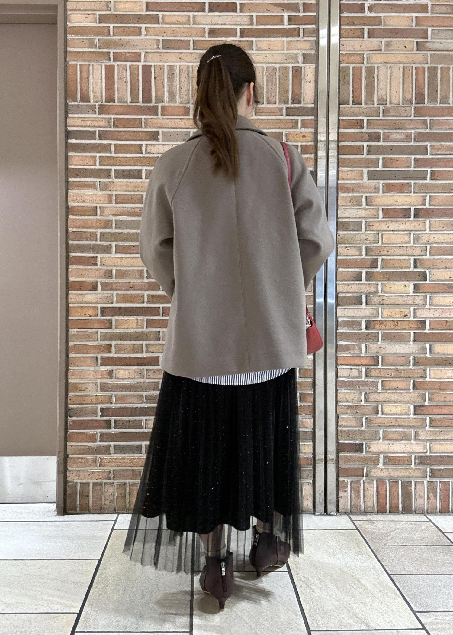 ROPÉ PICNICジャージーメルトンシリーズ 金ボタンミドル丈コート/リンクコーデブラウン系 / F¥7,692レビューアームは切替がない為ゆとりがあり、