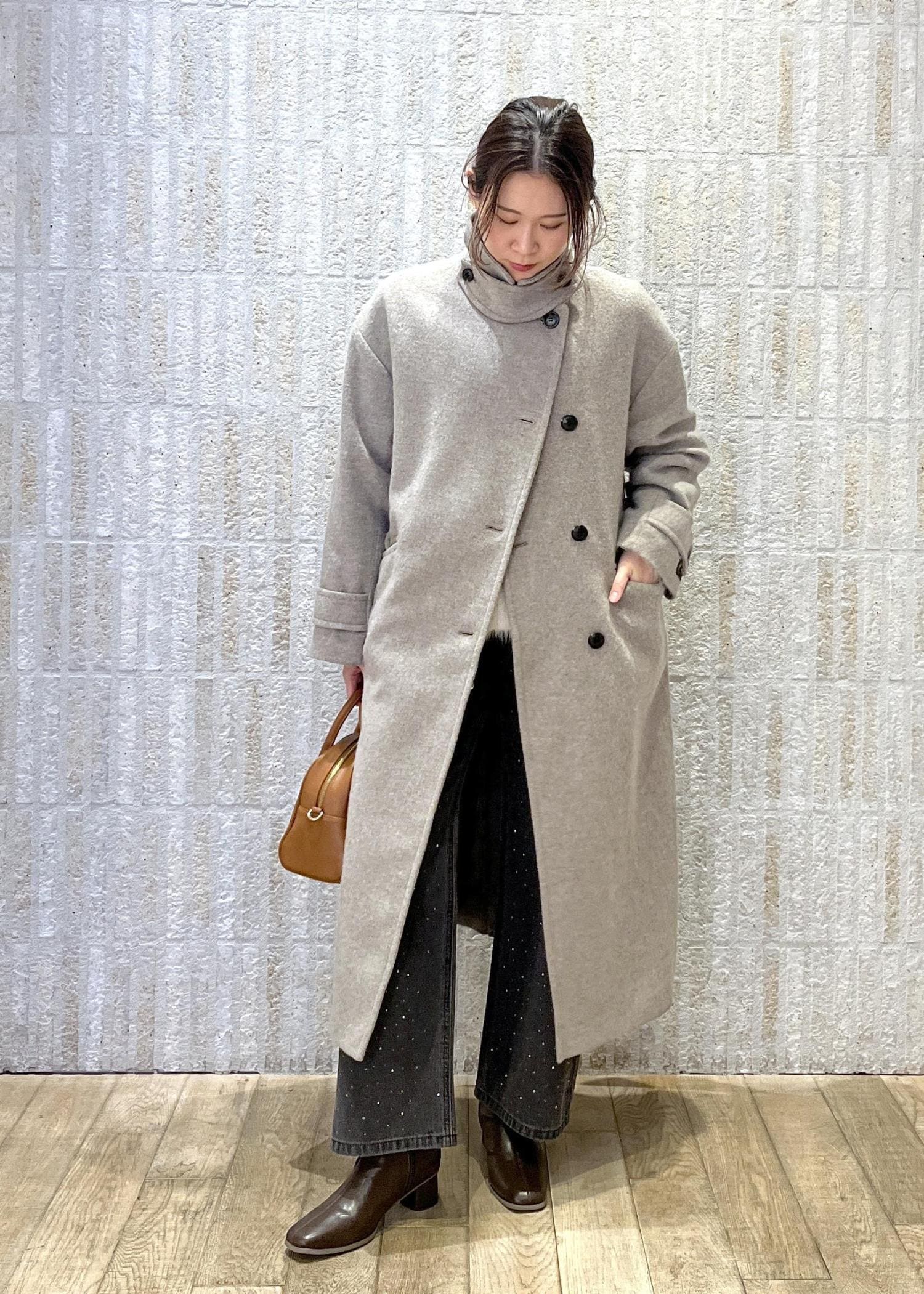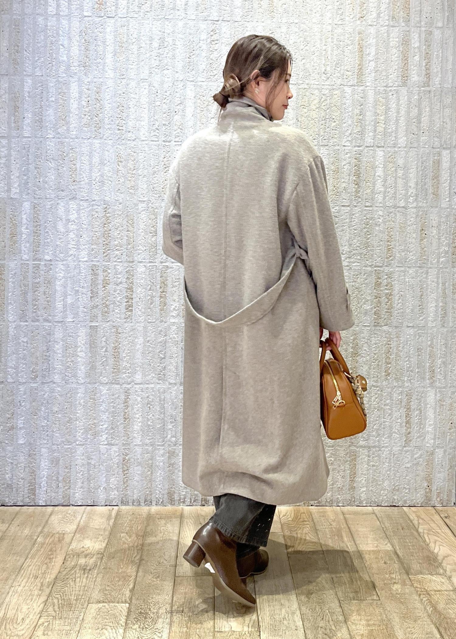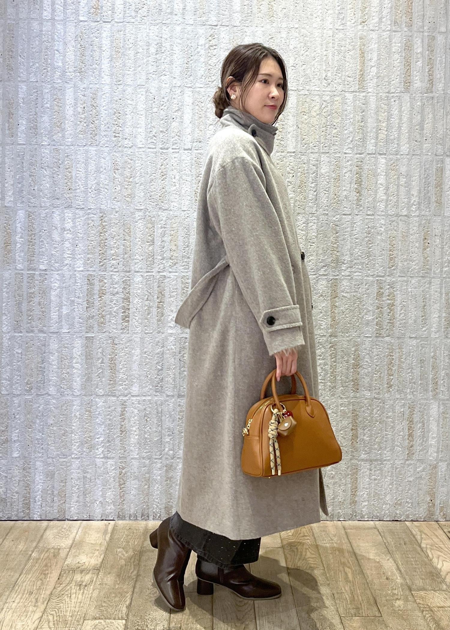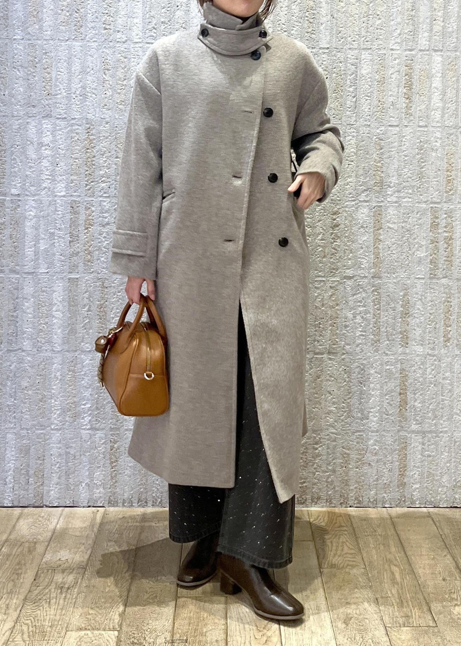2BUY10%OFFROPÉ PICNICJAPAN FABRIC スタンドカラーロングコート/一部WEB限定カラーベージュ系 / F¥15,840レビュー161cmの方が着用で、すねあたりの丈感。足を覆ってくれるので前を閉じれば風を通さずとても暖かく着用できます。ウール素材で少しふわっと羽毛立ちのある素材。ちくちく感はあまり感じなかったです。