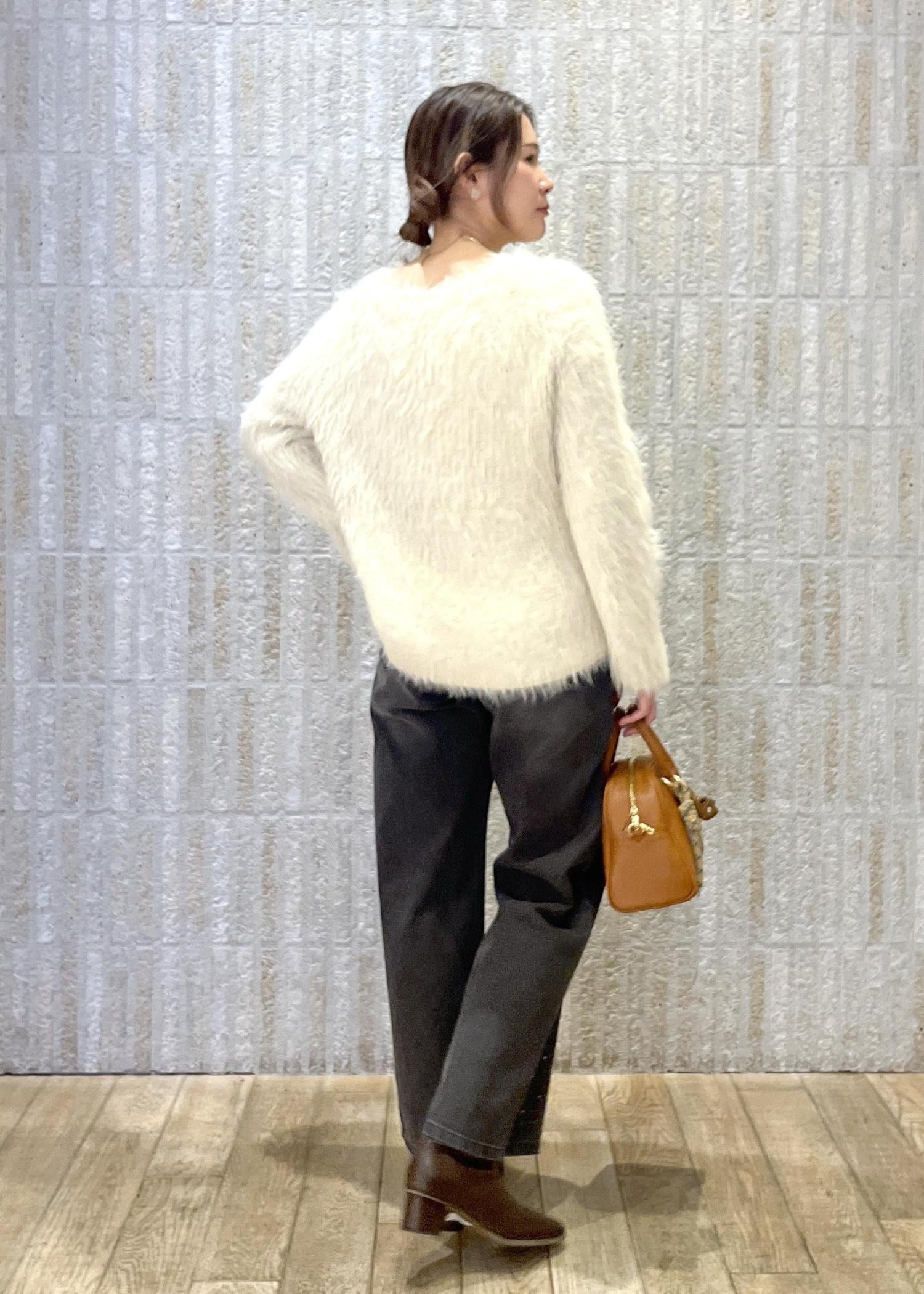 首元気になる方はタートルネックやTシャツとレイヤードさせるのがおすすめ。
