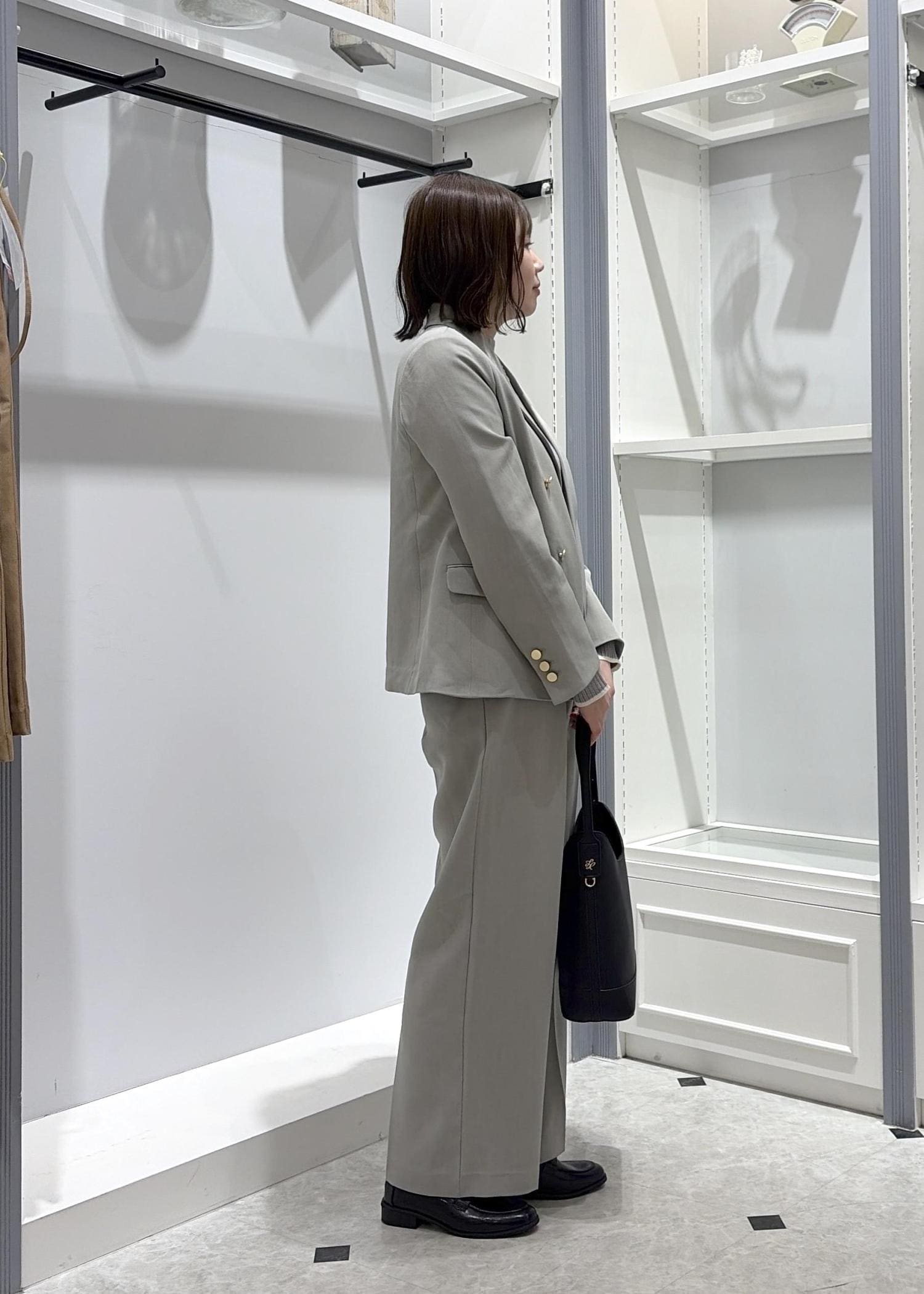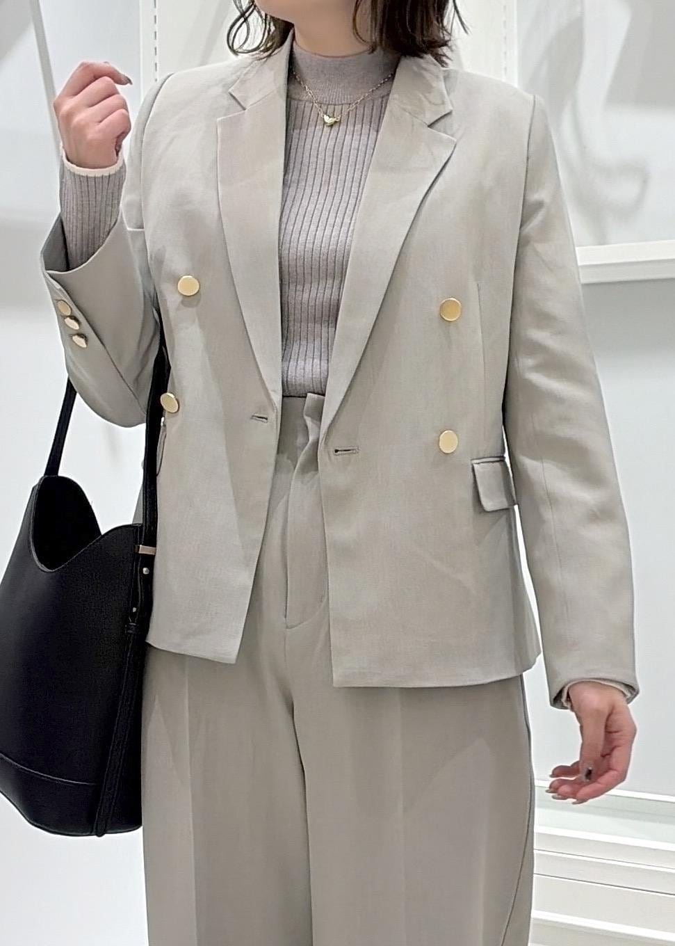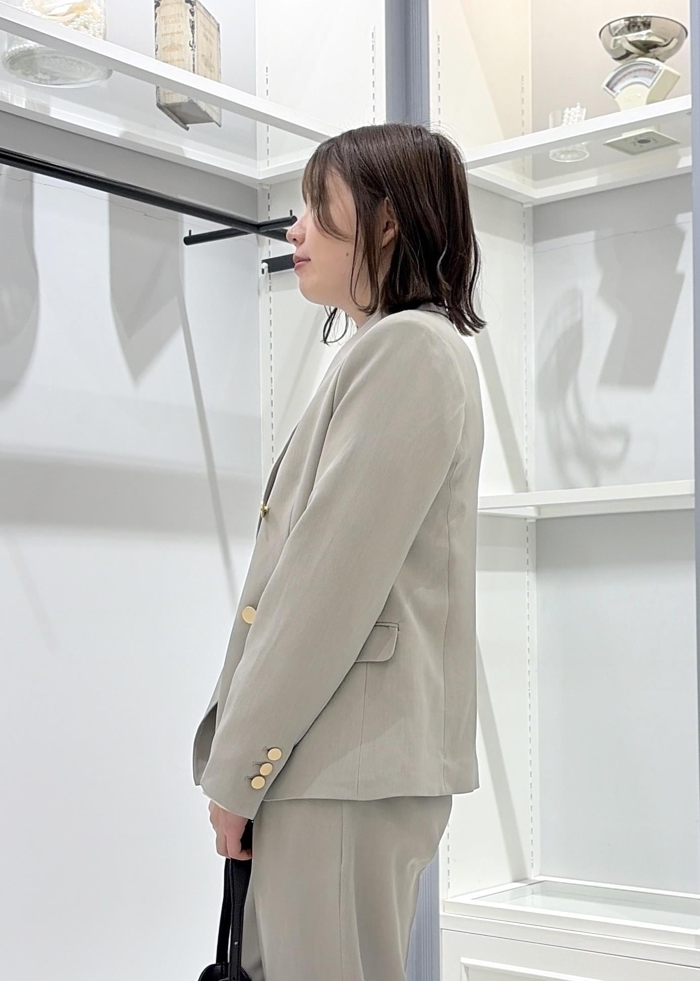 今回は、大人気クリアツイル金ボタンジャケット+パンツのセットアップでお仕事着として着用してみました♩
