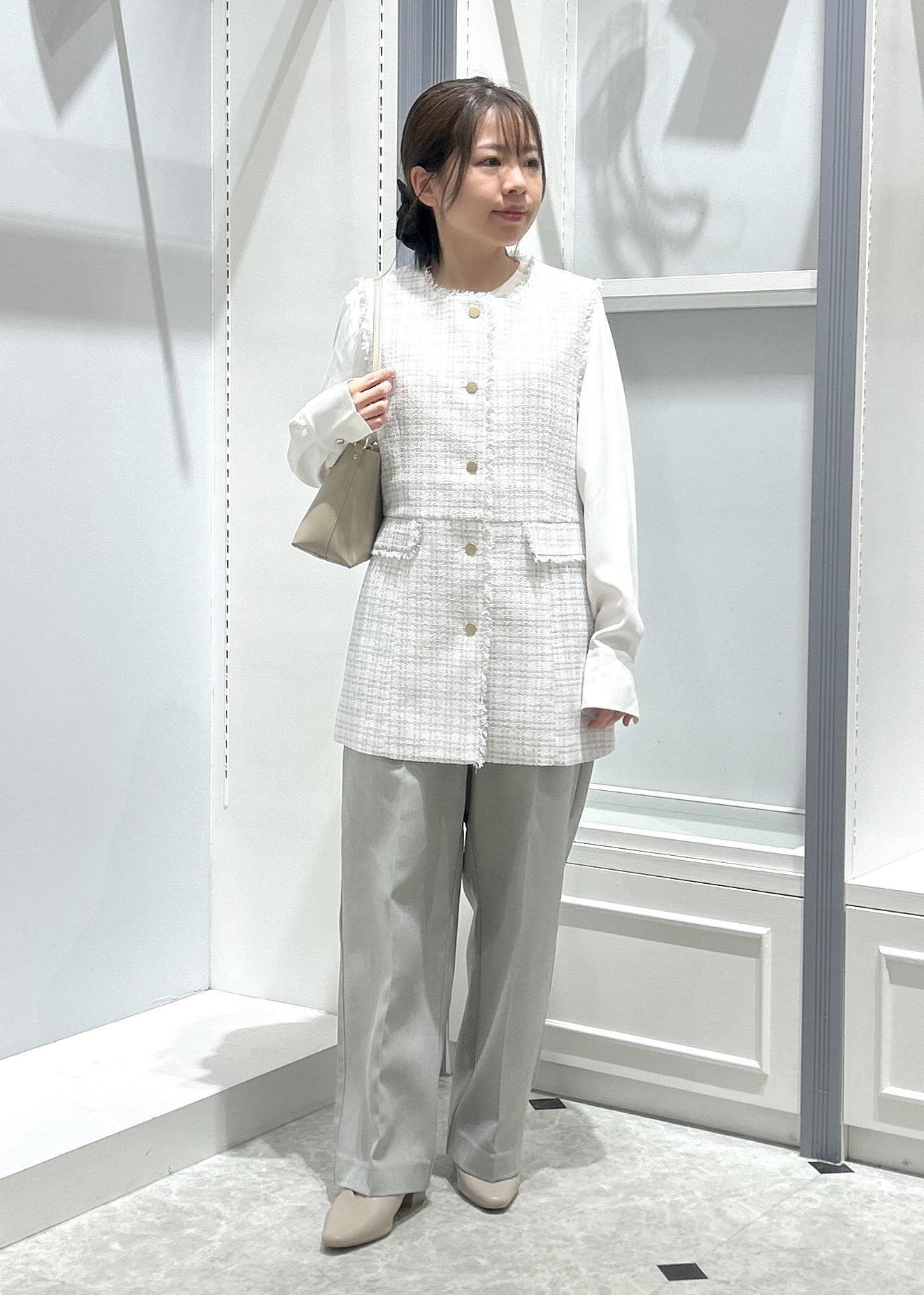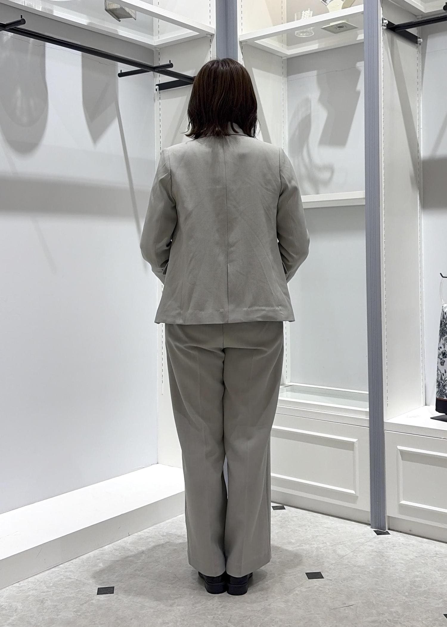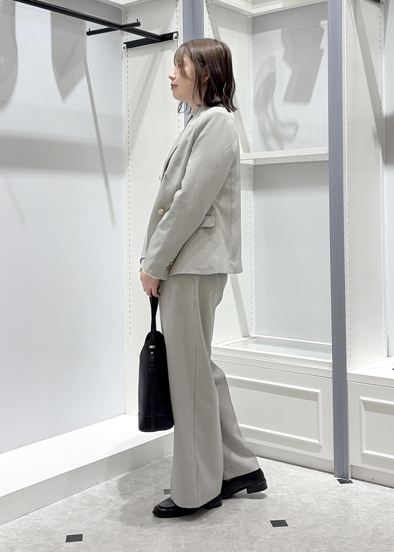 今回は、大人気クリアツイル金ボタンジャケット+パンツのセットアップでお仕事着として着用してみました♩