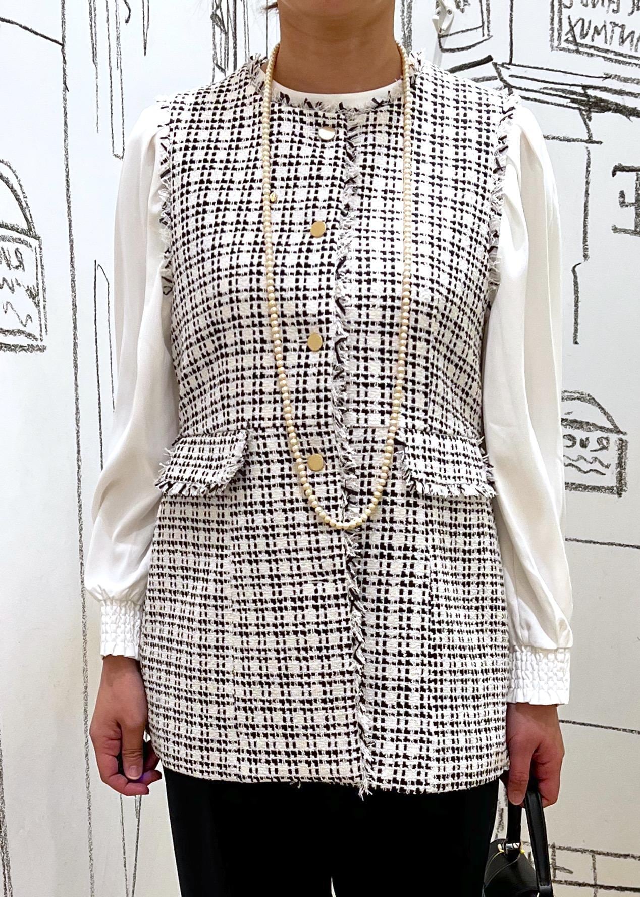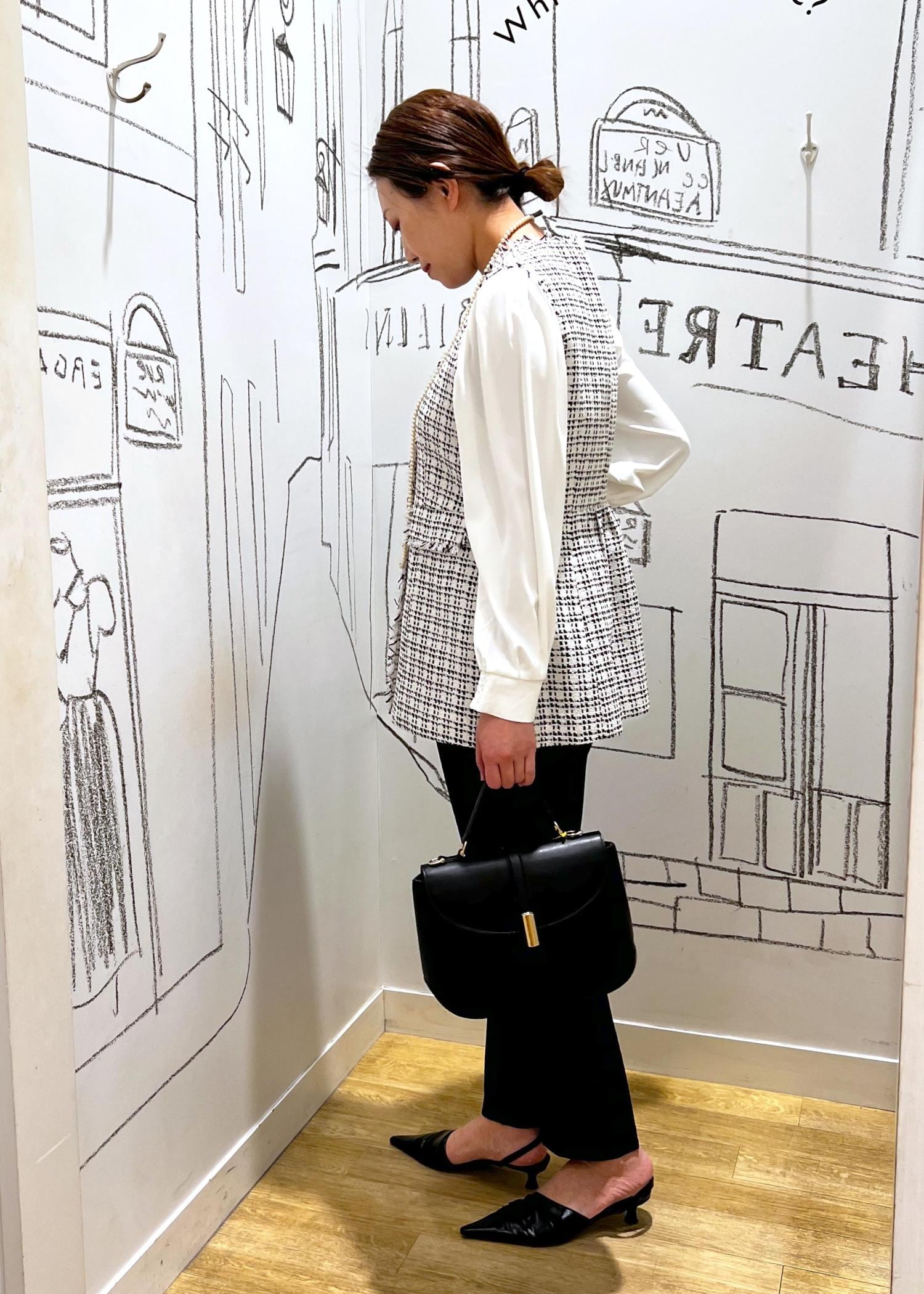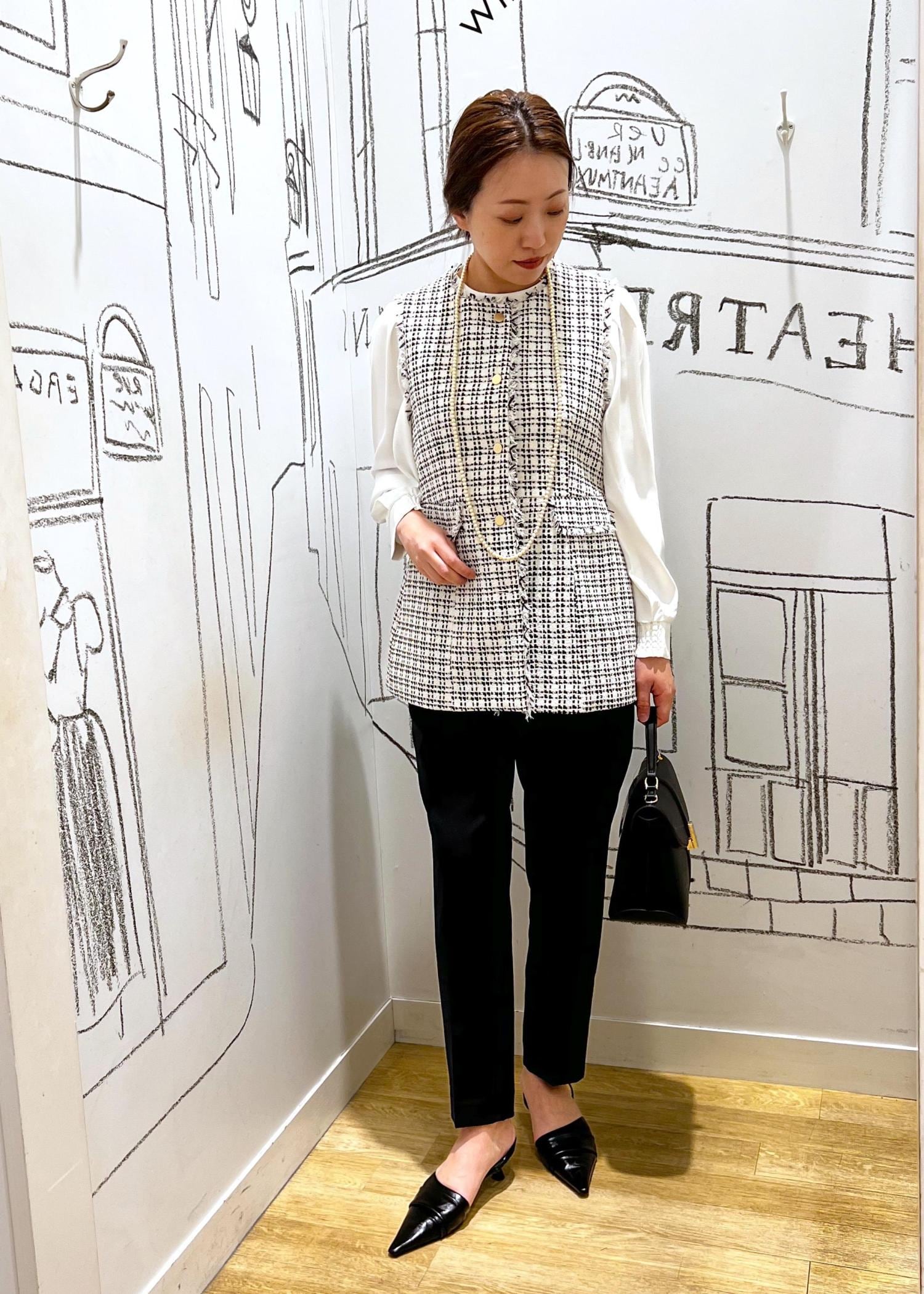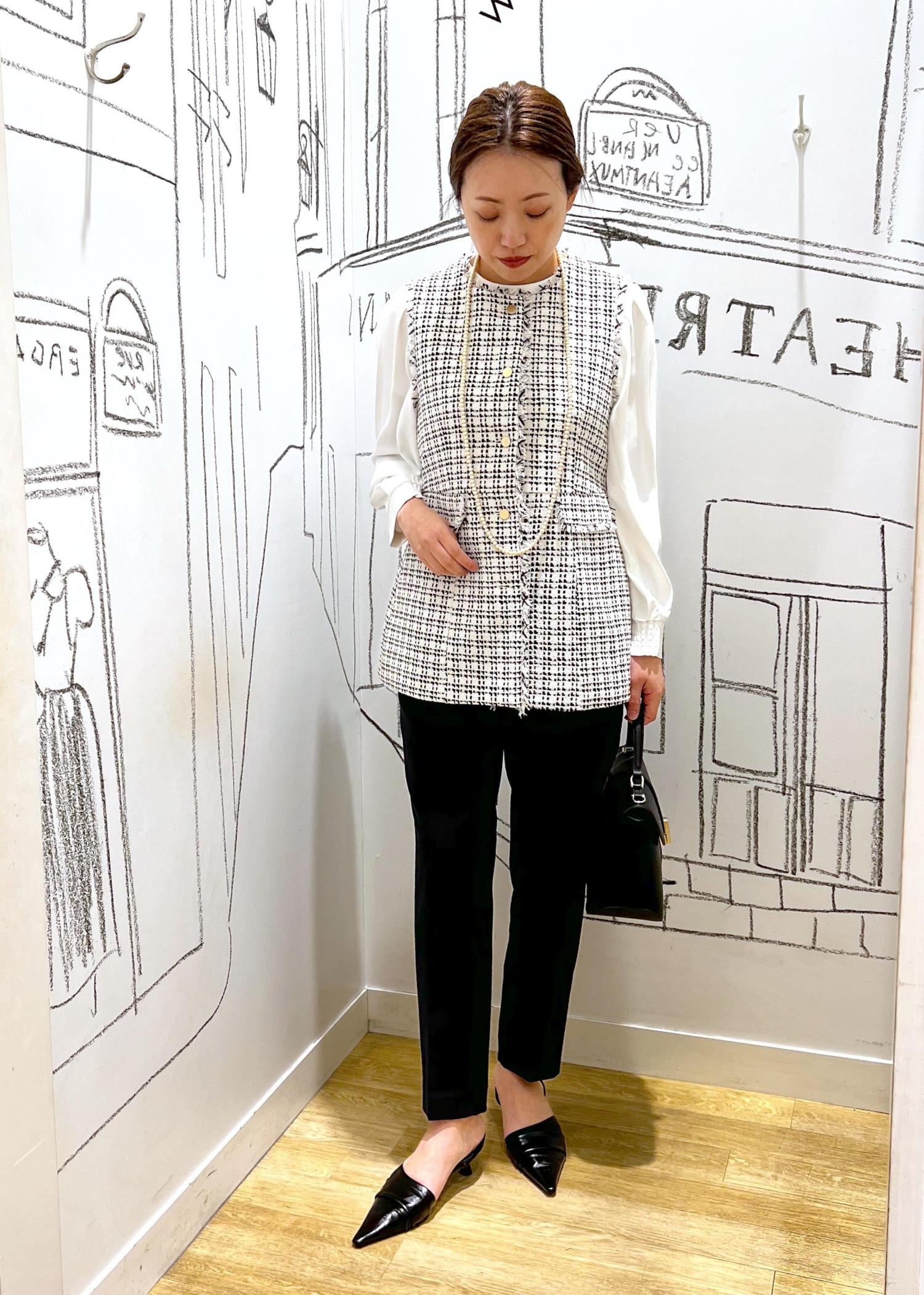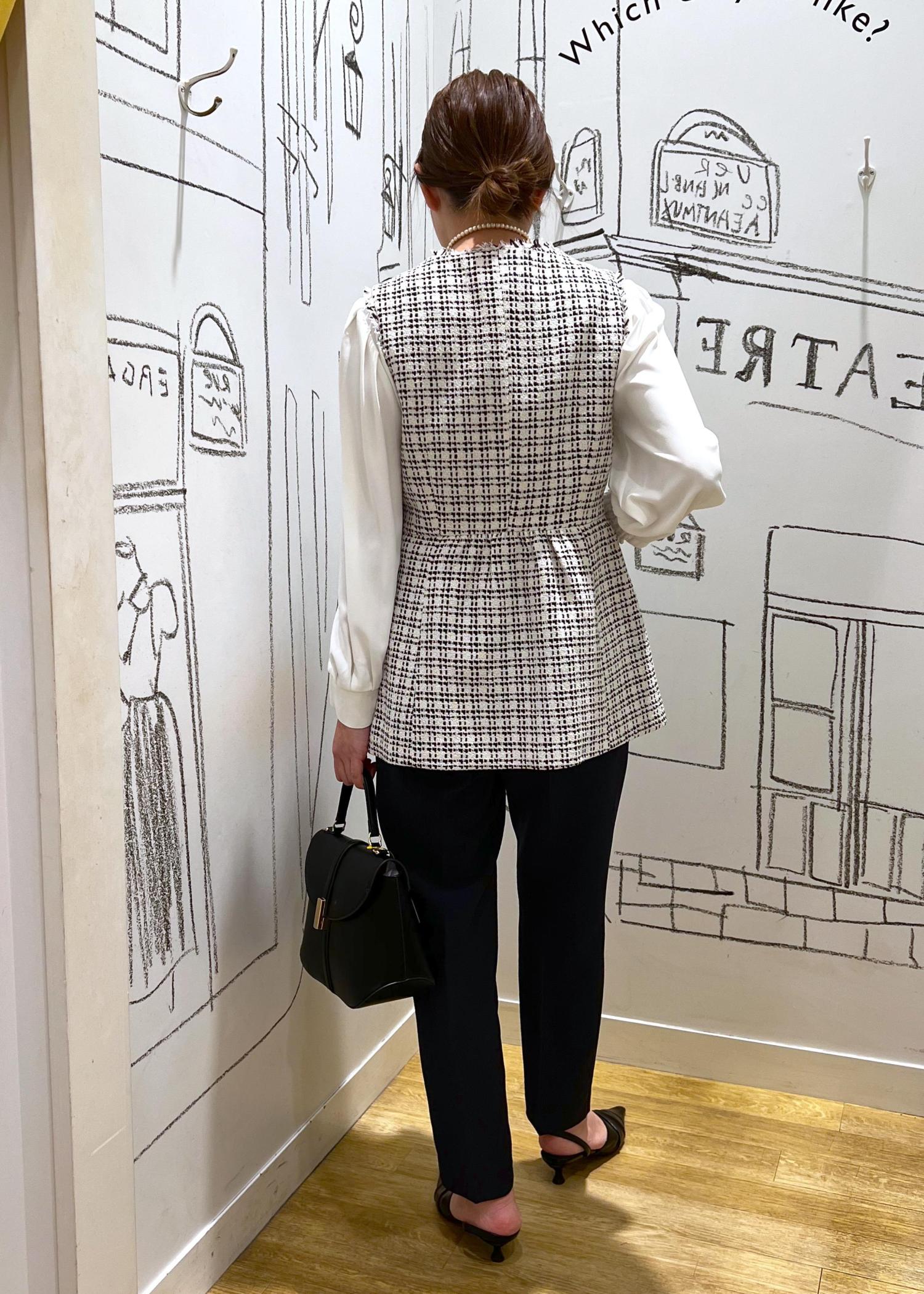 予約ROPÉ PICNIC【WEB限定カラー】ツイード金ボタンジレベスト/セレモニー対応・リンクコーデブラック系 / F¥8,998レビューペプラムのデザインが腰回りをカバーしてくれます。
