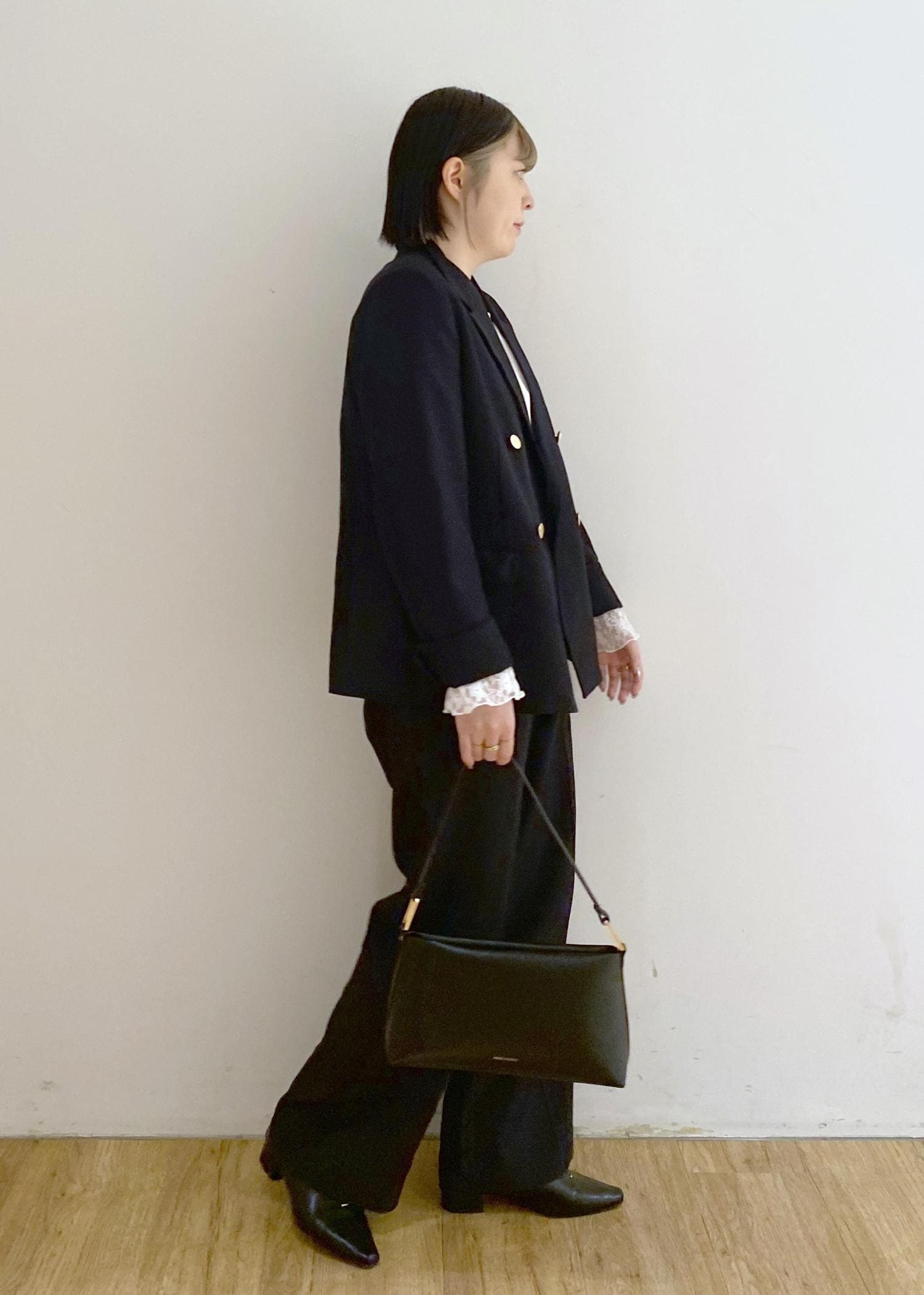 鞄と靴はブラックで合わせて