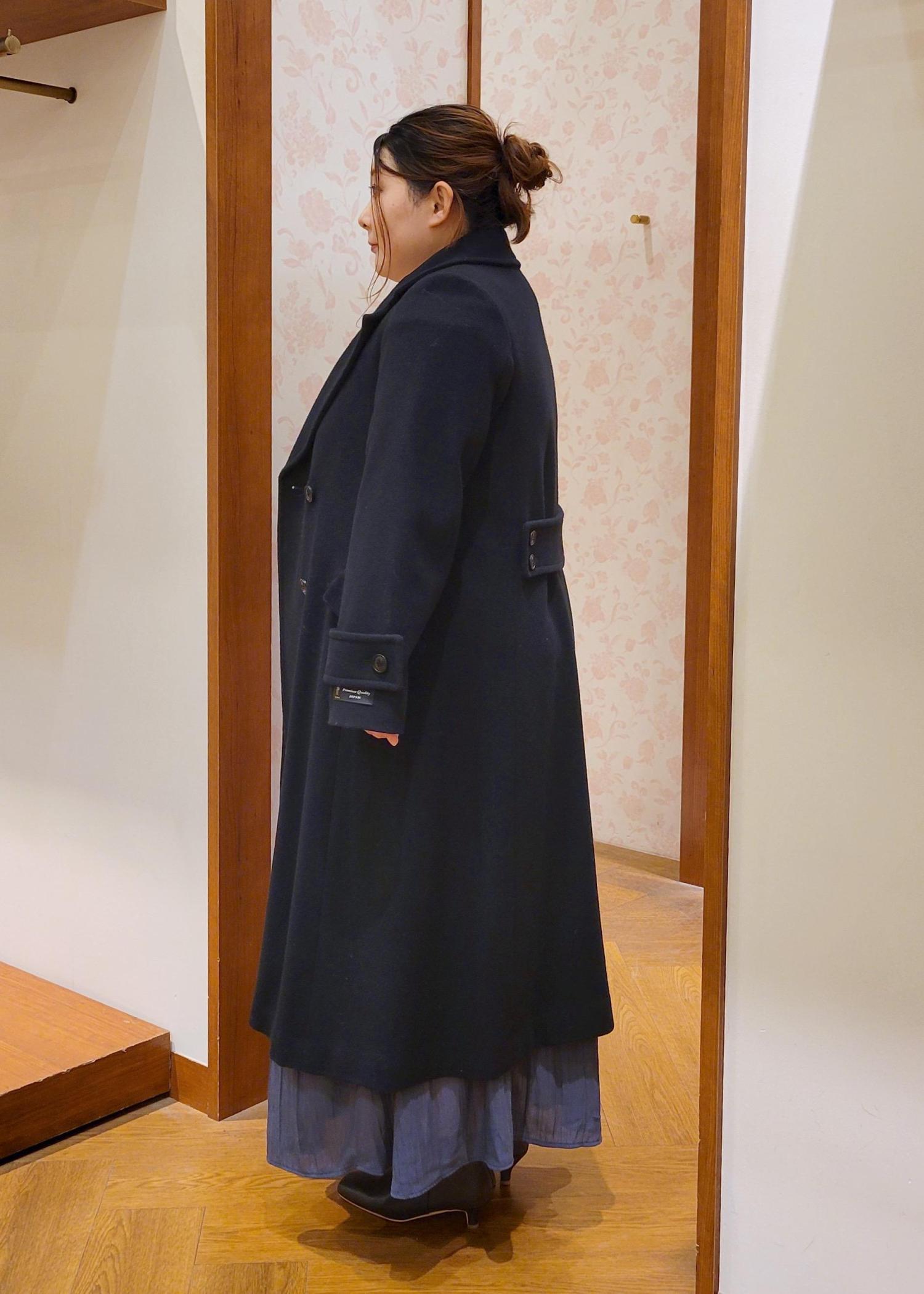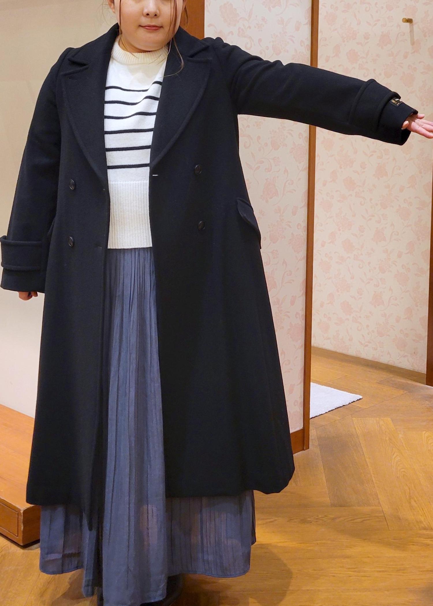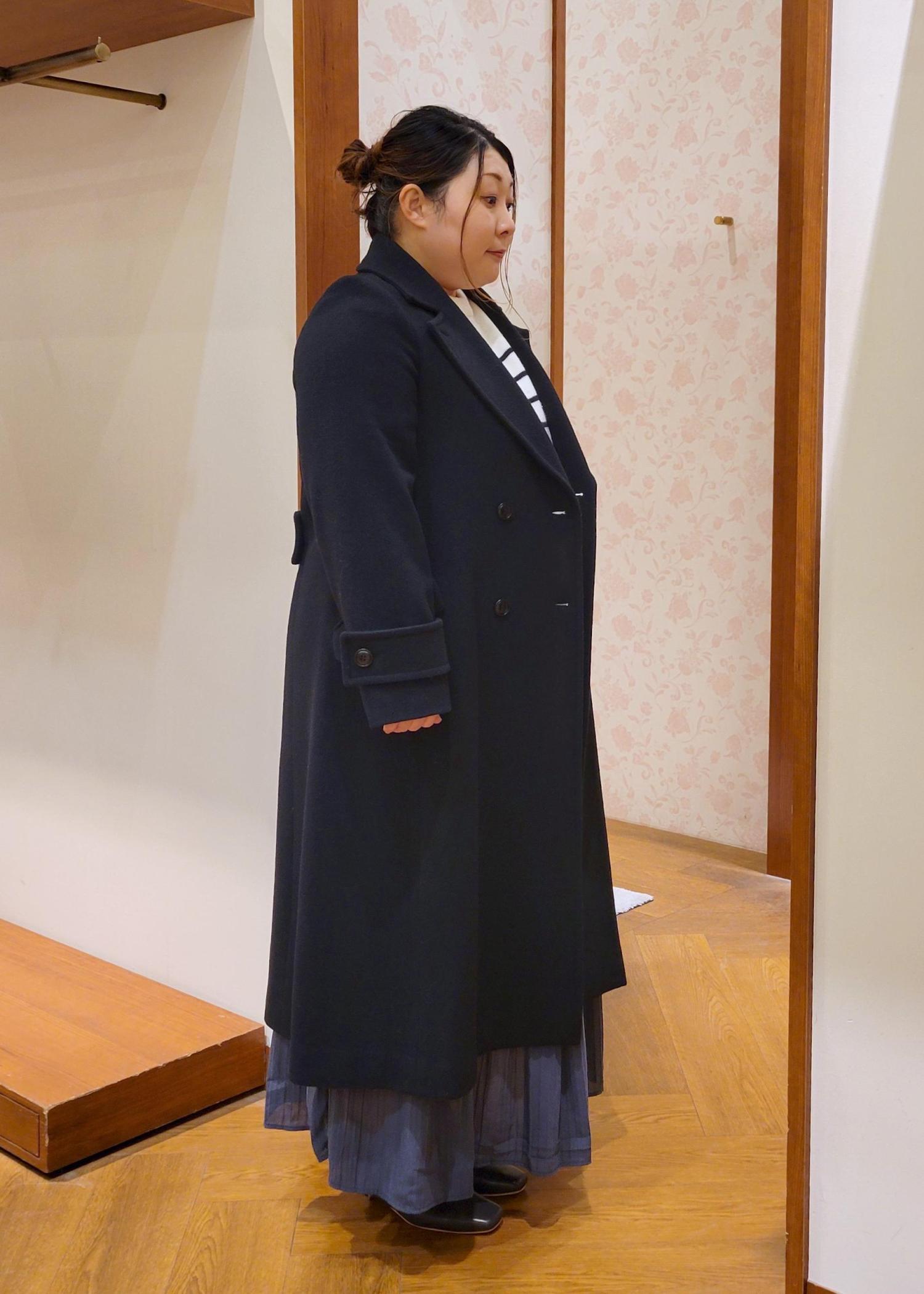 ROPÉ PICNICJAPAN FABRIC ダブルチェスターコート/一部WEB限定カラーブラック / F¥19,800レビュー普段Lサイズやフリーサイズを着用していますが、ニットを着てギリギリ着れるサイズ感で、コンパクトに感じました。上品なデザインなのでどんなシーンにも合います。